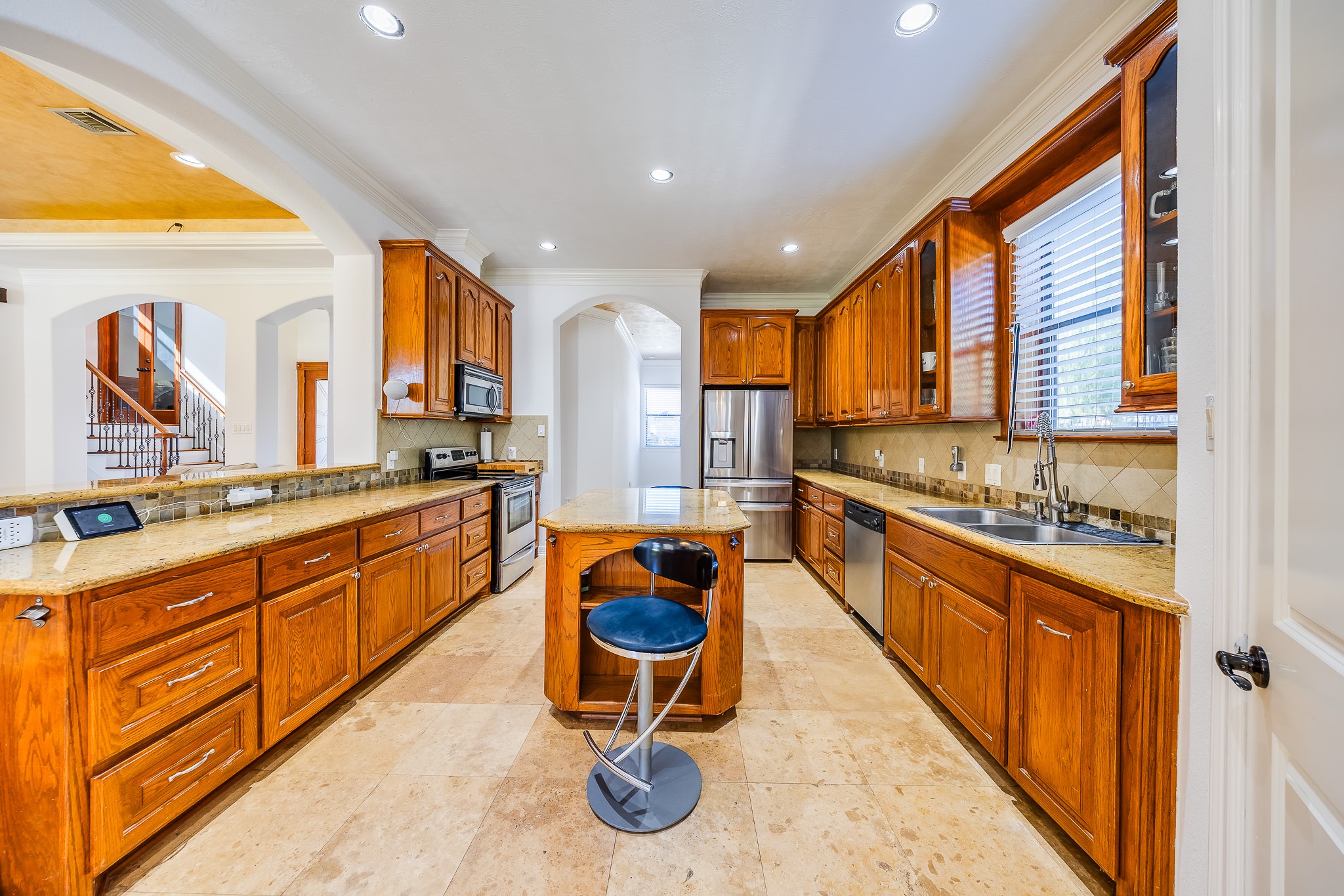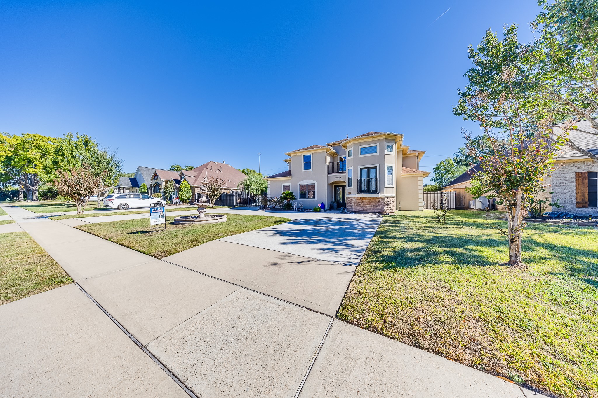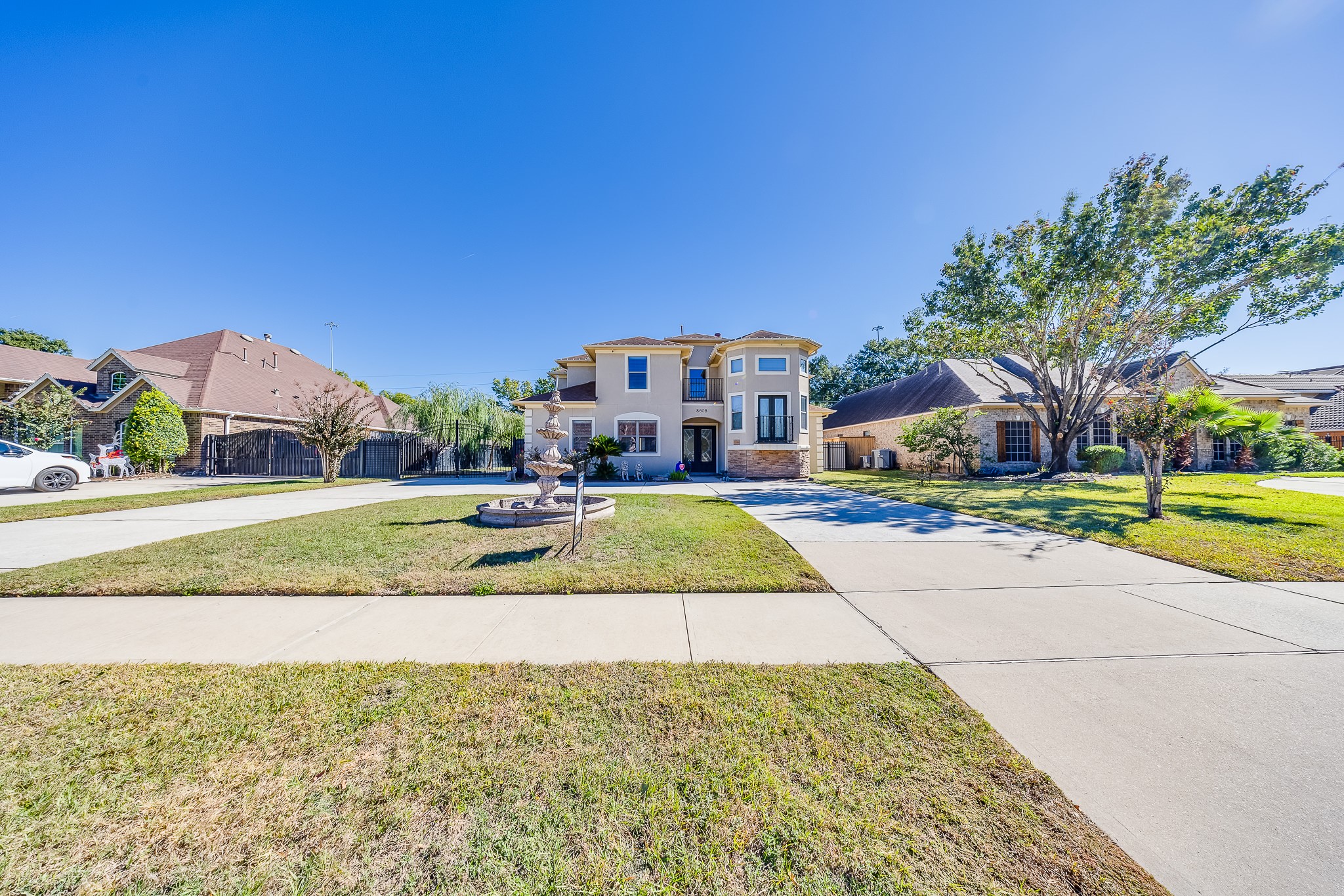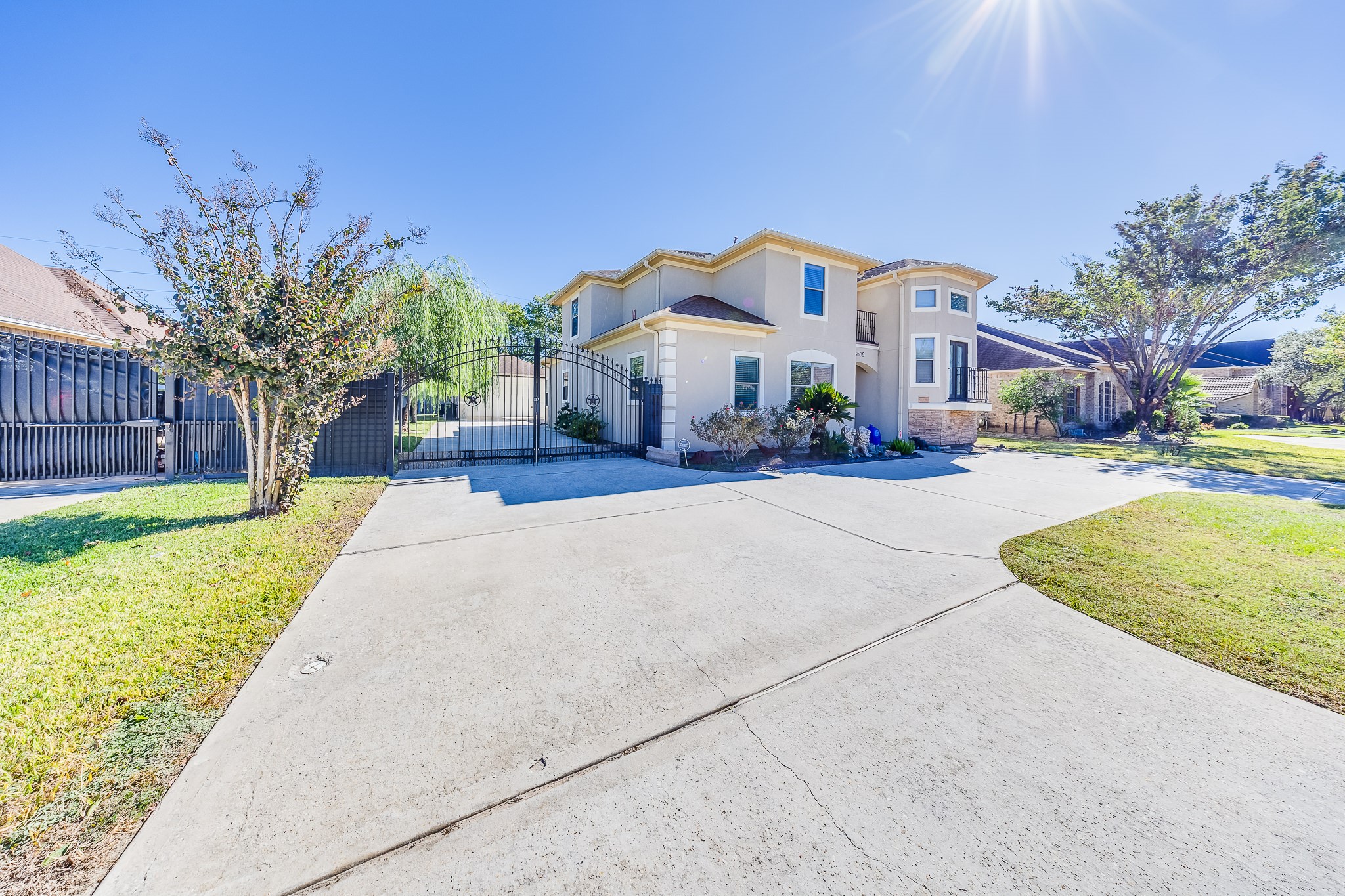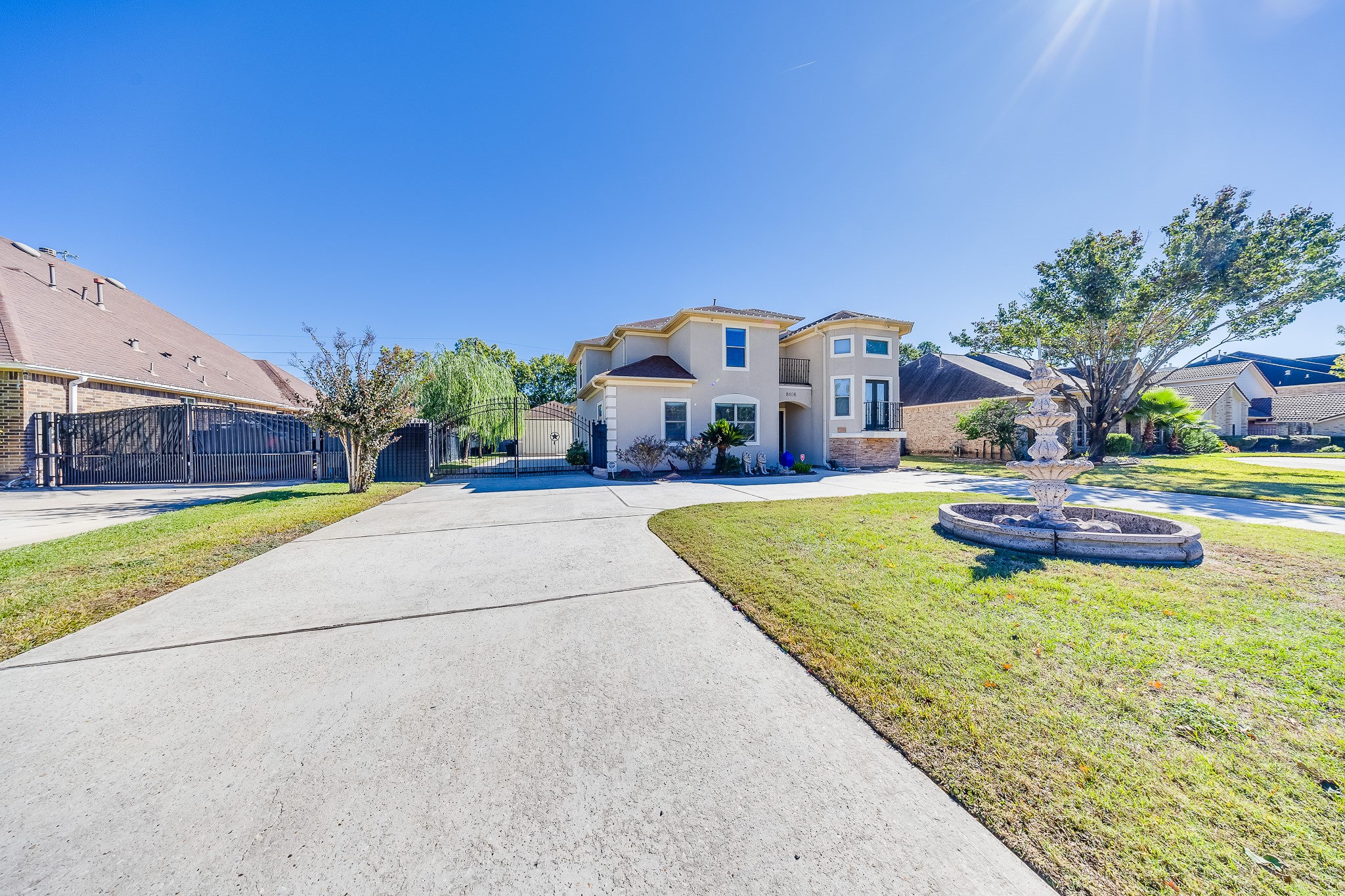 Discover refined living in this stunning 4-bedroom, 3.5-bathroom residence, boasting 3,615 sq ft of beautifully crafted interiors. Behind a private gate and framed by a striking stucco faade, the elegant circular driveway welcomes you home with style and grace. Step inside to find luxurious touches throughout. From the travertine floors to the designer accent ceilings, these truly set the tone for upscale living. Spacious and sun-filled, the layout includes generous living areas and two serene balconies, ideal for unwinding or entertaining. Perfectly situated just off Beltway 8, youre minutes from scenic parks, dog-friendly trails, and a nearby golf course; an ideal setting for an active, outdoor lifestyle. Nestled in a highly sought-after, flood-free community, this home combines elegance, privacy, and prime location. Dont miss your opportunity to experience this exceptional propertyschedule a tour today.