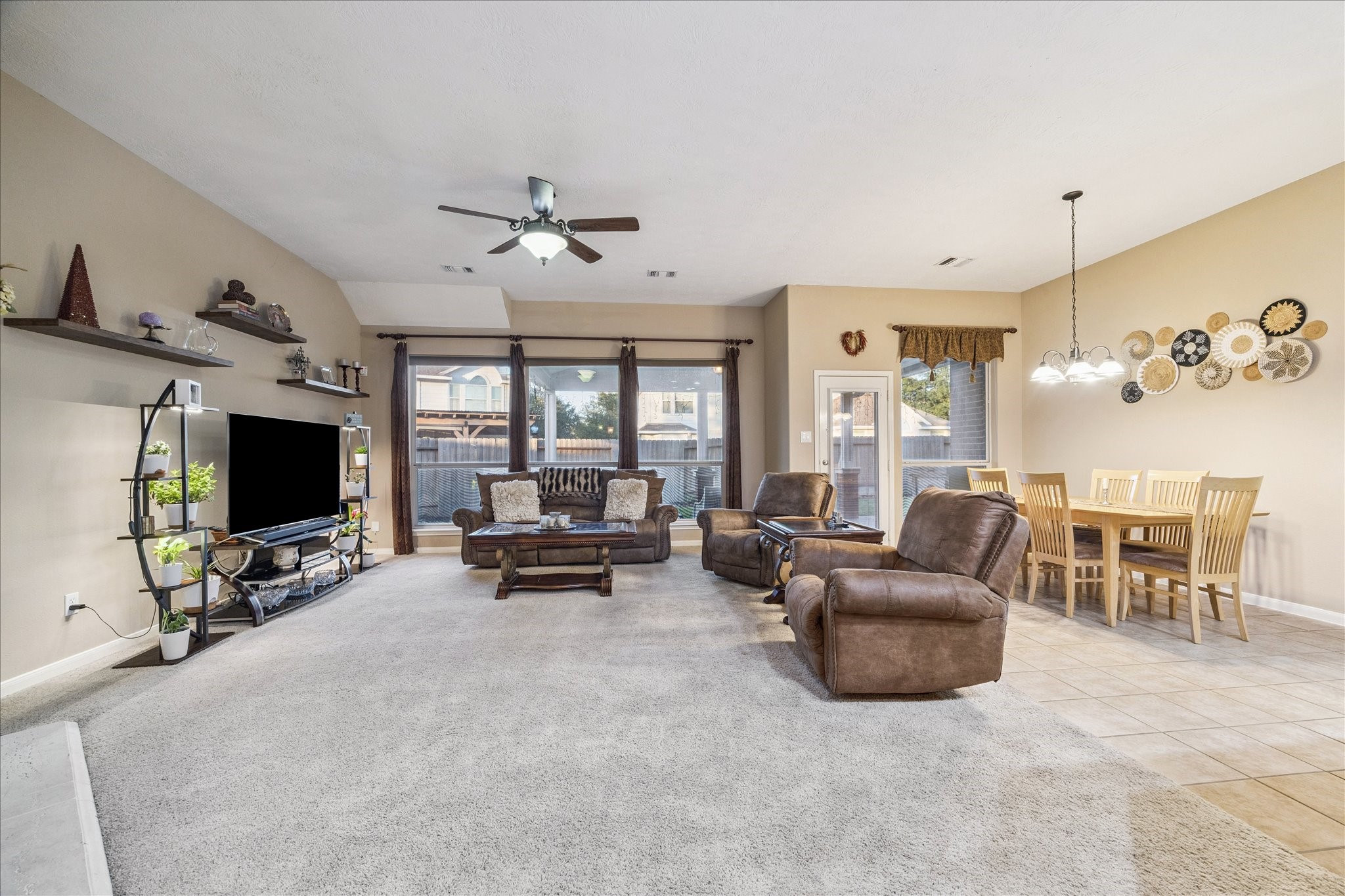 Welcome to Lakemont Subdivision surrounded by beautiful landscapes & pristine lakes. High ceilings & art niches greet you when you enter. This desirable 1.5 story home has all bedrooms down + a lg game rm & dedicated media rm up. Formal dining. Study w/glass French doors & walk in closet could be converted to an additional bedrm. Open concept living, kitchen & breakfast w/ high ceilings. Living room features a gas log fireplace w/ stone cast mantel. Kitchen w/granite countertops & walk-in pantry. Primary bedroom w/bay window & custom draperies. Primary bath w/ separate vanities, jet soaking tub, rain glass shower & 2 walk-in closets. Covered back patio is wired for surround sound. Back yard features French drains & room for a pool. Recent improvements: Roof replaced & rain gutters w/leaf guard on 3 sides 2021; AC Units replaced 2022/2023; Fence replaced 2024. Garage is currently for 2 cars. A 3rd bay provides additional space for a workshop or storage.