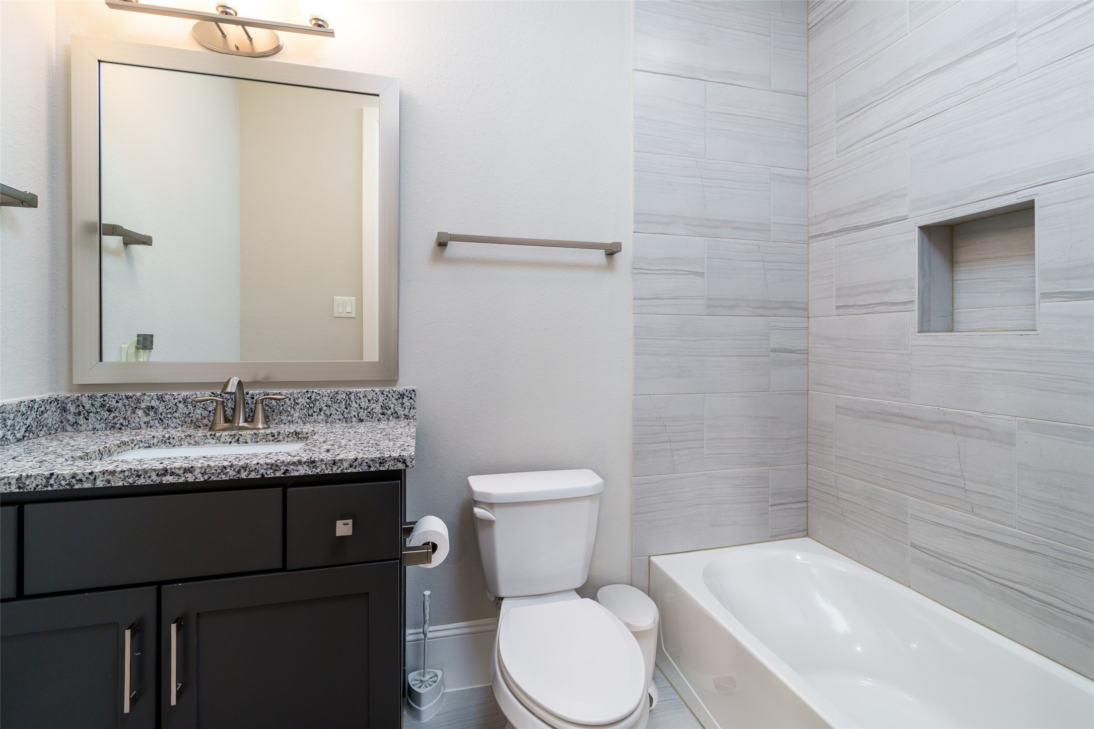 Welcome to this beautifully maintained 3-bedroom, 3.5-bath home, where modern elegance meets comfort in a gated community. As you step inside, the first floor offers a private secondary bedroom with an en-suite bath featuring a sleek standing shower-perfect for guests. The heart of the home is on the second floor, where an open-concept layout seamlessly connects the living, dining, and kitchen areas. The stylish kitchen boasts stainless steel appliances, a center island, and a breakfast bar, while the separate dining space adds versatility. The spacious living room, framed by large windows, invites abundant natural light. On the third floor, the serene primary suite features an en-suite bath with a soaking tub, separate shower, and a generous walk-in closet. A secondary bedroom with its own en-suite bath, complete with a tub/shower combo completes this level. Outside, enjoy a private back patioan inviting retreat for morning coffee. Schedule your showing today!