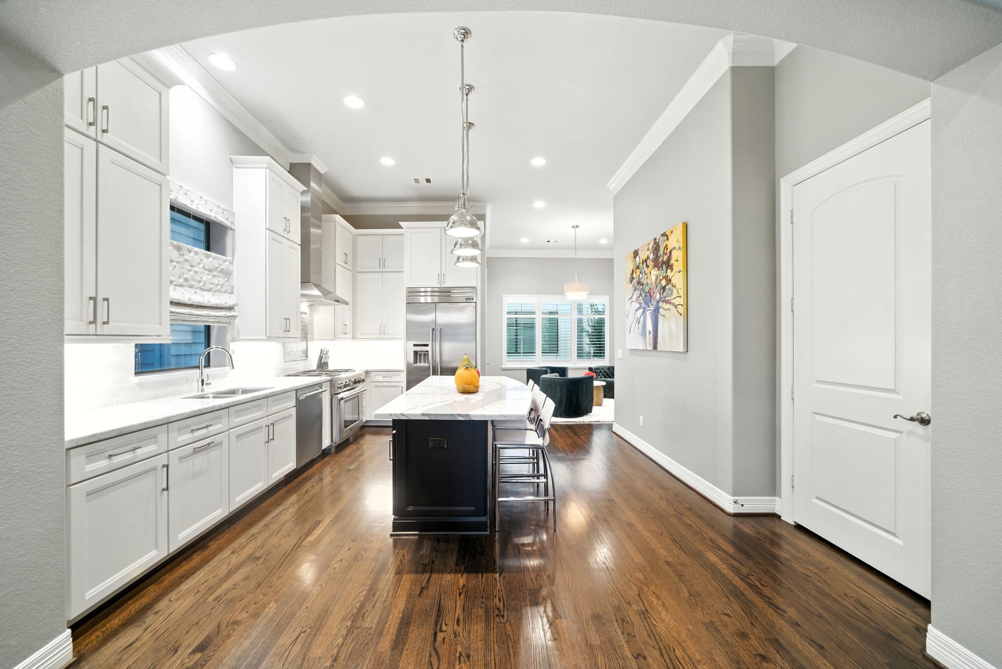 803 Bomar St #A is a rare architectural achievement by acclaimed builder Charles Martin, where timeless elegance meets modern luxury in Montrose. Through a private gated entry, a marble foyer reveals a versatile office, media room & extraordinary backyard w/ cocktail poola coveted Inner Loop rarity. The second level unveils sun-drenched living & dining w/ gleaming hardwoods & Juliet balcony. The chefs kitchen dazzles w/ statuary marble island, honed Carrara countertops, PRO Thermador appliances & butlers pantry w/ beverage fridge. The third floor offers a primary suite w/ spa-inspired bath & boutique closet, plus ensuite guest room & utility room. Ascend to the rooftop terrace, where sweeping skyline views create an unparalleled setting for 4th of July fireworks & New Years celebrations. Steps from top schools, Shiffick Park & Montroses finest dining, fitness & nightlife, this residence redefines sophisticated urban living w/ a rare pool & rooftop combinationtruly one of a kind!