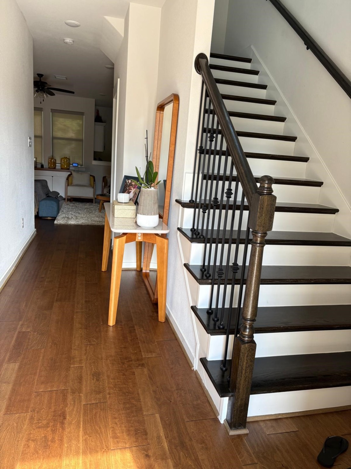 Discover comfort and style at Park & Lake Villas in Houston, TX! This immaculate home offers 3 bedrooms, 2.5 baths, and a bright open layout. A built-in office space downstairs is ideal for work or study, while upstairs features a versatile game room or second office area. All bedrooms and the laundry room are conveniently located upstairs, each with spacious walk-in closets. The kitchen showcases 42" linen cabinets, upgraded granite counters, and a large island opening to the dining and living areas with beautiful wood flooring. The Owners Suite includes double vanities, a separate shower, and a massive closet. Enjoy peaceful lake views in this quiet, gated community. Occupied only by its first owners for three years. Exceptionally well maintained, with roller blinds, clean walls, and a like-new feel. Guest parking right in front. Next door to The Village School, with quick access to SH 6, Westpark Tollway, I-10, and Sam Houston Tollway.