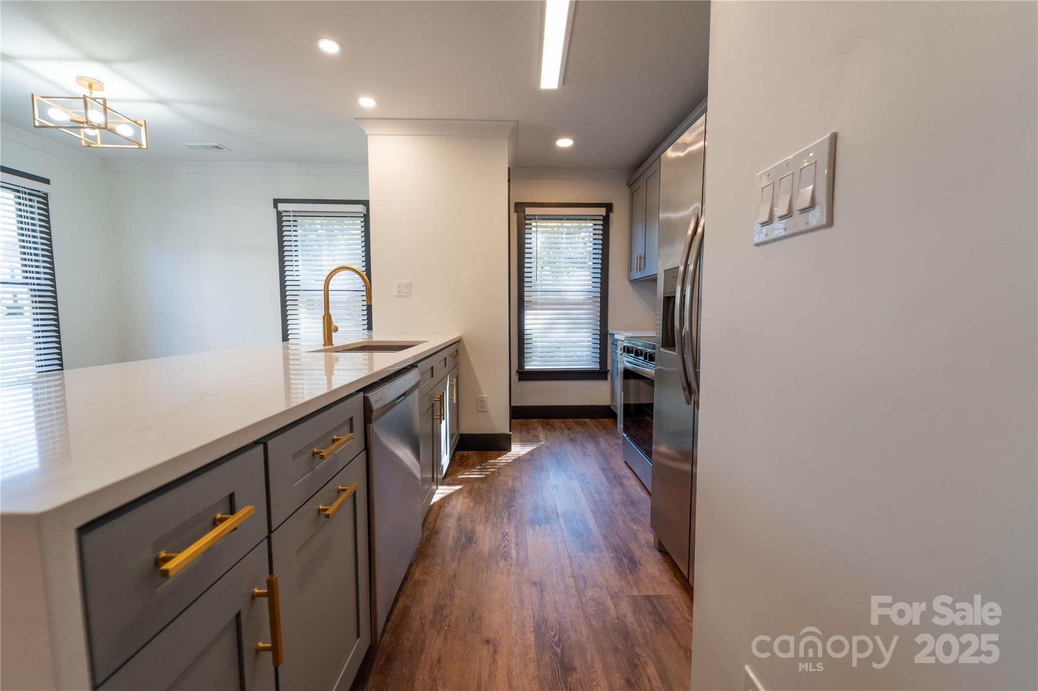 Stunning Renovated Townhome Just Minutes from Uptown CharlotteThis beautifully updated townhome offers the perfect blend of modern design and prime location—just 11 minutes from Uptown and 9 minutes from the vibrant Plaza Midwood neighborhood. Step inside to discover brand-new luxury vinyl plank flooring that flows seamlessly throughout the home, enhancing its clean appeal.The kitchen is as impressive as it is functional, featuring sleek new cabinetry, a gorgeous Quartz countertop ( Ethernal Glow), and an oversized island with an elegant waterfall edge—ideal for entertaining. The open-concept layout continues into the living area, highlighted by a new gas fireplace with a stylish shiplap surround.The bathroom has been thoughtfully renovated with Piedrafina Polar White shower walls, new cabinets, and upgraded plumbing and lighting fixtures. Additional enhancements include all new interior doors, trim, lighting.Seller offers up to $3000 in closing costs with a full price offer