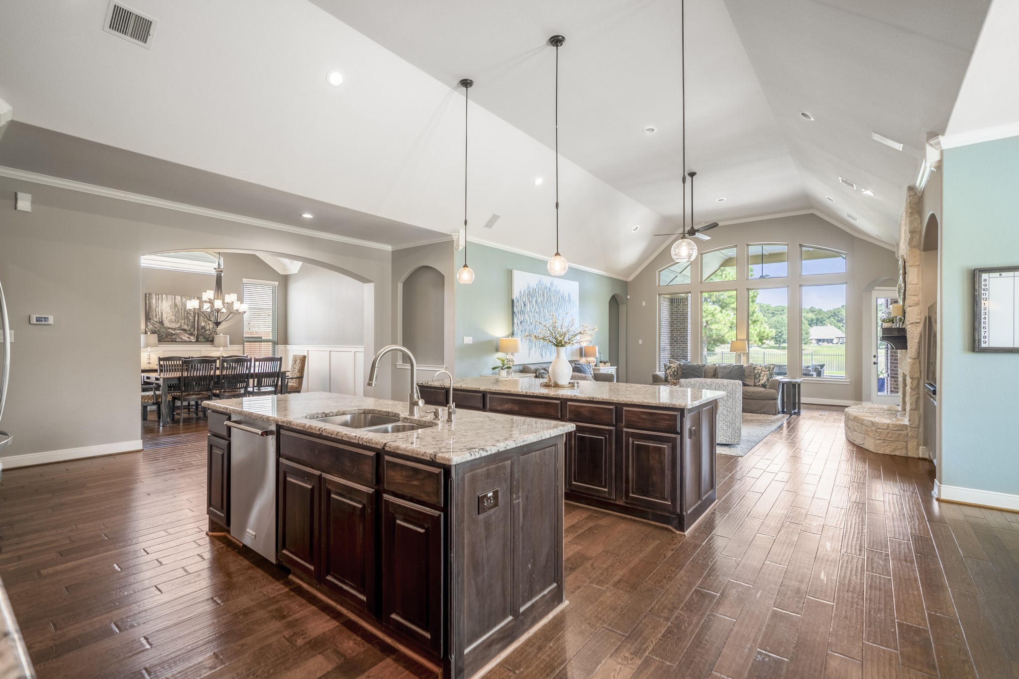 Don’t miss this stunning 4BR/3.5BA single-story Coventry home sitting on a sprawling half-acre waterfront lot in the gated community of Waterstone Estates. Surrounded by equestrian farms, it offers a country feel just minutes from local amenities and Tomball ISD schools. Original owners have cared for every detail. Step through the formal entry into high ceilings, wood floors, and an open kitchen and living space with beautiful cabinetry, two large islands, and a design made for gatherings. A formal dining room, study, game room + media provide spaces for both daily living and entertaining. Designer paint and custom ELFA shelving add style and function throughout. Updates include a new roof, new AC, driveway extension, whole-home water softener, and reverse osmosis system. The 4-car garage with epoxy floors adds polish and storage. Outside, enjoy a private backyard oasis with pool and spa overlooking the lake. This home blends country charm with modern convenience. Come see it today.