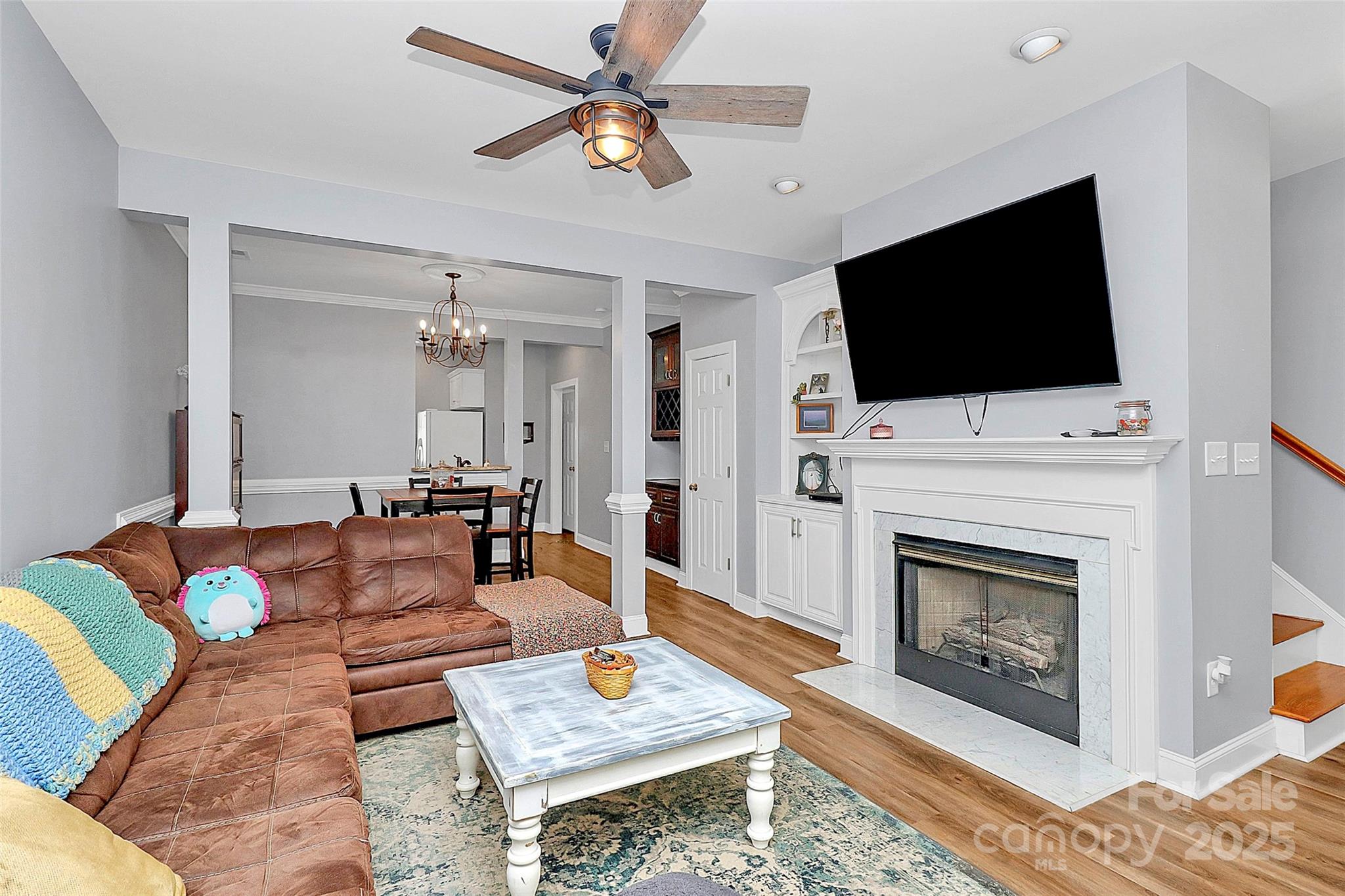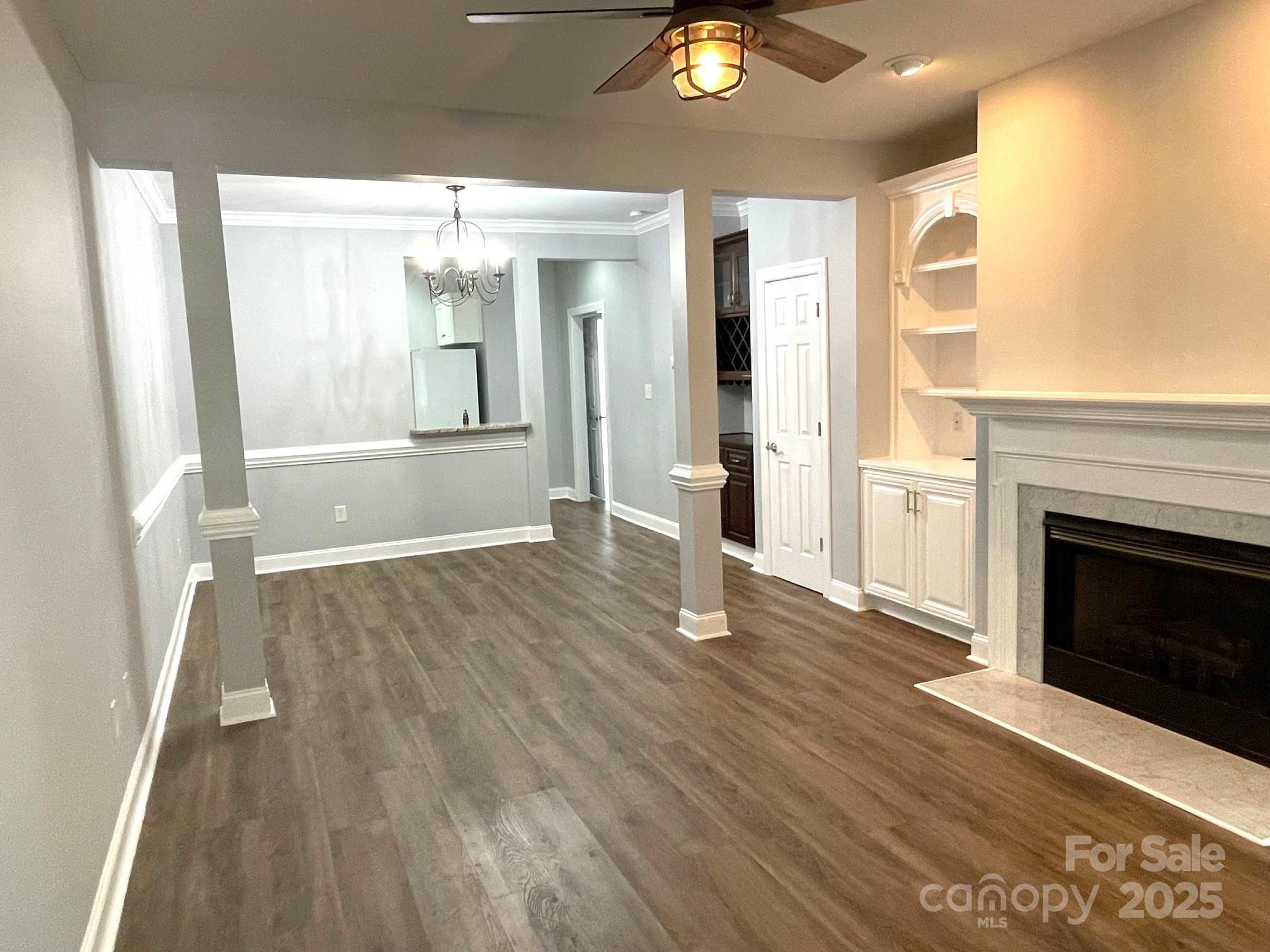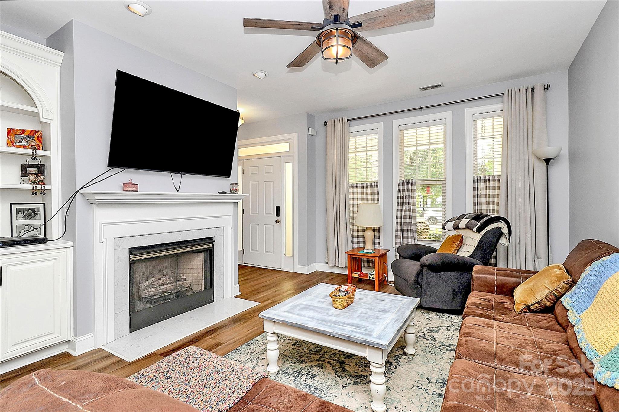Big Reduction! Best Value in the area! Freshly Painted throughout! Looks great! Charming townhome with scenic setting and covered front porch featuring a porch swing—perfect for relaxing or entertaining. Located along a tree-lined street with a rock-lined creek bed, this home offers great curb appeal and an open floorplan. Enjoy laminate wood flooring throughout both levels, granite countertops in the kitchen and baths, and updated lighting in the family and dining rooms. Kitchen includes refrigerator; washer and dryer also convey. Dining area features built-in wine rack and storage. LR area includes Gas Fireplace & built-bookshelves. Primary Bedroom boasts TWO closets & dual vanity sinks. 2nd upper bedroom includes a built-in desk and shelving. Main floor bedroom has easy access to rear brick patio that's fenced-in for privacy. Additional parking available on the street. New HVAC!! A must-see blend of comfort, character, and convenience. Ask about the zero cost 1% lender buydown!