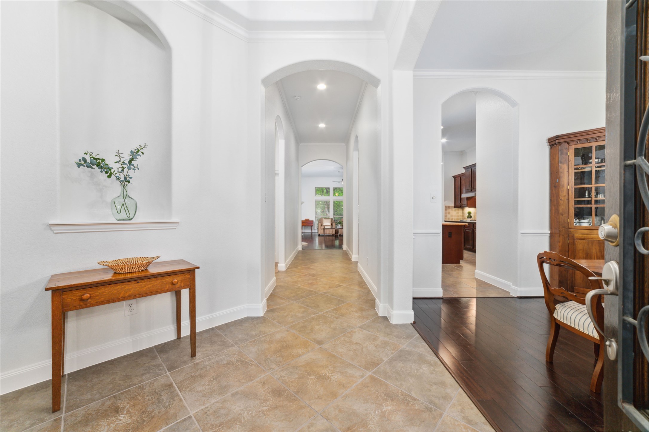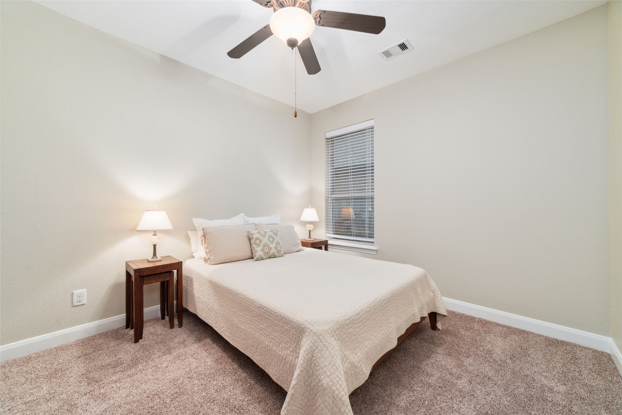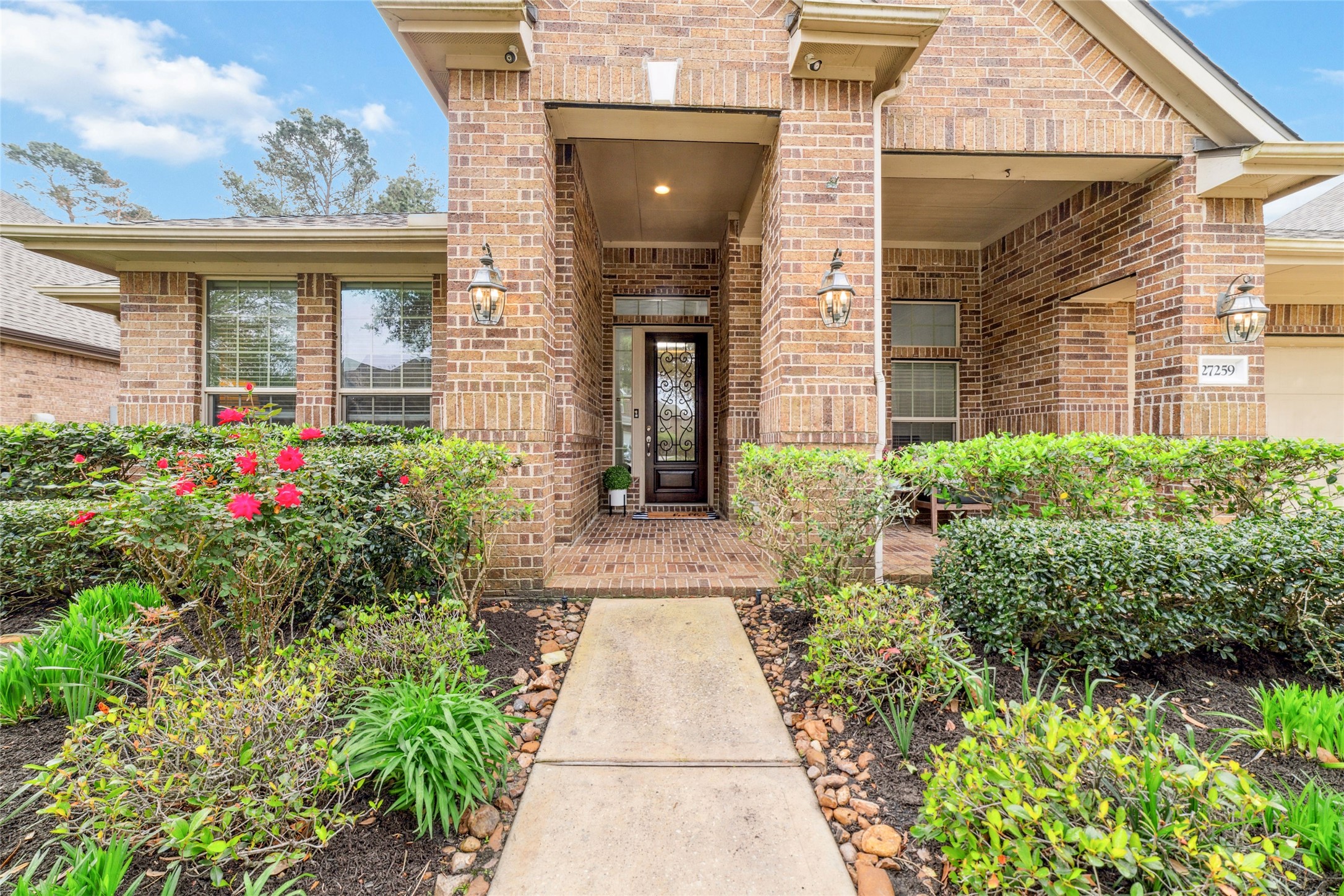Beautifully maintained, single-story home backing to a private greenbelt in the heart of Spring Trails. This spacious 4-bedroom, 3-bath, 3-car tandem garage home features an open floor plan w/ soaring ceilings, fresh paint, & recent carpeting. Wood floors extend through main living areas & front study framed by elegant French doors. Formal dining offers access to the large entertainer’s kitchen w/ granite countertops, stainless steel appliances, gas cooktop, abundant cabinetry w/ under-cabinet lighting, ample counter space, & walk-in pantry. Living room w/ cozy gas fireplace opens seamlessly to the kitchen/breakfast area. The split floor plan includes two secondary bedrooms at the front sharing a full bathroom, an additional secondary bedroom at the rear with access to another full bath, & a spacious primary suite off the living room featuring a large ensuite bathroom. Amenities include pool, parks, sports courts, events, & access to Spring Creek Nature Preserve. NO FLOODING. Roof-5yrs