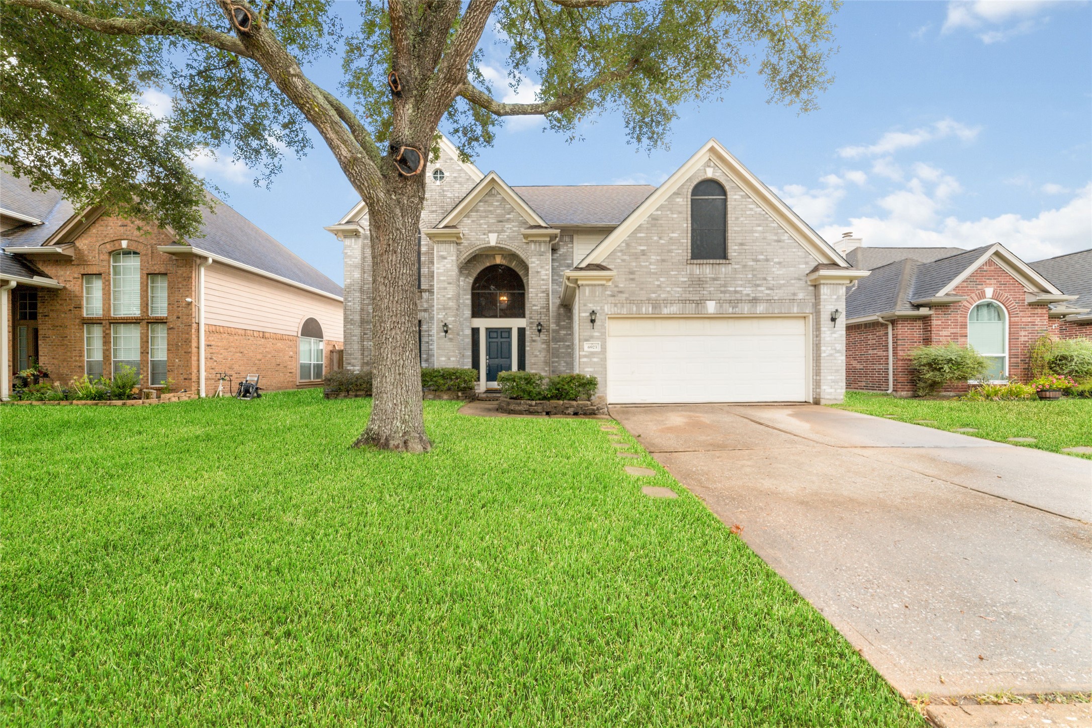 Beautiful 4 bed 2.5 bath brick home situated on a desirable corner lot. Entering you are greeted with wood look tile flooring and elegant crown molding that flows throughout the home. To the left is a formal dining room, and to the right a formal living room, perfect for entertaining. Kitchen features granite counters, stainless steel appliances, and a bright breakfast area. Living room offers a cozy gas log fireplace and plenty of natural light. Upstairs you will find all 4 beds, each with walk in closets, along with an additional flex room. Large primary suite boasts an ensuite bath with dual sinks, a Whirlpool jetted tub, separate glass shower, and two closets. Secondary bath includes double sinks and a tub shower combination. Outside to enjoy a stone patio and an oversized fully fenced backyard. 3 car garage offers versatile options, with one side ideal for an office, workshop, or golf cart storage. Wahser, Dryer, and Refirgerator included!