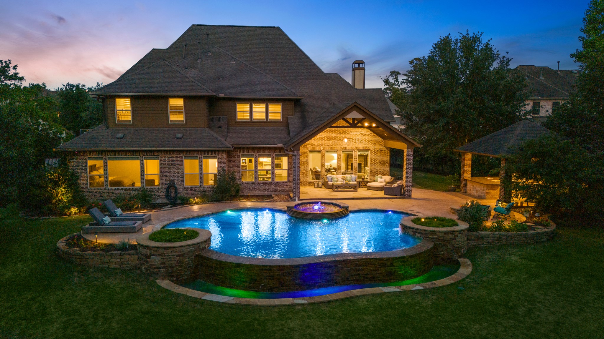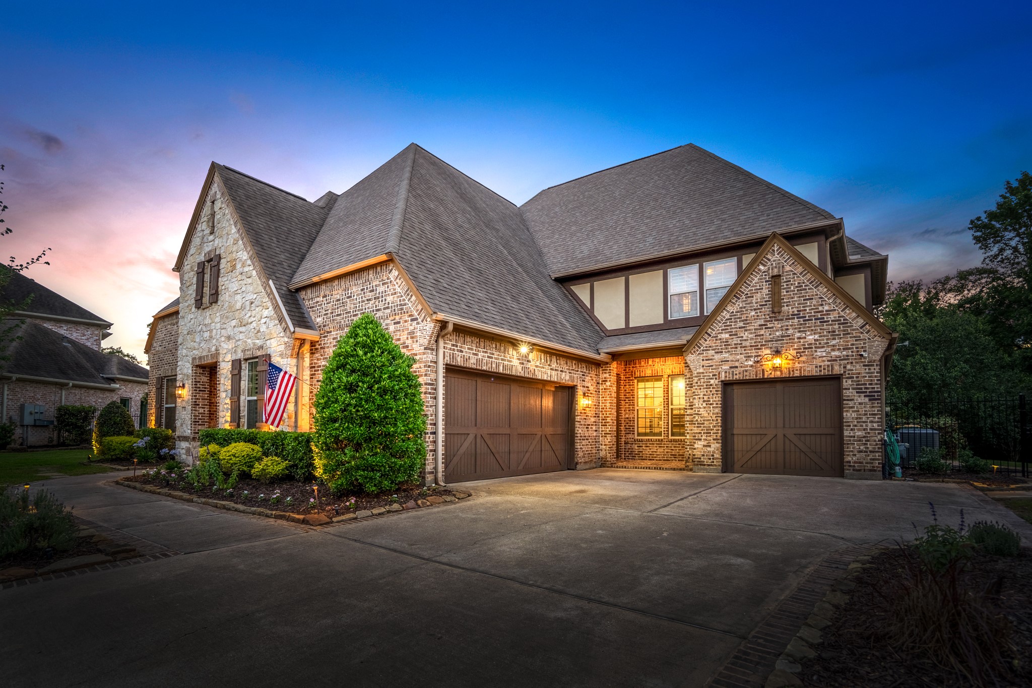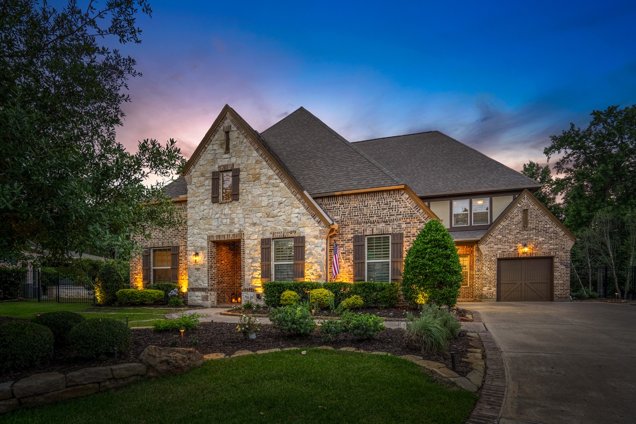 Welcome to 55 Freesia Court—a remarkable English Tudor, on a quiet cul-de-sac backing to a private wooded reserve on a rare ½-acre lot. With 6 bedrooms—including a private guest suite with its own entrance—5.5 baths, fully equipped media room, game room with wet bar, office, and formal dining, this home is designed for entertainment. The open-concept layout highlights soaring ceilings, exposed wood beams, hand-scraped wood floors, crown molding, and high-end millwork. The light-filled interior features a chef’s kitchen with monogram appliances and a copper farmhouse sink. Enjoy two laundry rooms—one up, one down for convenience—fresh paint, shutters, custom shades, and a water softener. Step outside to an oasis outdoor retreat with extended patio, custom outdoor kitchen, lush zoysia grass, and an infinity pool. Additional highlights include surround sound, epoxy-coated 3-car garage, over $200K in upgrades, and zoned to award-winning Tomball ISD schools. Experience the ultimate luxury!