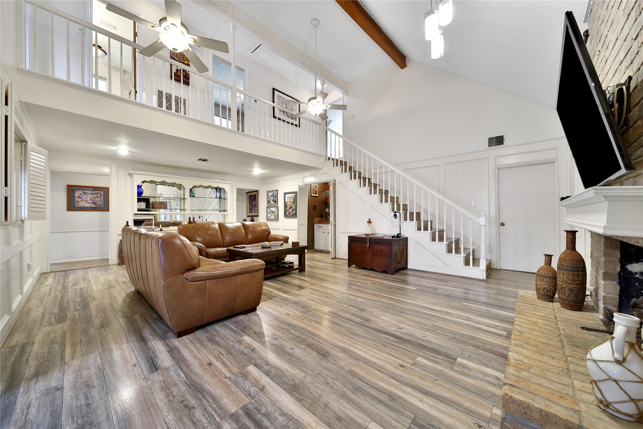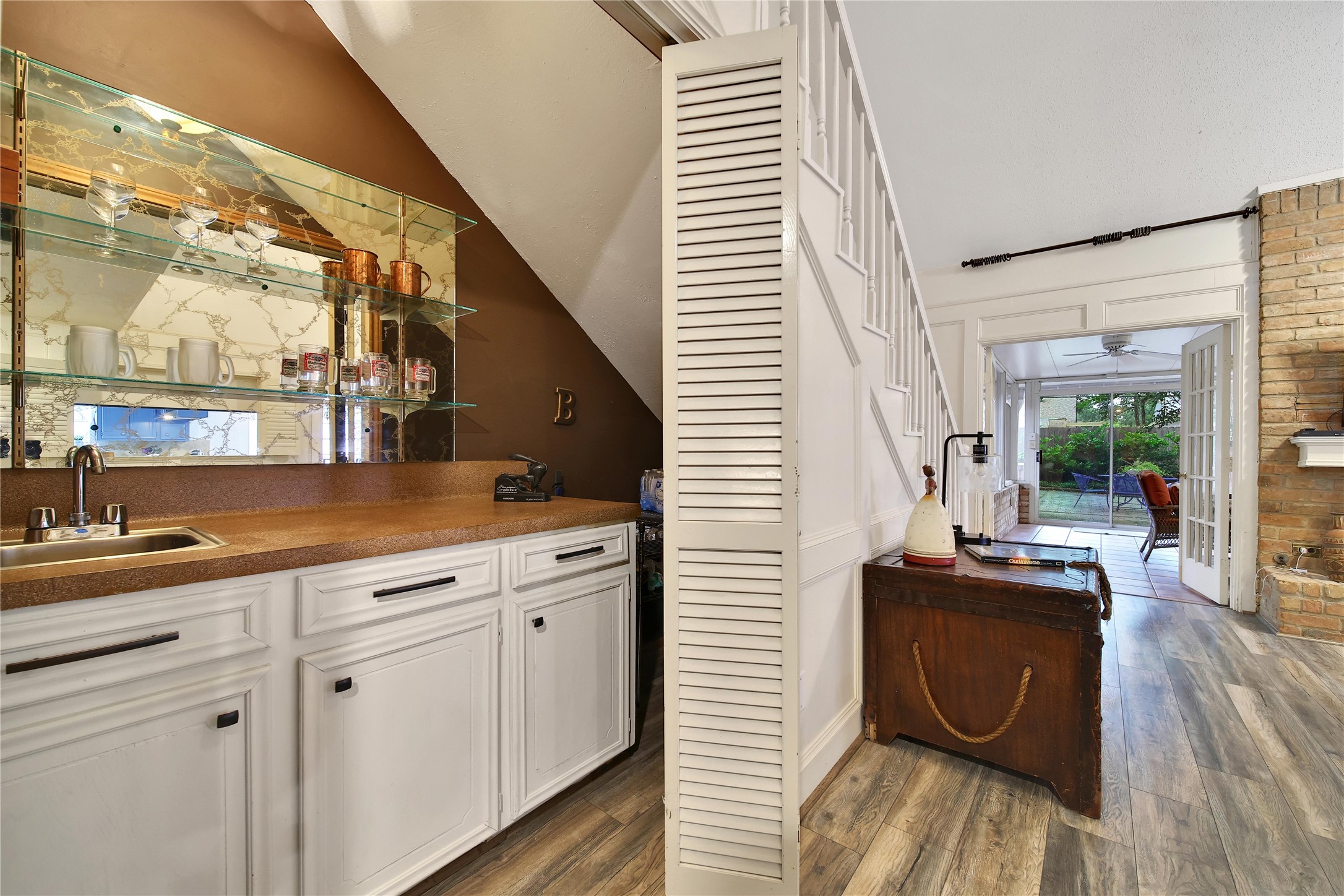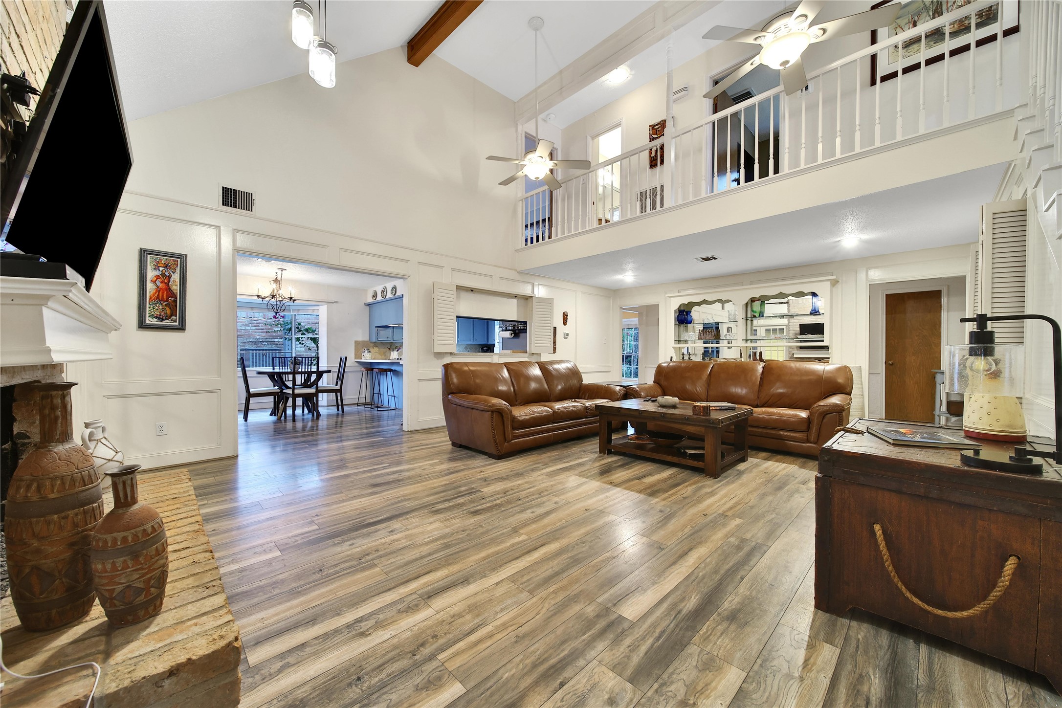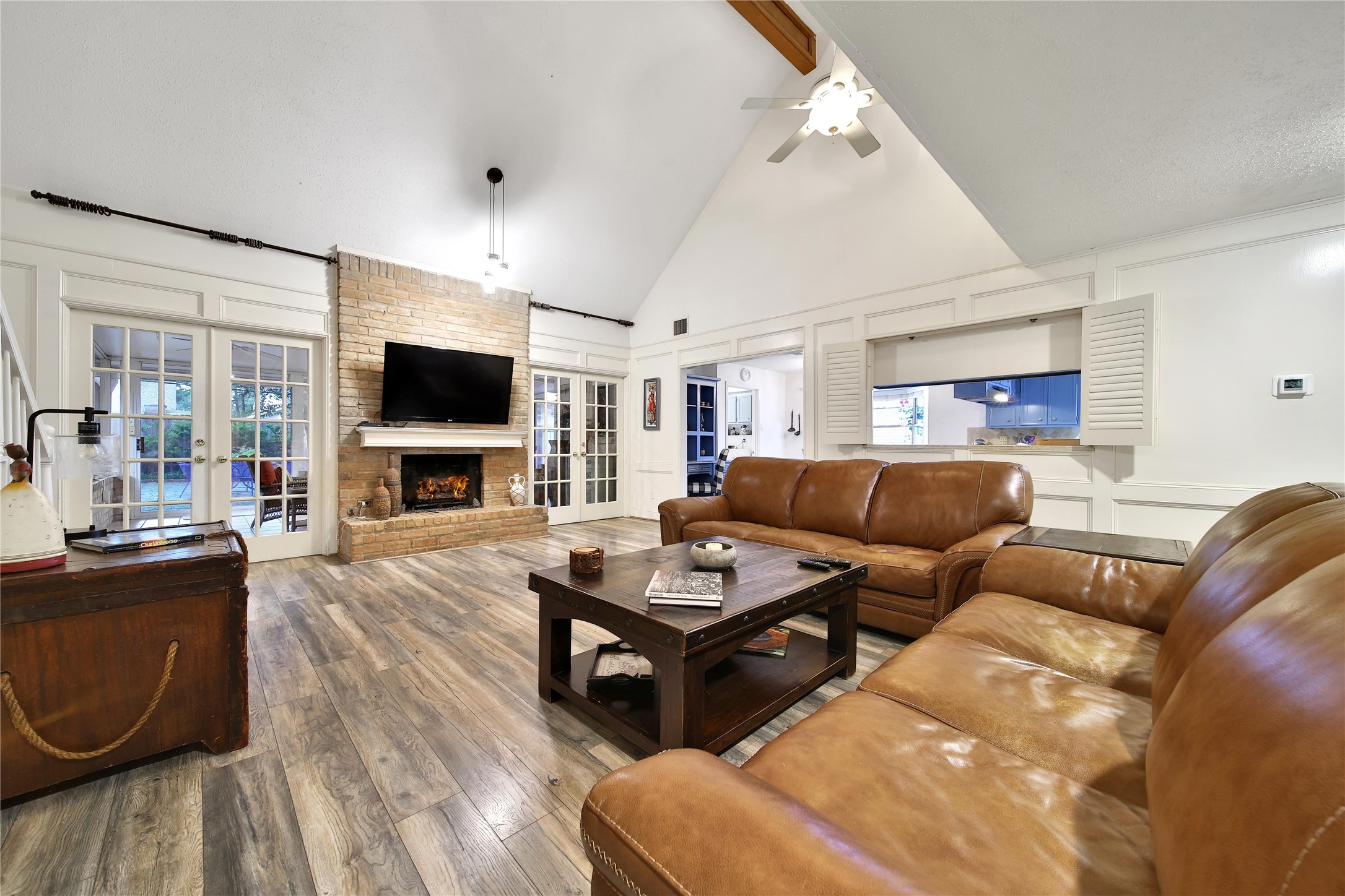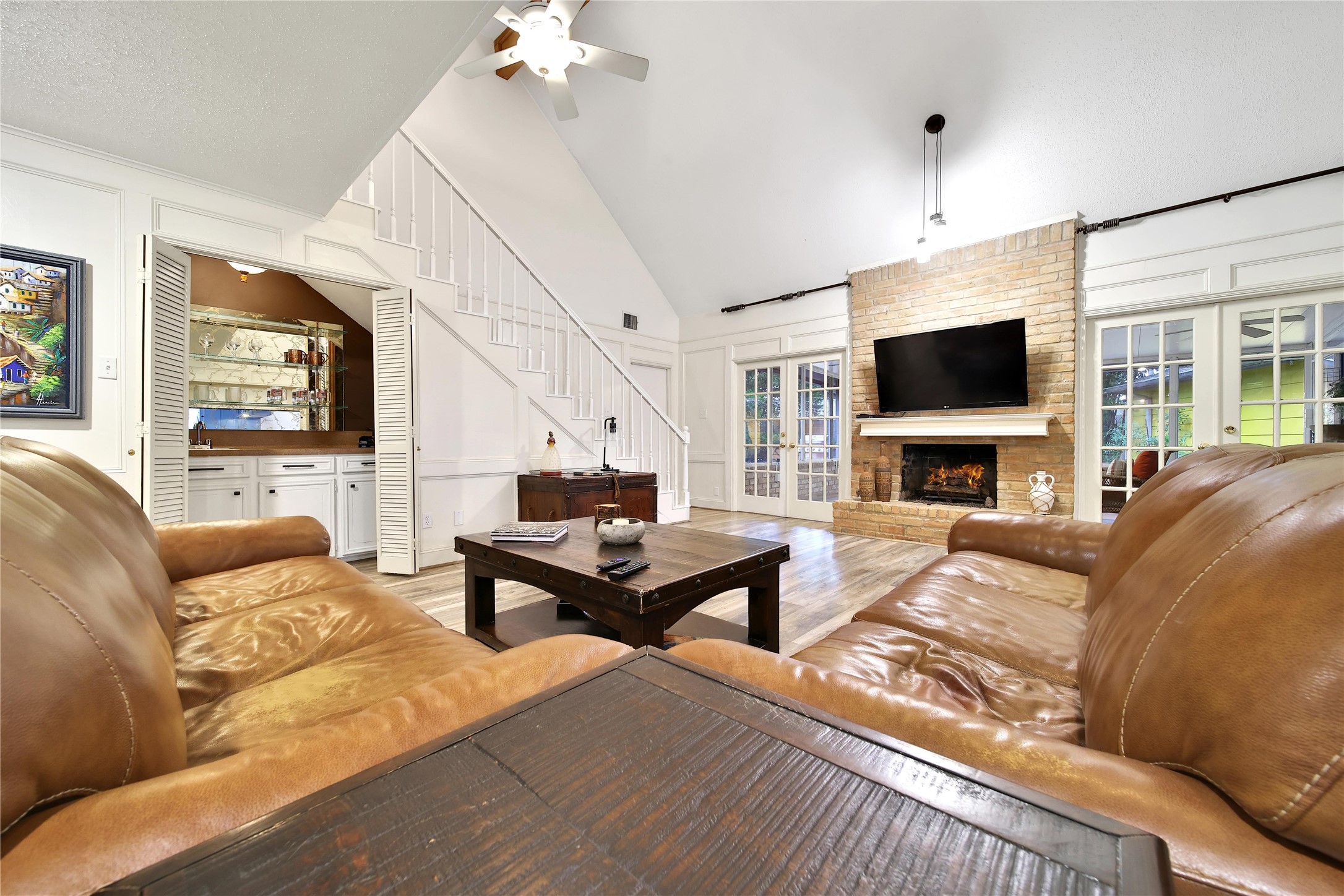 This storybook two-story looks like a Hallmark movie! You’ll be swept away by its warmth, charm, and character. The two-story family room features a brick fireplace and catwalk, with French doors opening to a spacious patio shaded by mature trees, complete with pavers and a built-in grill. The kitchen features a high bar, a cozy breakfast nook with a bay window, and a built-in desk, as well as a formal dining room with another bay window. The sunroom addition adds square footage & expands living space! The first-floor primary suite has barn doors, built-ins, and a bath with double sinks, linen storage, and a shower/tub. Upstairs are generously sized secondary bedrooms and a bath. A large utility room offers extra storage and space for appliances. An extra-long driveway leads to a detached garage. No carpet anywhere! A/C REPLACED IN 2022! Zoned to Klein ISD! Come see the magic today!