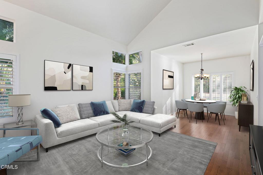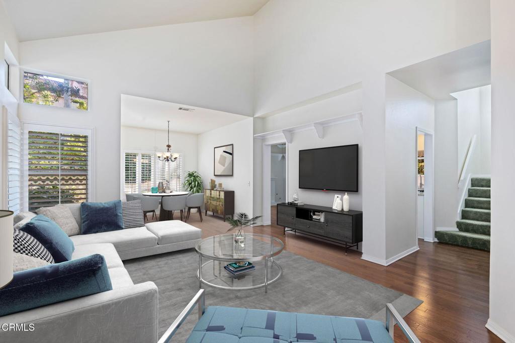 Ventura Brock Hills Beauty. Two story, 3 bedrooms 2 and a half baths Approx. 1600 square feet. Built in 1988. Highly upgraded with new stainless steel oven range, microwave, dishwasher and 3-door refrigerator. Remodeled kitchen and bathrooms with granite counter tops and beautiful custom tile work. Beautiful hardwood floors on lower level. Plantation shutters throughout. Wood burning fireplace in family room with gas log. Plush high-end carpet in all bedrooms. Spacious walk-in shower in primary bathroom. New gutters. Freshly painted interior. Washer and dryer included. Refinished garage flooring with Epoxy finish. Spacious corner lot location with flat useable backyard with cement patio.