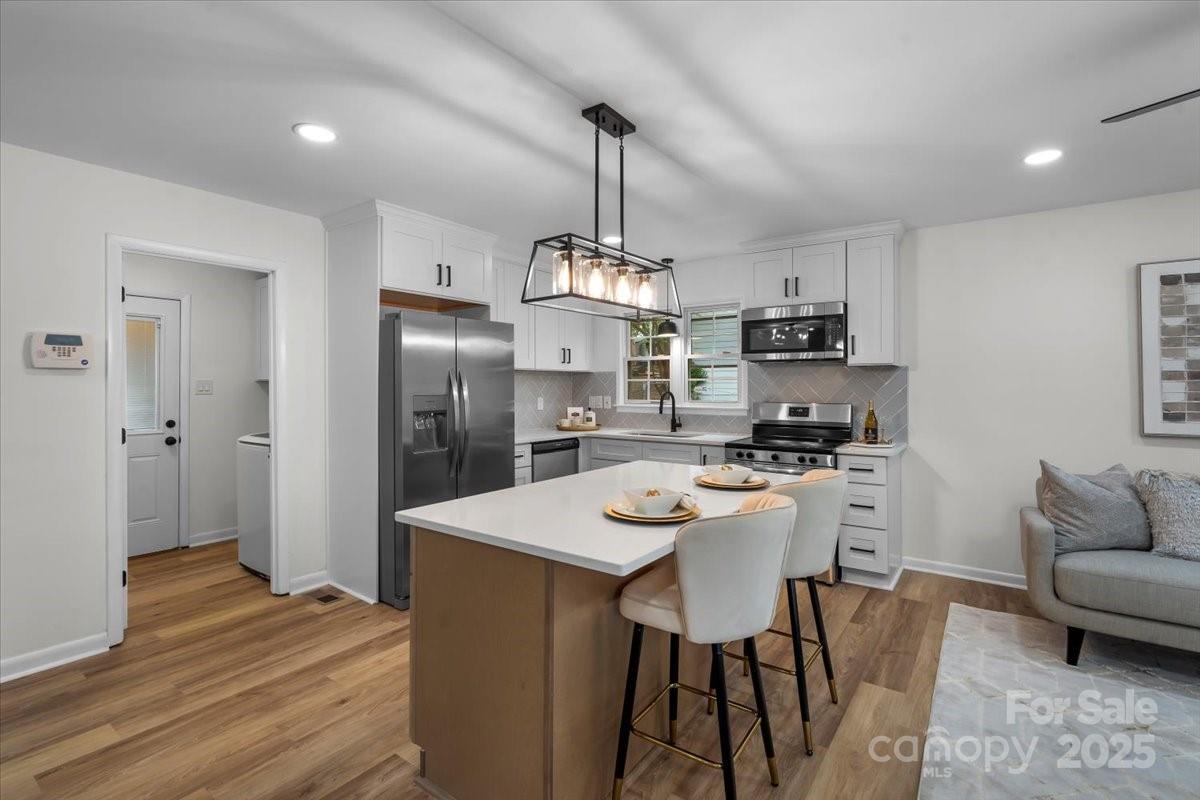 BAC 2% - This bright and airy 3 bed/2bath brick ranch located in the charming Oak Forest neighborhood and is sure to make you feel right at home. Newly renovated, the home features an open concept perfect for entertaining. Modern updates throughout include black accented fixtures, new lighting, and light toned LVP. The kitchen showcases brand new appliances, quartz countertops, tile backsplash, and island seating for two. The primary suite offers a beautiful marble styled bathroom and walk-in closet. Enjoy outdoor dining and entertaining in the spacious fenced backyard with extensive paved patio. Additional amenities include an attached storage unit and outdoor shed. Parks, golf courses, and shopping all within 10 minutes.