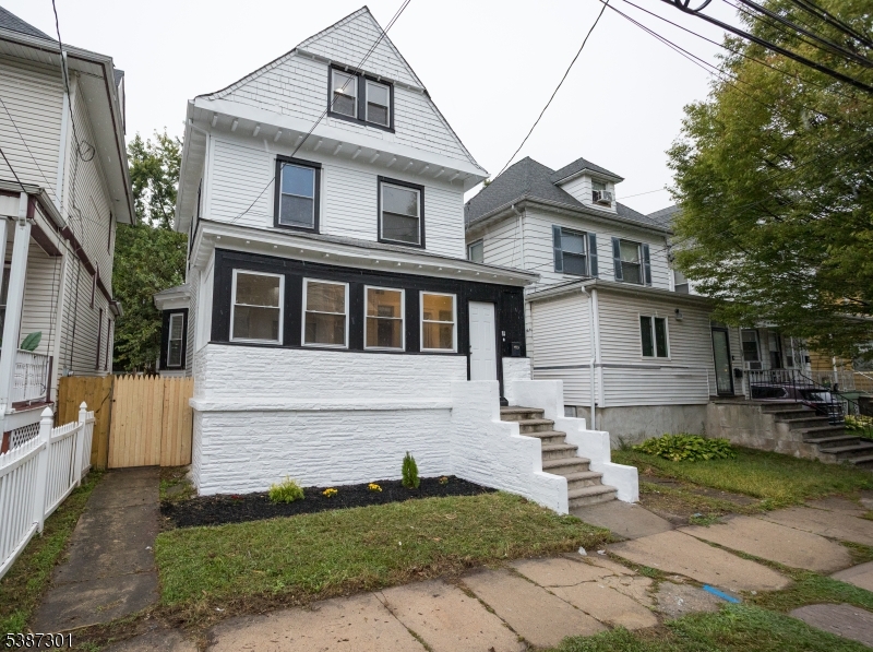 Welcome to this well appointed 2,000 sq ft, 2 story colonial, located in the convenient and desirable Vailsburg section of Newark, with plenty of modern updates and amenities to enjoy! The first floor starts off with a nice enclosed front porch, leading into an open living / dining room combo that's ready for a new owner's personal touch. There is also a powder room conveniently located just off the dining room. The kitchen has been fully renovated with brand new shaker cabinets, quartz counters and modern ss appliances. The 2nd floor offers 3 bedrooms and a renovated full bath. The fully finished 3rd floor is a primary suite with a bedroom, sitting room, and spacious private full bath! The basement is clean and painted, ready to be finished! On the outside of the home there is a freshly painted back porch overlooking a large private, new fenced-in yard. Updates include refinished hw floors, renovated kitchen and baths, newer plumbing and electrical, newer forced air heating system, freshly painted interior and exterior, landscaped front and back yard, new fence. and more! Don't miss this one!