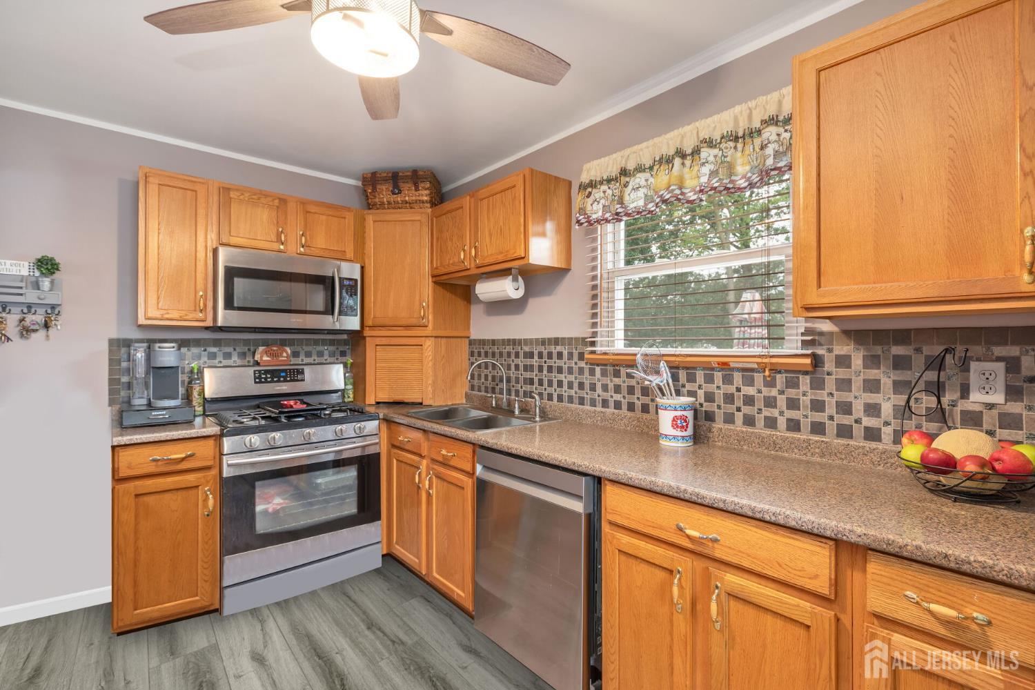 Welcome to 43 N Madison Ave, a beautifully done Cape Cod offering 4 bedrooms and 2 full bathrooms. The main level features a bright living room with electric fireplace heater, an eat-in kitchen with new dishwasher and appliances included, plus two bedrooms. Upstairs, you'll find two bedrooms with wample space closet shelving, an office/den, and a full bath with a shower. The finished basement adds additional living space, storage under the steps, counter area, and rough plumbing for an additional bathroom, along with laundry and utility areas. Vinyl floors, new ceiling fans, central air, and a waterproofed foundation (8 ft down with drainage to the street) provide comfort and peace of mind. Outside, enjoy the new patio, concrete steps, and large backyard perfect for entertaining. All appliances remain. Move-in ready with flexible layout and modern updates throughout!