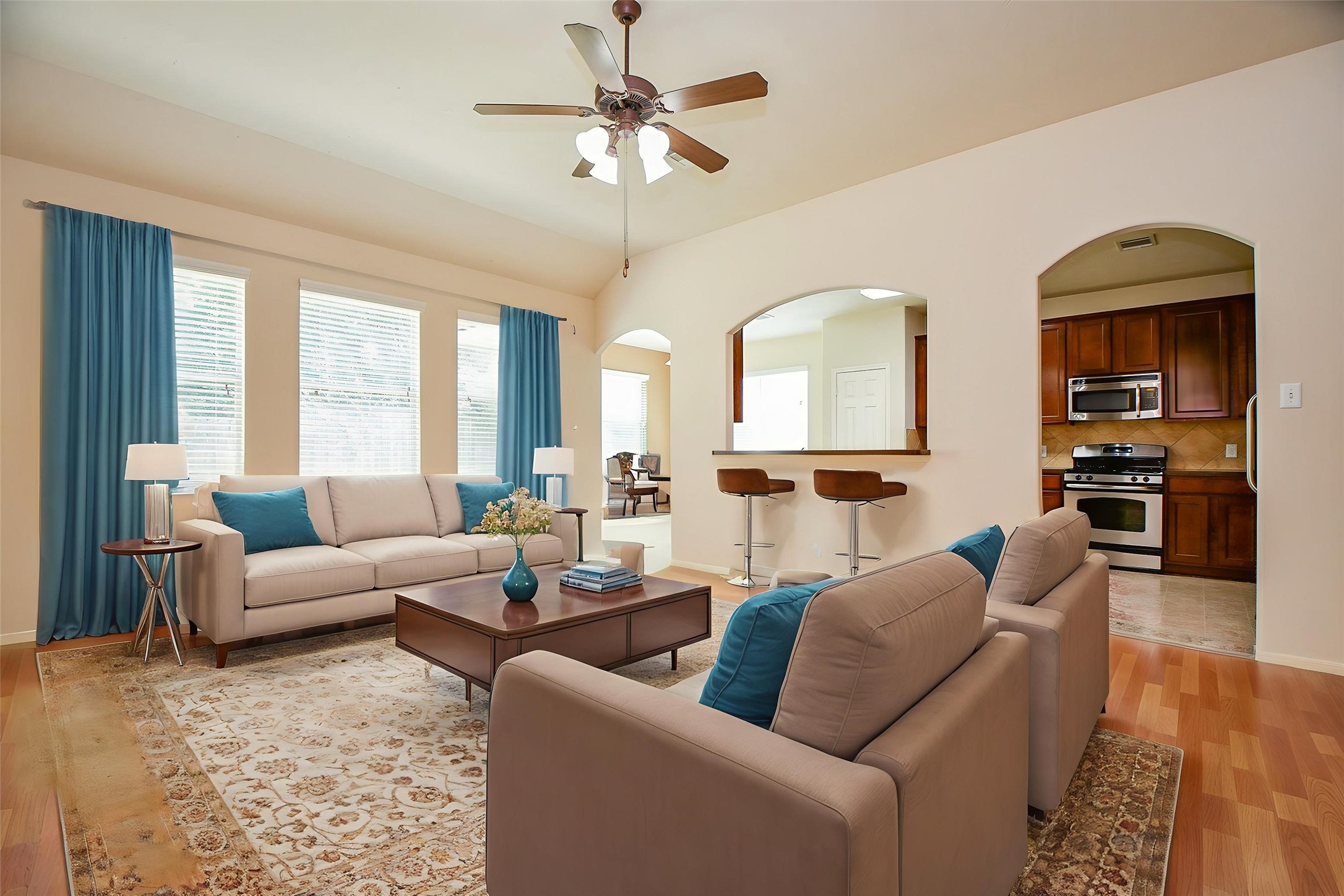 This great single-story home in Mason Lakes features 3 bedrooms, 2 full bathrooms, and a 2-car attached garage. Open layout, spacious living room and dining area that flow into a well-appointed kitchen with generous cabinet storage and a breakfast nook overlooking the backyard. The primary suite offers a private bath with a walk-in closet, while two additional bedrooms share a full bath, providing flexibility for family, guests, or a home office. A separate utility room adds convenience, and the fenced backyard with patio space is ideal for outdoor enjoyment. Looking for energy savings? This is it! Recent AC, FULL HOUSE SOLAR PANEL SYSTEM and a full house water filtration system. Enerfy cost is capped and predictable. Refrigerator and washer dryer included. NO ELECTRICITY BILL! Neighborhood offers pools, parks and lakes for resident enjoyment. This property offers easy access to schools, shopping, dining, Grand Parkway & I-10. Priced to sell. Great for living, great for investment.