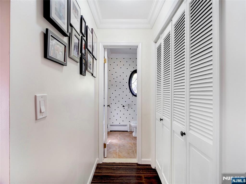 Beautiful End-Unit "Claremont model Townhome " A Commuters Dream! Located in the desirable Montclair Heights section of Clifton at Hamilton Crest, this spacious tri-level home offers 2 bedrooms, 3.5 baths, and multiple living areas perfect for todays lifestyle. The main level features newer flooring with elegant crown molding, a formal dining room, and a bright living room that opens to a private patio ideal for entertaining or relaxing. The updated kitchen is equipped with granite countertops, stainless steel appliances, side-by-side refrigerator with water/ice dispenser, pantry, and garbage compactor. A cozy family room with a wood-burning fireplace and a convenient powder room complete this level. Upstairs, the primary suite includes a full bath, while the second bedroom has its own private bath. Additional storage is available in the attic. The finished lower level provides endless possibilities featuring a full bath, laundry, abundant closets, and flexible space that could easily function as a guest suite, home office, or recreation room. Additional highlights include an attached garage, driveway space, guest parking, and unbeatable commuter convenience with the NYC bus stop right across the street. Enjoy easy access to downtown Montclair, NJ Transit trains and buses, major highways, and MSU.