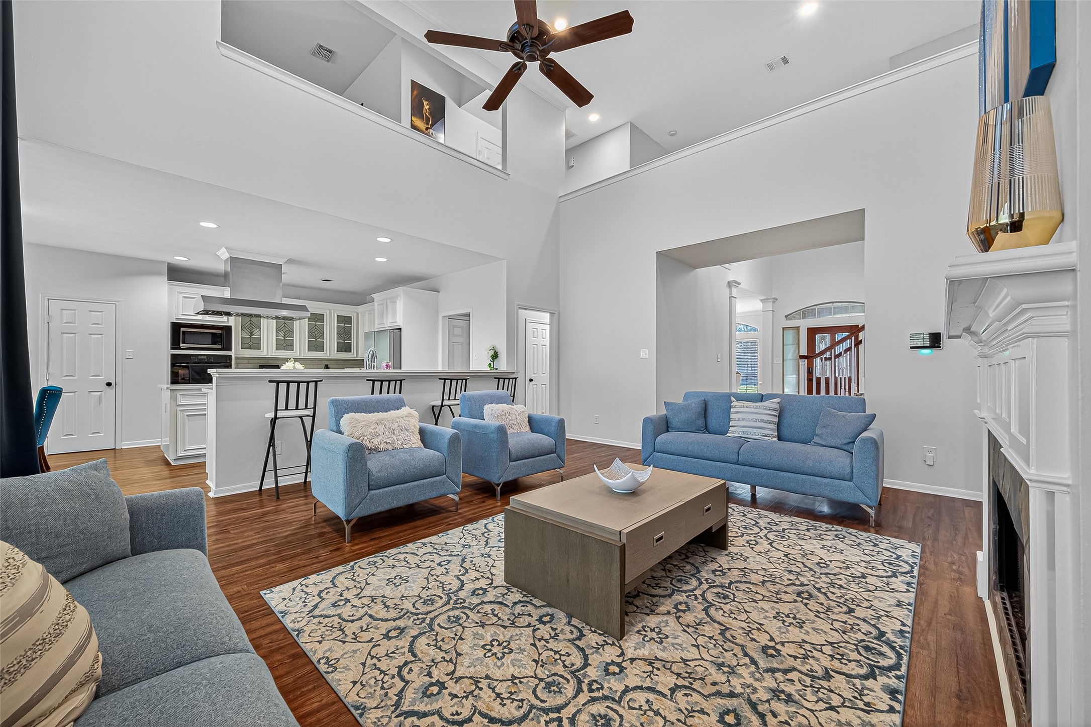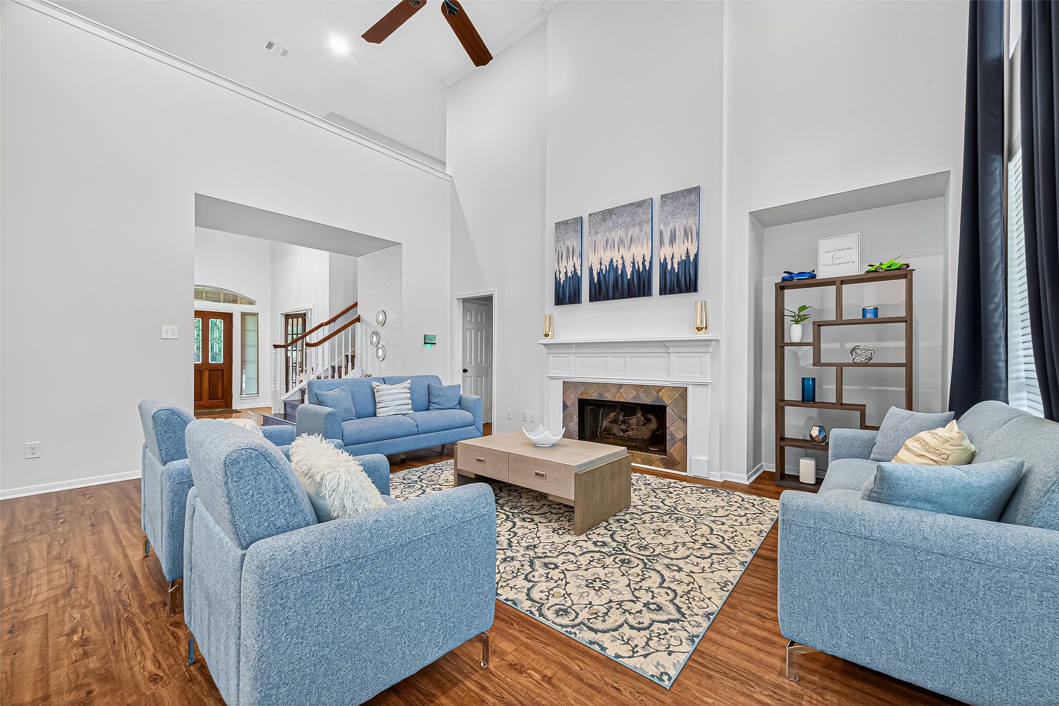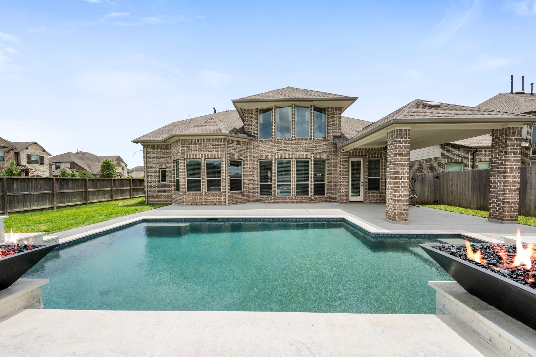 Stunning corner-lot home with exceptional curb appeal and lush landscaping! Inside, a private office and formal dining leads to an open-concept living room with soaring ceilings, fireplace and abundant natural light. The gourmet kitchen features a center island cooktop, bright breakfast nook and brand-new stainless steel appliances. The first-floor primary suite boasts a jetted tub, glass-enclosed shower and walk-in closet. Upstairs offers a large game room and spacious secondary bedrooms—perfect for guests or multi-generational living. Recent upgrades include a 3-car tandem garage with marble-look epoxy floors, new HVAC, water heaters, modern lighting, and so much more! Step outside to your private backyard oasis with an in-ground pool and waterslide, new sundeck, turf lounge area, upgraded fencing, and a covered patio for entertaining. Don’t miss the chance to make this beautifully updated home your own—schedule a showing today!