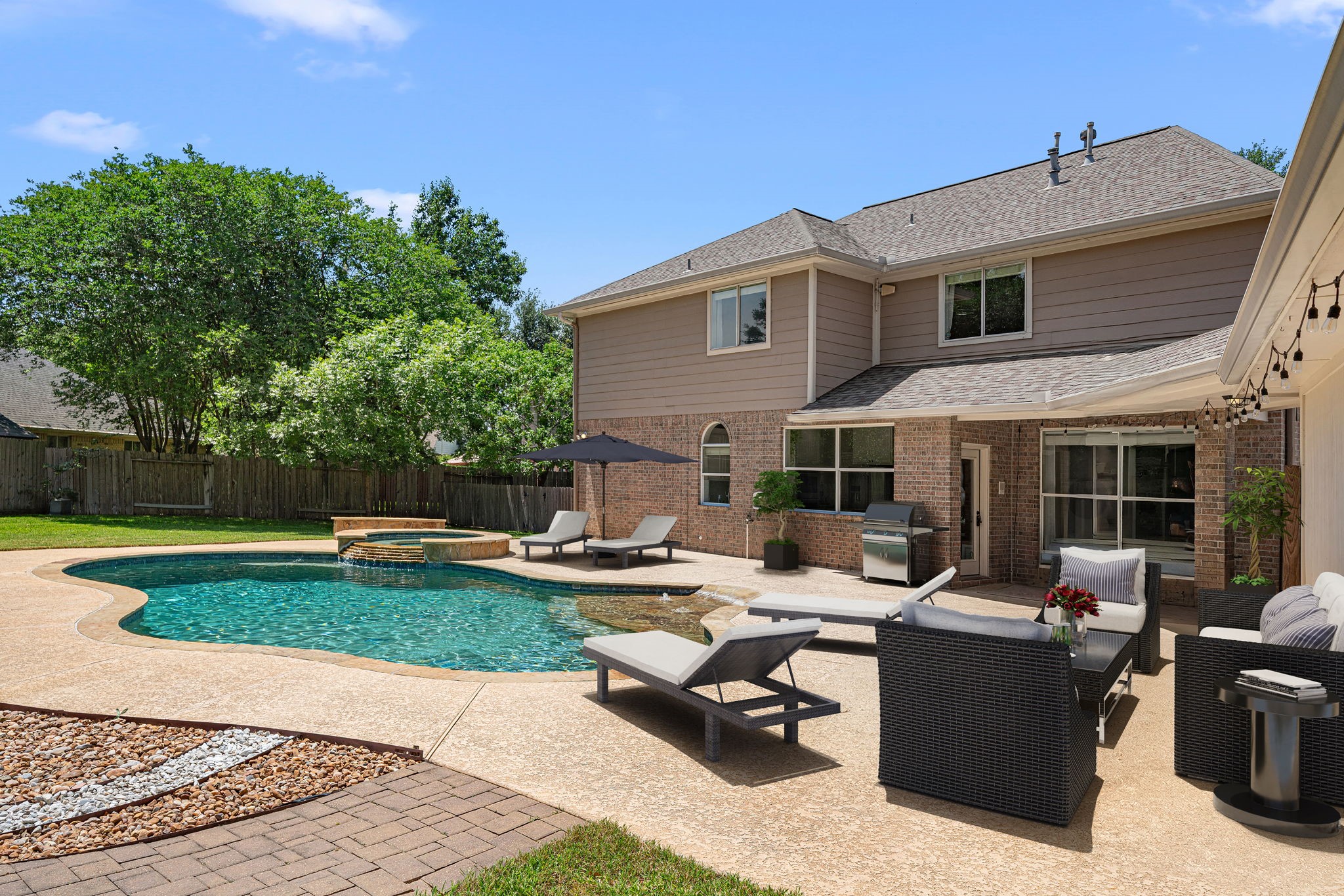 Stunning home in highly sought-after Cinco Ranch North Lake Village! No back neighbors & a block away from the golf course, close to La Centerra shops & restaurants. As you walk into this beautiful home, you are greeted w a wood riser staircase & a soaring two-story entryway. Formal living room & dining room w wood flooring and gorgeous molding, remodeled kitchen w quartz countertops, under-mount sink, stainless steel appliances, plenty of counter & cabinet space. Large living area w gas log fireplace & Double-Pane windows that look out to your sparkling pool & beautiful yard with no back neighbors! Large primary, primary bathroom w seamless shower. Second floor features a huge game room, four huge secondary bedrooms w walk in closets, & study w built-in bookcases, the second floor carpet was replaced before listing! Backyard oasis w beautiful pool and no neighbors in the back. Three-car detached garage. Double-Pane windows throughout the whole house! Highly Rated Katy ISD Schools
