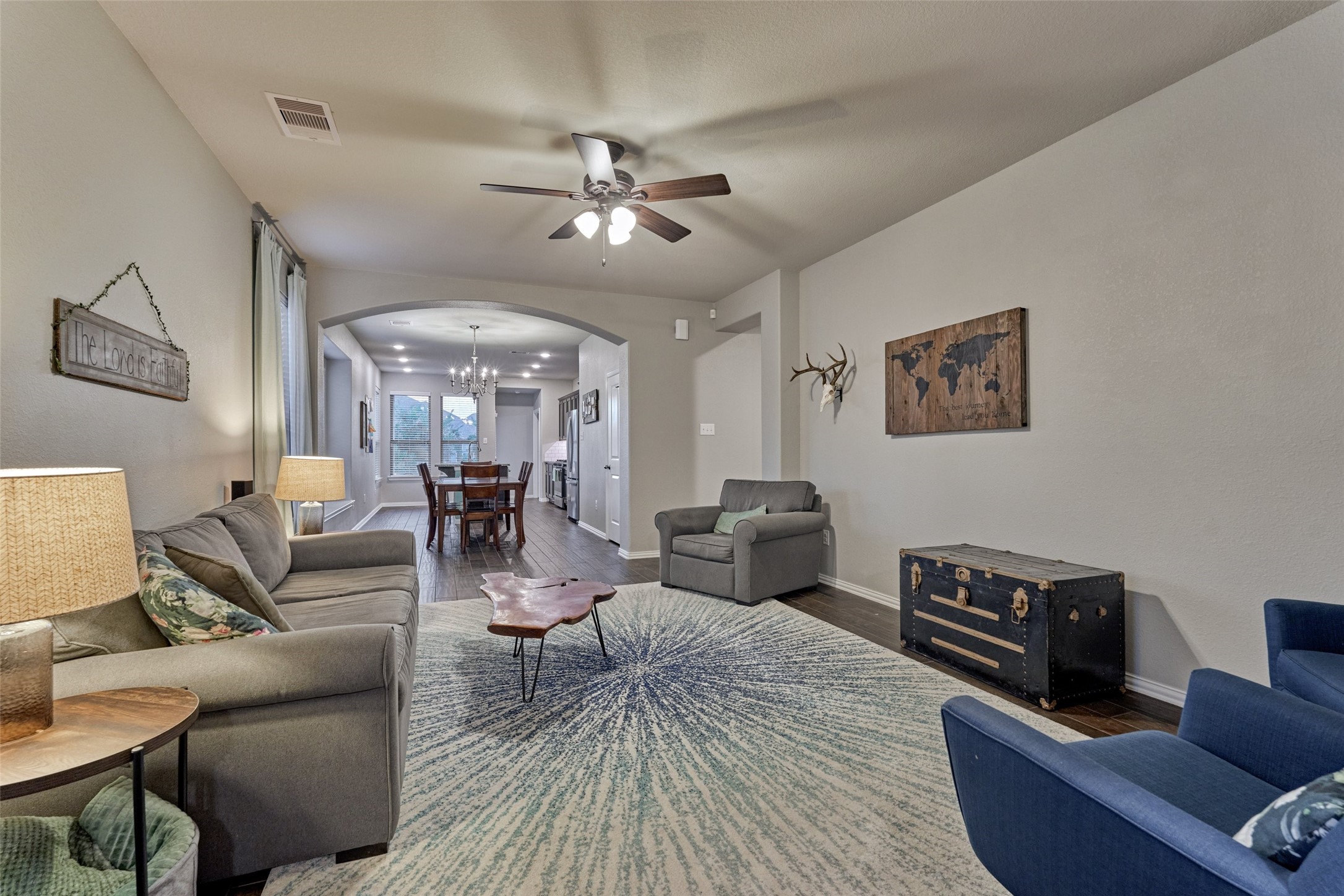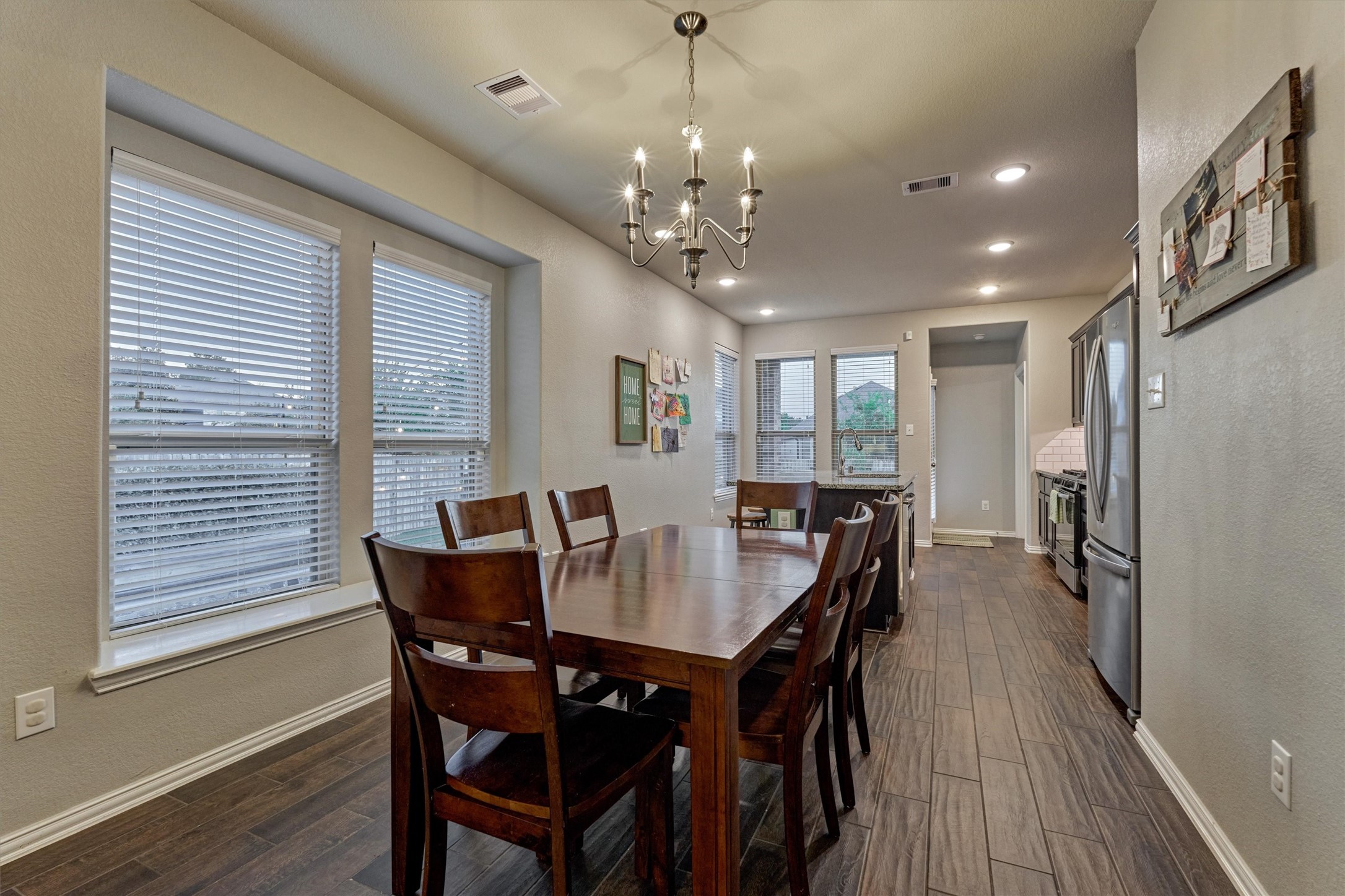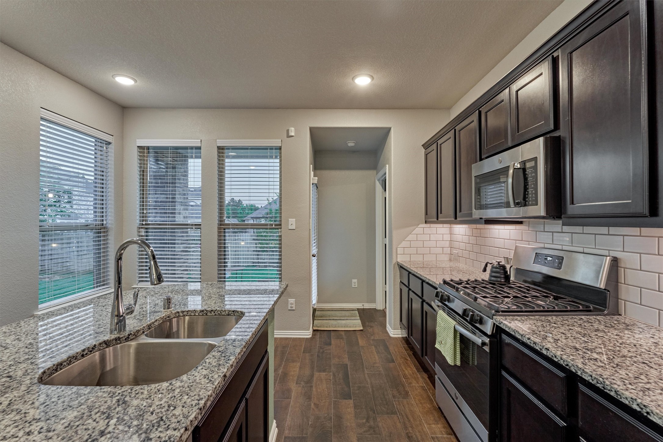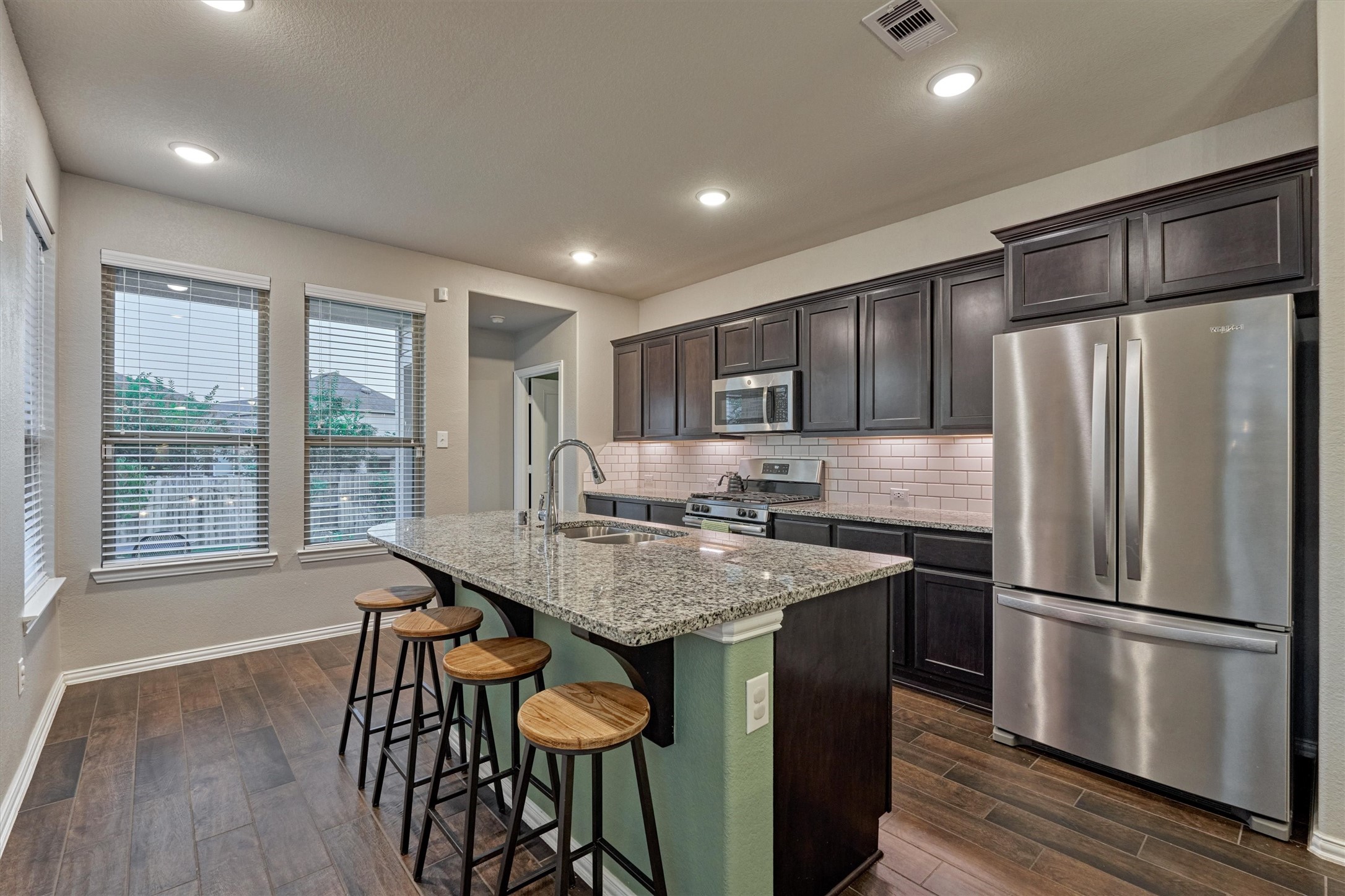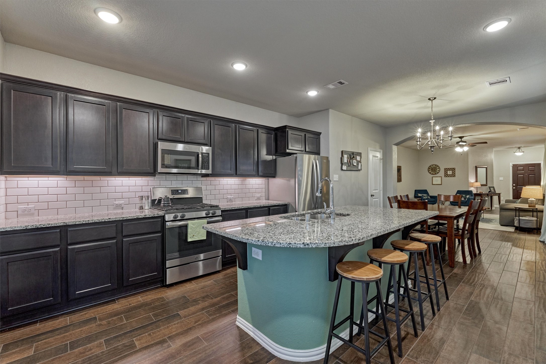 Immaculate 3-bedroom, 2-bath Highland Home, perfectly situated on a spacious CUL-DE-SAC lot, ideal for play, gatherings, or gardening. This beautifully maintained ONE-STORY home offers the perfect blend of style, comfort, and functionality. The OPEN-CONCEPT floor plan is designed to maximize space and flow, creating an inviting atmosphere for both everyday living and entertaining. Elegant WOOD-LOOK TILE flooring that extends through the main living areas. Chef-inspired kitchen features a LARGE ISLAND that opens seamlessly to the family room and dining—ideal for gatherings. The primary suite is a true retreat that offers window seating, an impressive closet, an ensuite complete with dual sinks, a soaking tub, and a separate shower. Residents of Woodforest enjoy access to exceptional community amenities, including a resort-style swimming pool, a lap pool, Stampede Sportsplex for soccer, basketball courts, a lively community center, multiple parks and playgrounds, and walking trails.
