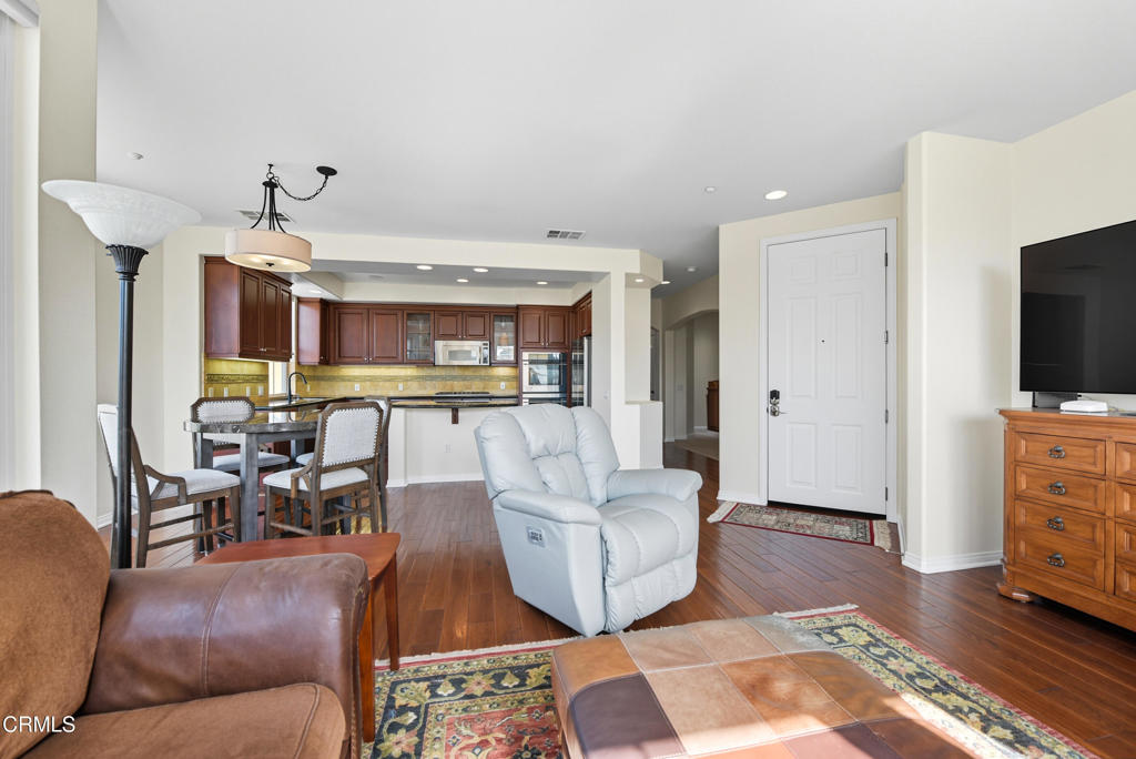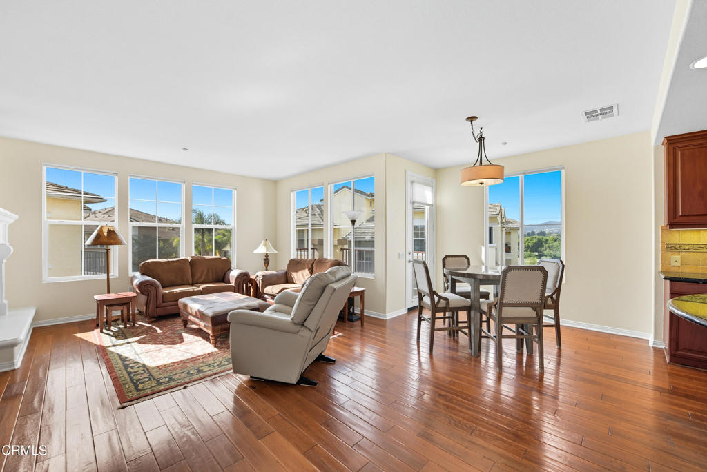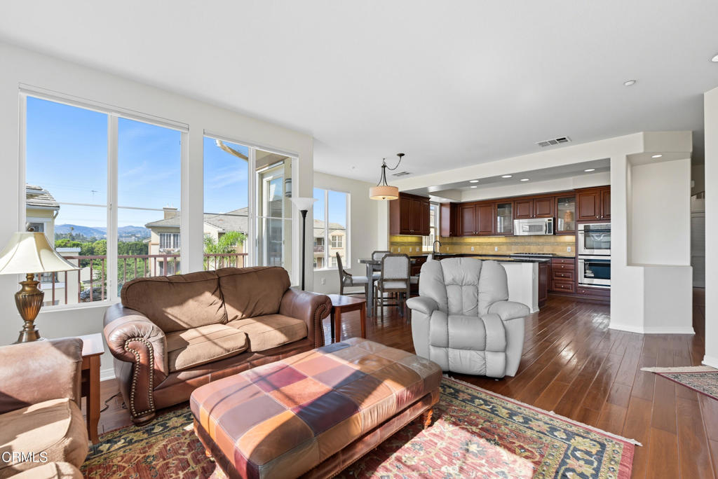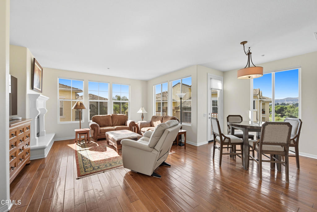 Wow! Don't miss out on this beautiful, SINGLE LEVEL penthouse condo with Amazing Views! Upon entry you will find an open floor plan with an abundance of natural light and some really fantastic mountain views. Features 2 bedrooms, 2 bathrooms + large bonus room that can be used as office, family room, etc. Gourmet kitchen with custom cabinets, granite countertops, stainless steel appliances + oversized island w/breakfast bar. Spacious living room with cozy fireplace to relax by. The master suite boasts a walk-in closet and dual vanities. Additional features include wood flooring & custom window coverings, indoor laundry (washer/dryer included), A/C, water softening system + 2-car tandem garage. Lovely balcony off dining room to take in the mountain views + ocean/island views on clear days. Situated in a quiet and peaceful (active) 55+ resort like community that includes a heated swimming pool, spa, clubhouse with full kitchen, game room and outdoor BBQ area. Close in proximity to Montalvo Hill Park, shopping and restaurants w/easy access to 101 & 126 freeways. This property is a must see and won't last long!