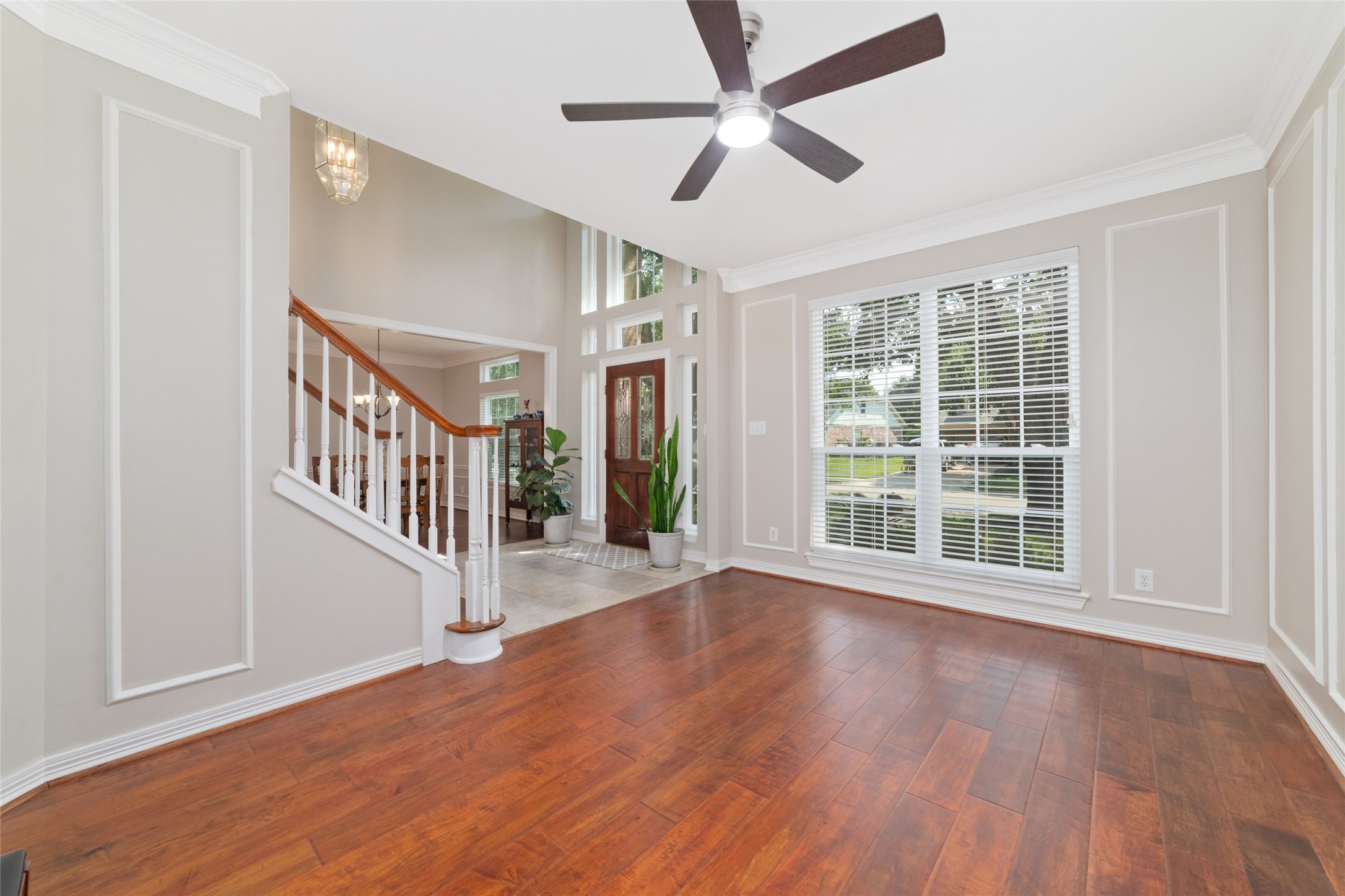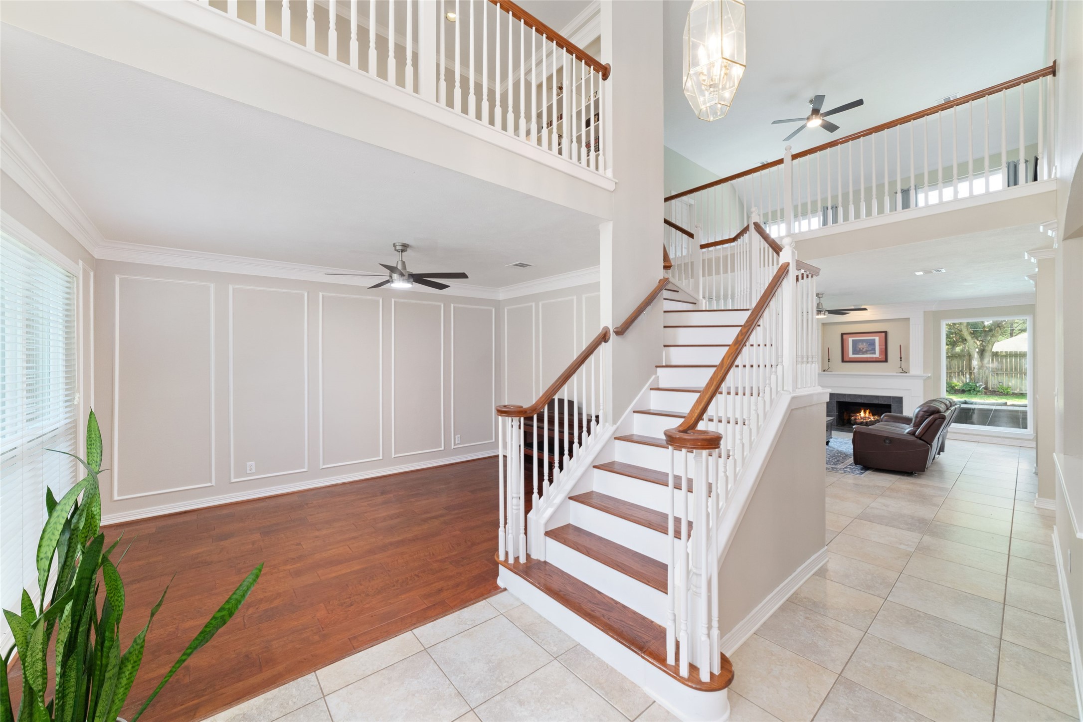 Stunning home in highly sought-after Cinco Ranch North Lake Village! No back neighbors & a block away from the golf course, close to La Centerra shops & restaurants. As you walk into this beautiful home, you are greeted w a wood riser staircase & a soaring two-story entryway. Formal living room & dining room w wood flooring and gorgeous molding, remodeled kitchen w quartz countertops, under-mount sink, stainless steel appliances, plenty of counter & cabinet space. Large living area w gas log fireplace & Double-Pane windows that look out to your sparkling pool & beautiful yard with no back neighbors! Large primary, primary bathroom w seamless shower. Second floor features a huge game room, four huge secondary bedrooms w walk in closets, & study w built-in bookcases, the second floor carpet was replaced before listing! Backyard oasis w beautiful pool and no neighbors in the back. Three-car detached garage. Double-Pane windows throughout the whole house! Highly Rated Katy ISD Schools