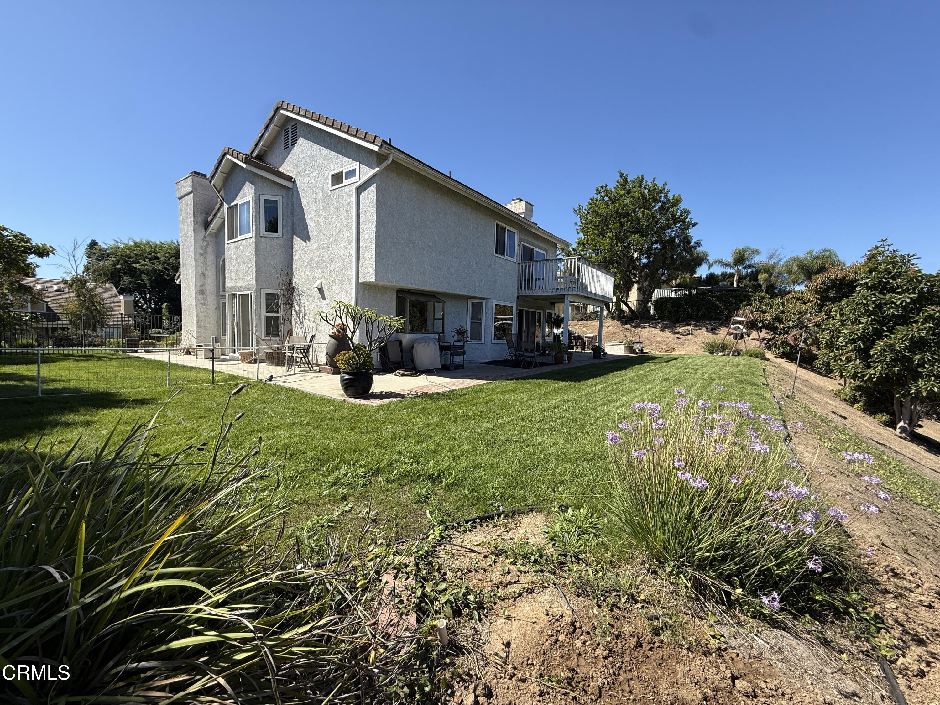 Set on a peaceful half-acre, with incredible views, in one of Camarillo's most inviting neighborhoods, this 2,574 sq. ft. home offers a wonderful place to settle down. You'll love the sense of openness, natural light, and privacy that make this home feel like a private retreat. The custom front walk-way and patio welcome you into the home. Inside, the open layout filled with natural light and high ceilings create a sense of airiness throughout while the floor plan flows effortlessly. A formal living room invites you to settle in by the fireplace while the dining room leads to a side patio for outside dining. The wet bar with custom wood countertop is adjacent to the family room which is highlighted by a fireplace and slider to the backyard making entertaining easy. The kitchen's boasts a walk-in pantry and garden window that perfectly frames the mountains adding enjoyment while cooking. The downstairs features a spacious bedroom with vaulted ceiling, and slider to the backyard -- perfect for guests or a home office with its own outdoor access. Upstairs, the primary suite features vaulted ceilings, dual sinks, a walk-in closet, and a private balcony to take in the panoramic views. Two additional bedrooms share a convenient full bath. Retreat to the backyard for relaxing and entertaining -- with multiple patios, raised garden beds, and 'infinity' grass that seamlessly stretches toward the breathtaking views. Fruit trees (avocado, orange, guava, lemon, grapefruit, and fig) adorn the property, offering both beauty and bounty -- perfect for pets, play, and views. The oversized 3-car garage offers room for vehicles, storage with space for hanging out or working on projects. With an owned 4.25 kW solar system and smart home features including connected thermostat, irrigation, and security systems, this home blends modern comfort with peaceful, view-filled living. It's the perfect mix of beauty, function, and serenity -- a home you'll never want to leave.