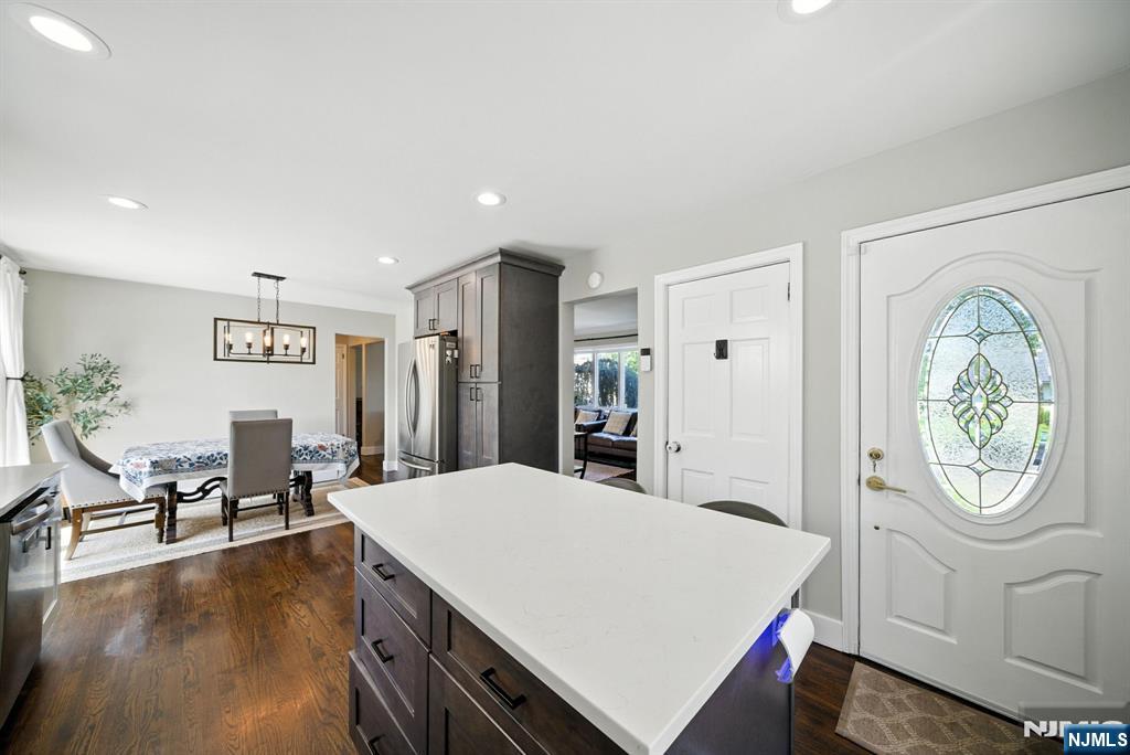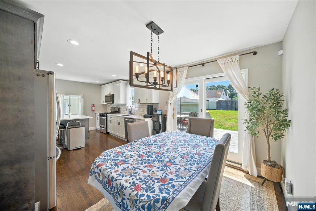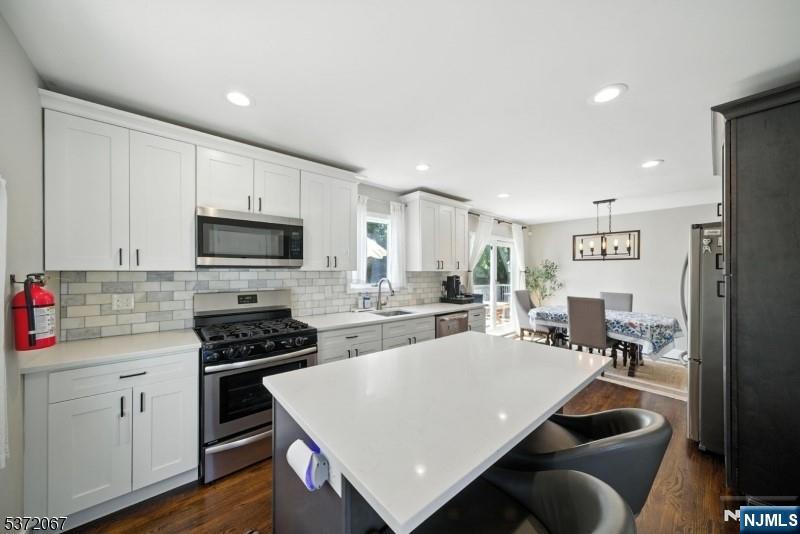 Welcome to this beautifully updated 5-bedroom, 3.5-bath colonial in the heart of Bloomfield! This impeccable home blends modern luxury with everyday comfort, featuring a bright open layout, gleaming hardwood floors, and recessed lighting throughout. The stunning kitchen showcases quartz countertops, stainless steel appliances, elegant cabinetry, and a breakfast island perfect for casual dining. Spacious living and dining areas flow effortlessly to a large deck overlooking a serene, landscaped backyard-ideal for relaxing or entertaining. Upstairs, the luxurious primary suite includes a spa-inspired bath with a vanity, soaking tub, and a rainfall shower. The fully finished lower level offers extra living space and another full bath, great for guests or a home office. Additional highlights include energy-efficient solar panels, central air, and a 1-car garage. Conveniently located near shopping, parks, and NYC transportation, this home delivers both style and convenience in one captivating package.