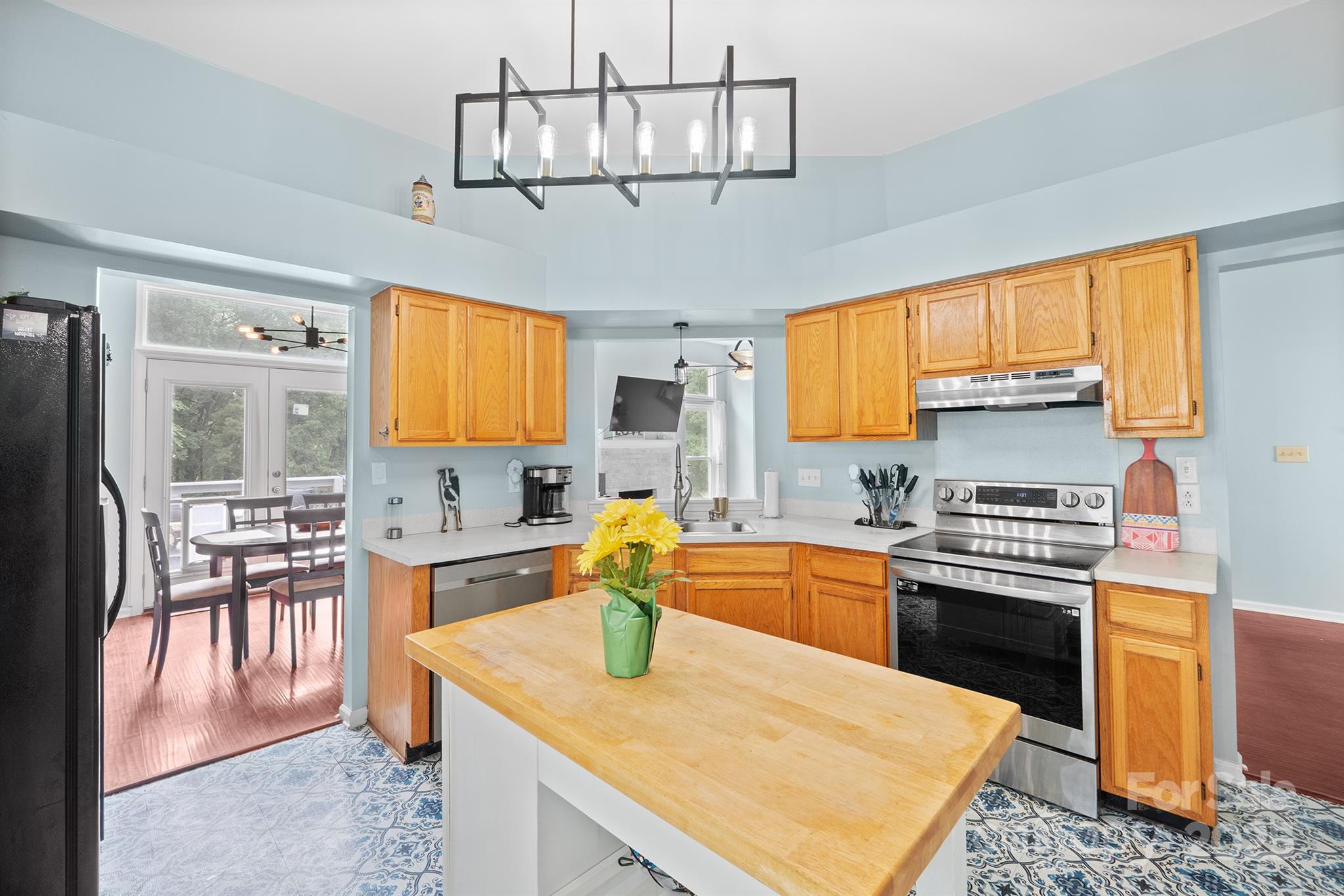 Located in desirable Harrisburg neighborhood with no HOA and the highly rated Hickory Ridge Schools this one-story ranch home offers comfort & convenience on a spacious half-acre lot. The move in ready home features 3 BR's and 2 full Baths, designed with an open floor plan that seamlessly connects the main living areas. Natural light fills the interior of the home, creating a bright & inviting atmosphere. The Living room has a wood burning fireplace that offers a modern twist. Designed for function the kitchen includes an island, updated appliances, & a walk-in pantry. Primary Suite has a trey ceiling, an ensuite bath & walk-in closet. Secondary bedrooms are a generous size, the main bath was recently renovated, The rear deck, accessible from the dining room, provides an excellent extension of the living space for entertaining. The large backyard has a fire pit and plenty of space for gardening & outdoor activities. Park in the 2 car Garage or there's plenty of room in the driveway. With its functional layout, generous lot size, & sought-after location, this property is an excellent opportunity for first time home buyers!