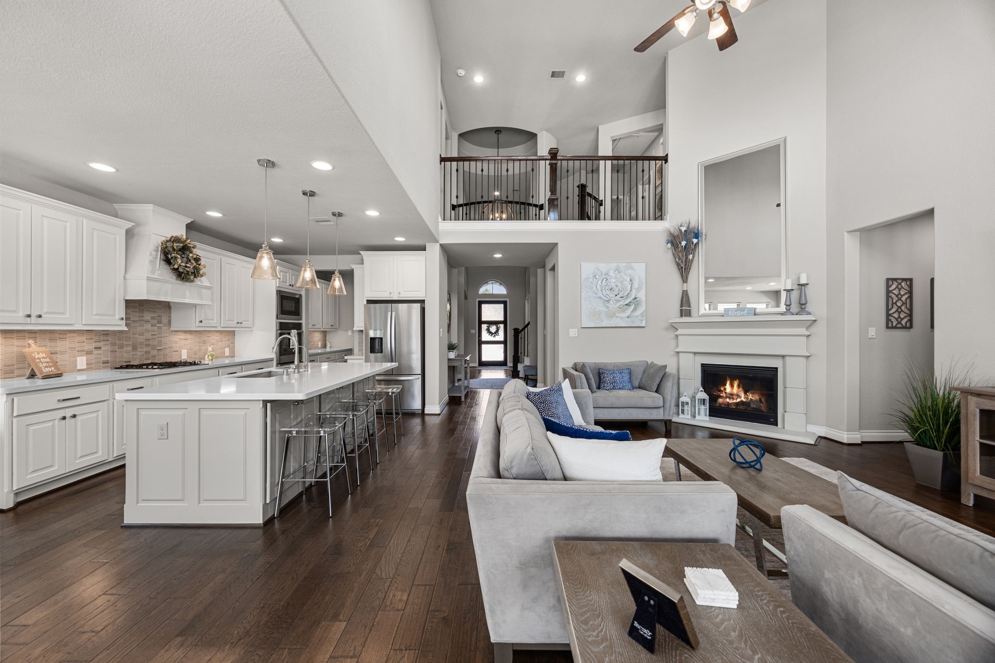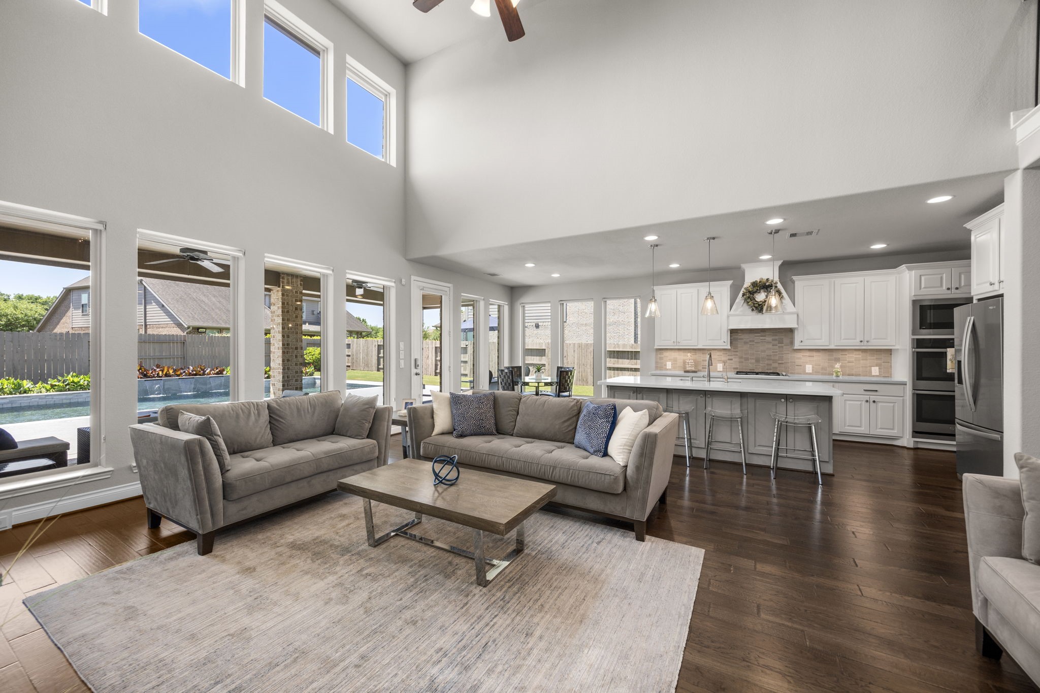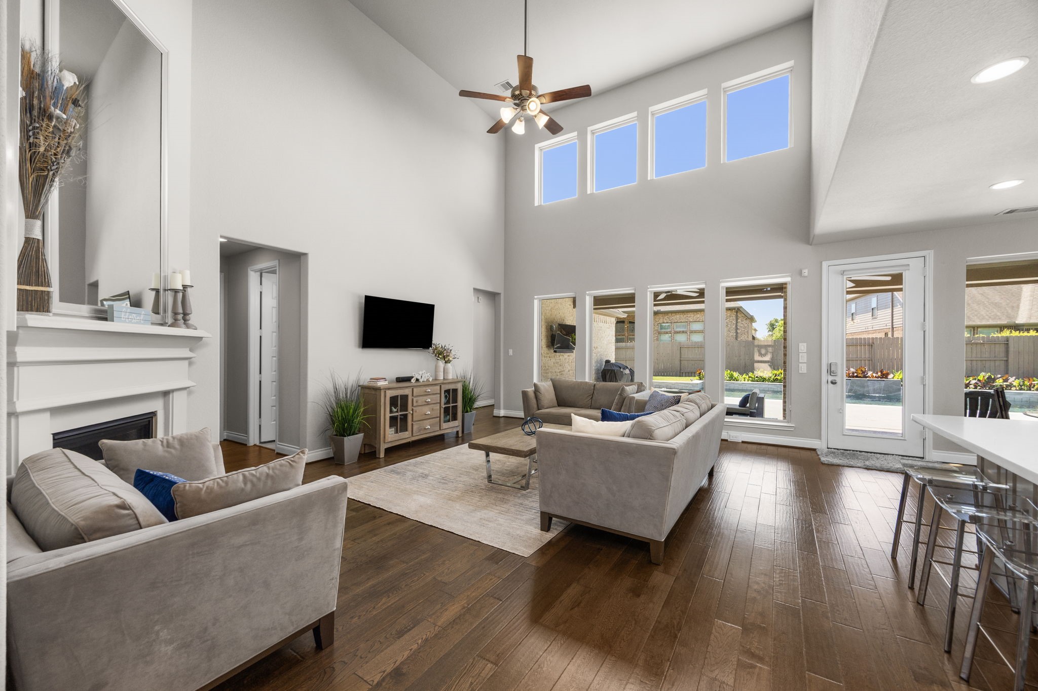 Nestled in the beautiful and highly sought-after neighborhood of Fulbrook on Fulshear Creek, this stunning two-story home offers 3,900 sqft of elegant living space. This home boasts four spacious bedrooms (2 upstairs and 2 downstairs) and 4.5 bathrooms, a home office, game room, and media room. It is thoughtfully designed for style and comfort. You'll find an inviting floor plan with high ceilings, abundant natural light, and quality finishes throughout. The large kitchen with butler's pantry, flows seamlessly into the family room and dining areas, creating the perfect setting for everyday living or entertaining. The primary suite features a spa-like bath, separate shower, and two walk-in closets. Outside the oversized yard includes an extended patio, outdoor TV mount and pool- perfect for hosting weekend gatherings. This home blends luxury, functionality, and an unbeatable location!