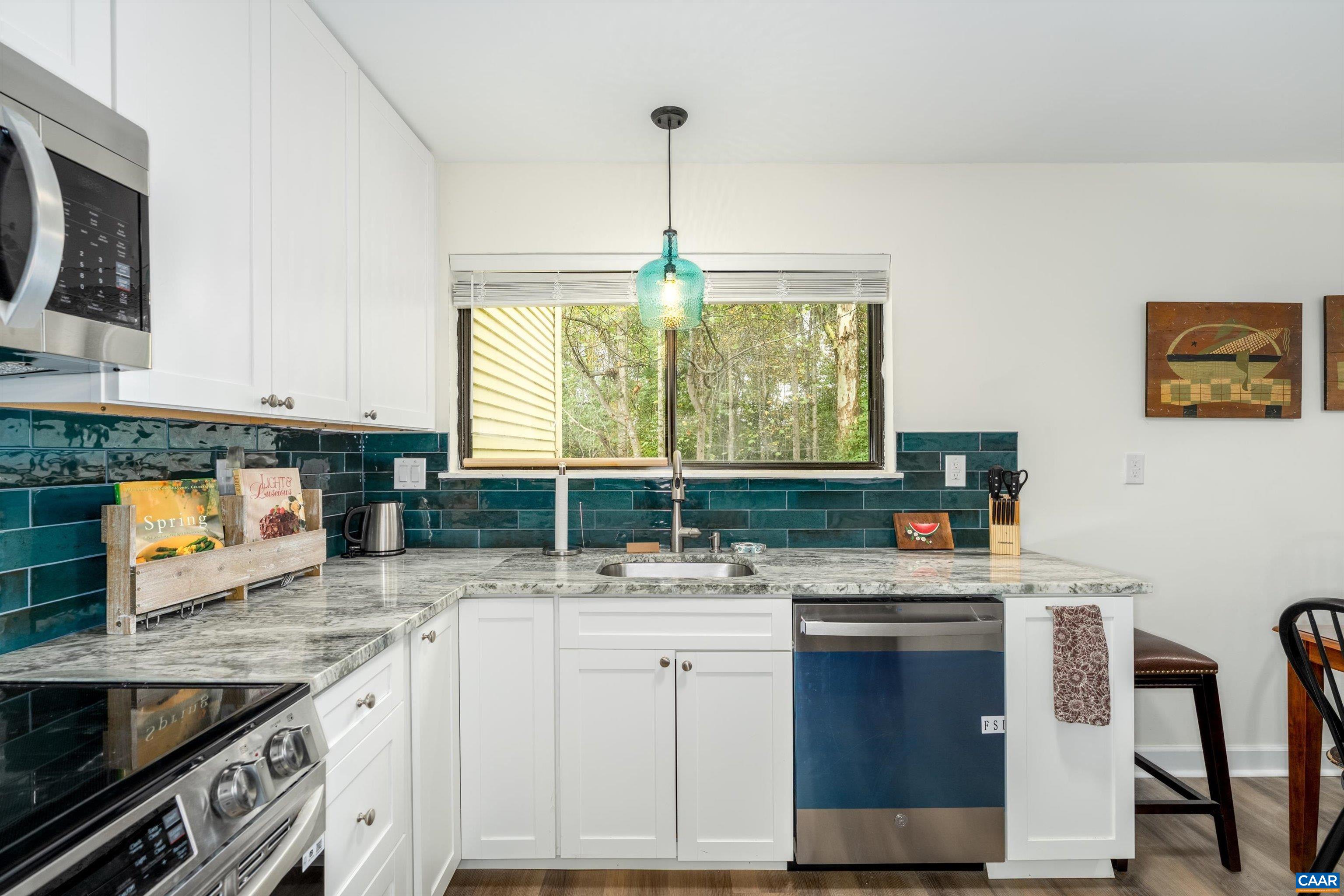 Light filled, awesome, all new completely renovated home in desirable RIVER RUN. A charming place to work from home & relax ! All new everything including luxury vinyl floors with neutral decor, open concept includes a cooks delight kitchen with LG stainless appliances & granite counters, a home office or sitting area off the kitchen by the sliding doors to your cozy deck to enjoy your morning coffee. New ceiling fans with dimmer lights throughout! New wiring at all new electrical outlets and switches. All appliances are 2025 ENERGY STAR. A nice separate utility room is downstairs with storage by the hallway and the two light filled bedrooms. The primary bedroom is very large with a walk in closet. Two gorgeous new bathrooms with new plumbing to enjoy; the hall bathroom is great for guests. 2021 new roof. New 2025 HVAC and water heater. New 2025 smoke detectors throughout. New 2025 insulation materials to keep your electric bills low and for best sound barrier from neighbors. You can easily install a fence with HOA approval for a pet or for privacy. Amazing location being 10 minutes to Route 29, shopping, UVA, PVCC. Pen Park offers tennis & golf. Great rental investment for income. Backs to wooded area for a nice view.