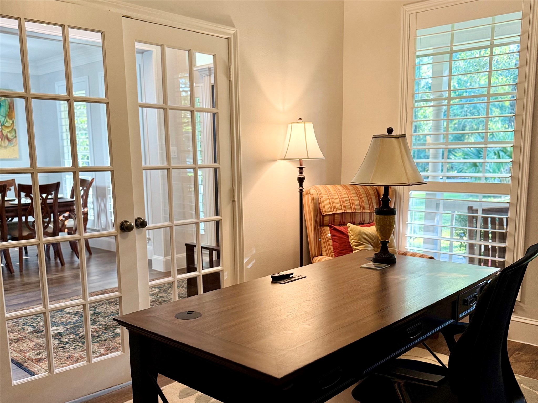 CUSTOM Silverwood Home on ~2 ACRES upgraded to perfection throughout. Waterfall POOL + spa w/new custom enclosure. 3 FIREPLACES! Completely upgraded & reconfigured kitchen w/ new quartz countertops, custom cabinets, oversized island, JennAir range, custom WINE BAR & DEN w/built ins. NO CARPET anywhere—upgraded wood look TILE & LVP. Primary retreat features a SITTING AREA w/ fireplace. Upgraded primary bath w/ its own fireplace + SOAKING TUB plus FLEX SPACE currently used as work out area. Both upstairs bathrooms gutted & upgraded connect 2 bedrooms on each side of GAME ROOM. Whole-home Generac GENERATOR & WATER SOFTNER system, TANKLESS WATER HEATER, upgraded HVAC/plumbing, surveillance cameras, 2-car garage (3rd bay remodeled to enlarge master closet) TEXAS BASEMENT created & outdoor graded outlet. NEW plantation SHUTTERS, steel CASTLE DOOR , light fixtures, attic fans, chandeliers, toilets, paint...the list goes on and on. See attachments. NEVER FLOODED per seller. SEE VIDEO TOUR!