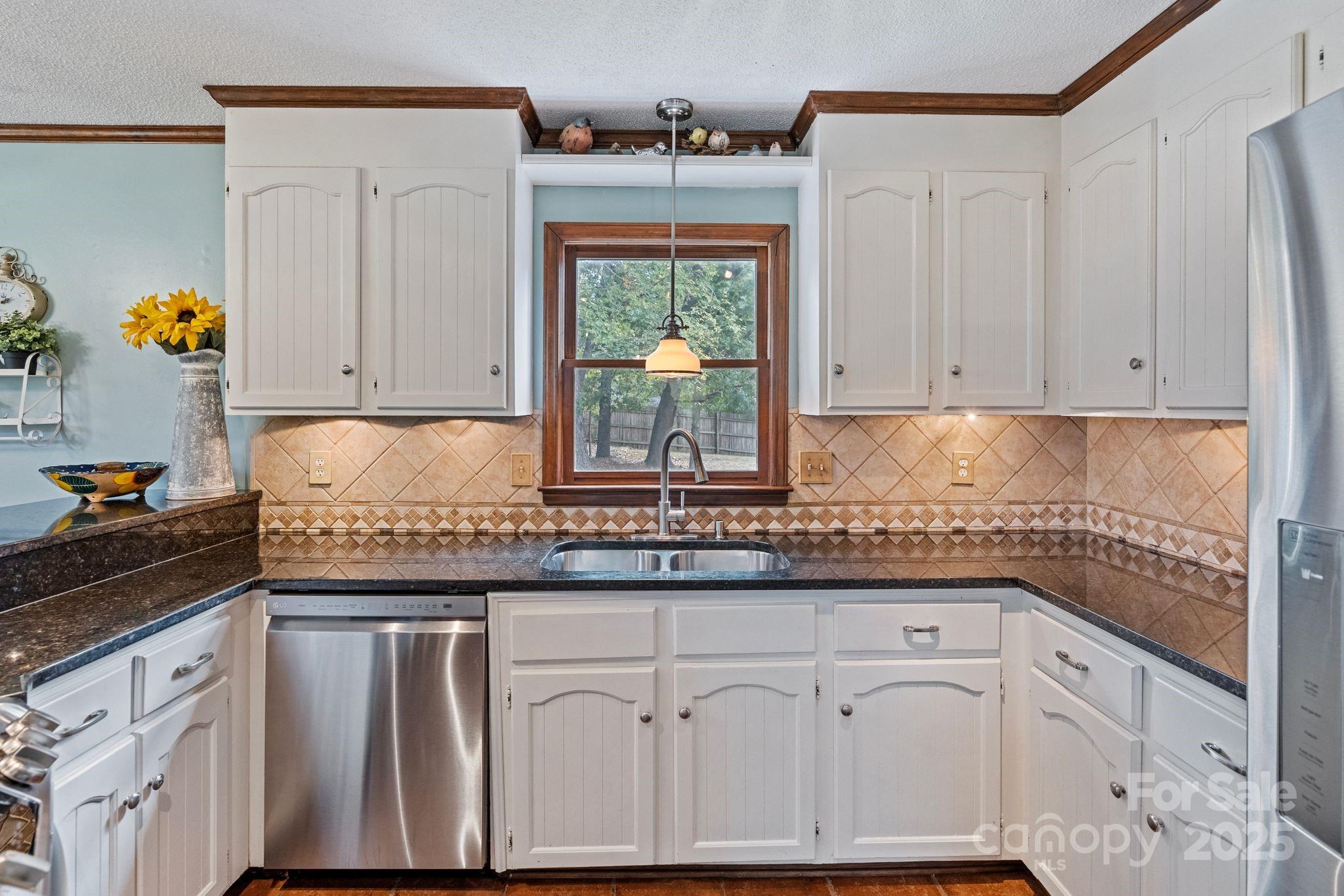 Come home to this lovingly maintained 2-story home on an elevated lot on a pretty street in an attractive neighborhood convenient to I-85 and UNC-Charlotte. Autumnwood homeowners take pride in their neighborhood! You will LOVE the wrap-around porch that covers three fourths of the exterior. Enjoy a beautiful Kitchen with white cabinets, granite countertops, travertine backsplash, under-cabinet lighting, and Pantry. The Kitchen opens up into a 12' by 17' Dining Room that could easily seat 8 people. Start the day off right in the sunny Breakfast bay. Hang out in the spacious 22' by 15' Den with fireplace. Walk or ride your bike on the Toby Creek Greenway - all the way to UNCC! Welcome home!