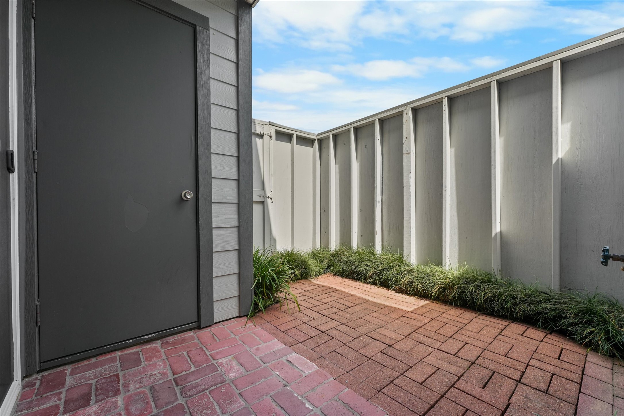 Welcome to your new home! Step out the front door and take in the view of the beautiful pool just steps away. This well-maintained condo offers solar screens on most sliding glass doors and energy-efficient double-paned windows helps to stay cooler during those hot summer days. The kitchen offers excellent storage space, plus additional storage areas on both the front and back patios, as well as extra storage under the stairs. Conveniently located just minutes from Highway 59, the Galleria, and Bellaire, you'll enjoy easy access to shopping, dining, and entertainment. The assigned covered parking spot is located right outside the back gate for added convenience. A new front fence installation is set to begin on Monday, October 13, 2025. Appliances including the kitchen refrigerator, washer, and dryer are all included. Room dimensions are approximate, and school information should be verified.