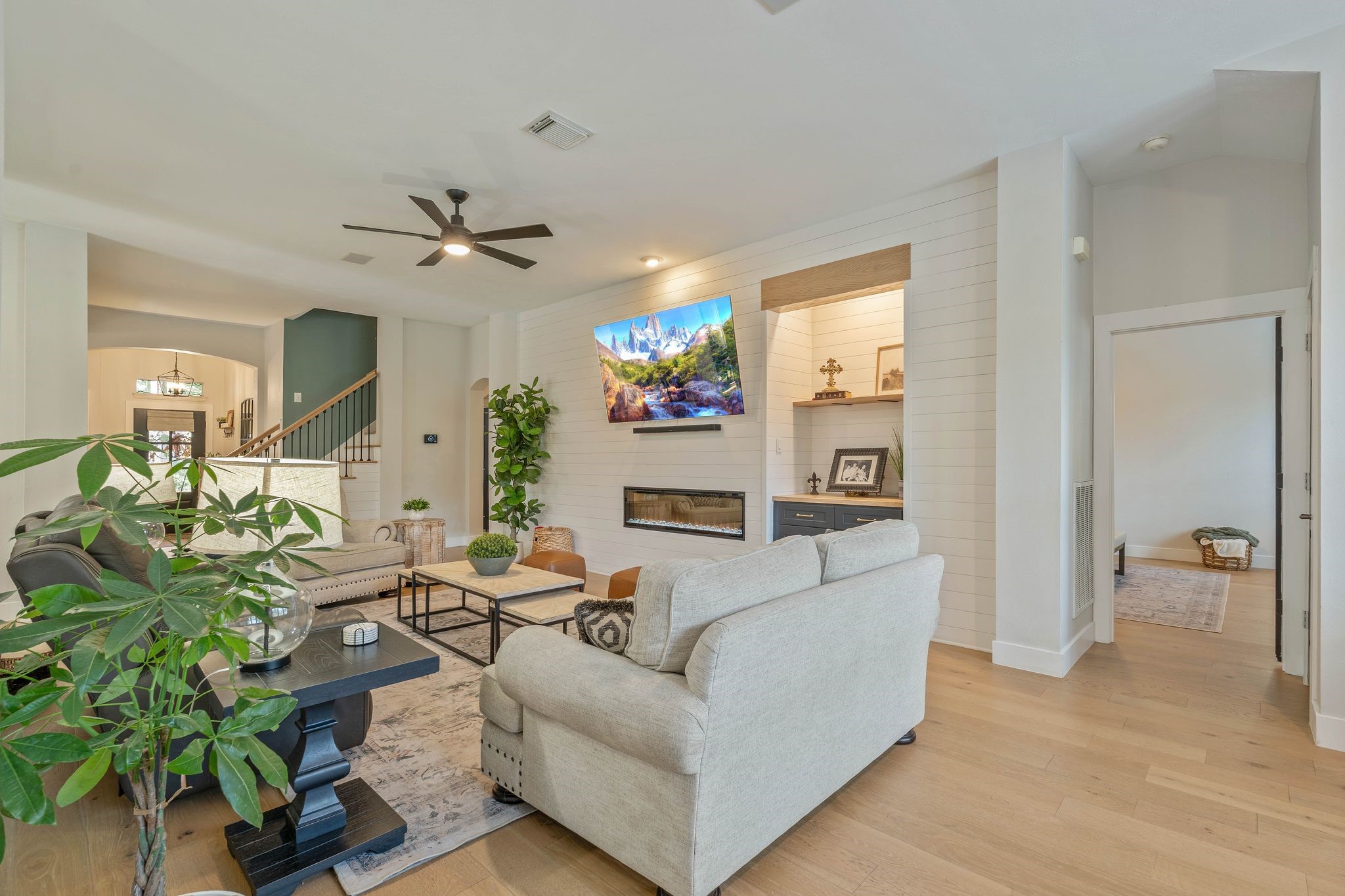 Fall in love with this amazing Carriage Hills property! On nearly half an acre, this property feels like home with 4- 1st floor bedrooms. Upon entering you will find vaulted ceilings and open floorpan that is great for entertaining, get togethers, holidays, parties, etc. The kitchen is all set for the chef of the family! Backyard is a haven - great for relaxing while enjoying the pool, listening to the birds, watching the wildlife and roasting marshmallows on the fire pit! This home has an abundance of upgrades- new flooring throughout the first level, new carpet upstairs, hardwood on stairs, new interior paint and accent walls, electric fireplace, shiplap wall, updated secondary and 1/2 bath, updated lighting & ceiling fans, wrought iron back yard rear fence, stone walk and fire pit, 2018 roof, HVAC, H2O heater. Close proximity to mall, shopping, medical, hospitals, I-45. You feel like you’re in the middle of the country, yet you’re in the middle of everything!