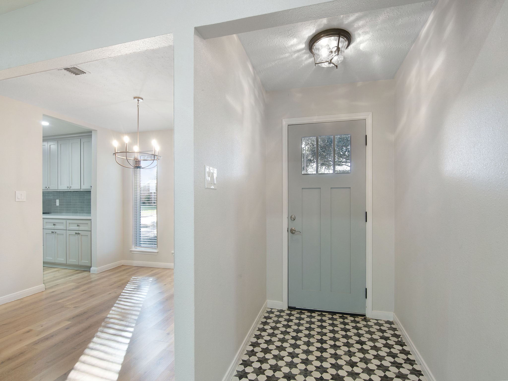 Beautiful 3 bedroom 2 bath renovated home in great neighborhood. From the moment you walk in the front door you will notice the new eye catching floor tiles. Open dining/living room with al fireplace to add to the feeling of comfort. The kitchen has new appliances, custom cabinets, Quartzite countertops, a pantry was added for extra storage and styling new backsplash. Primary Bathroom includes double sinks and Large tile shower. You will notice the extra detail taken during renovation including the crown molding, LED recessed lighting added in living room and all new lighting fixtures. This home has the added peace of mind with new double pane low E glass windows throughout. New 30 year composite roof. There is also a workshop or extra storage attached to the garage.