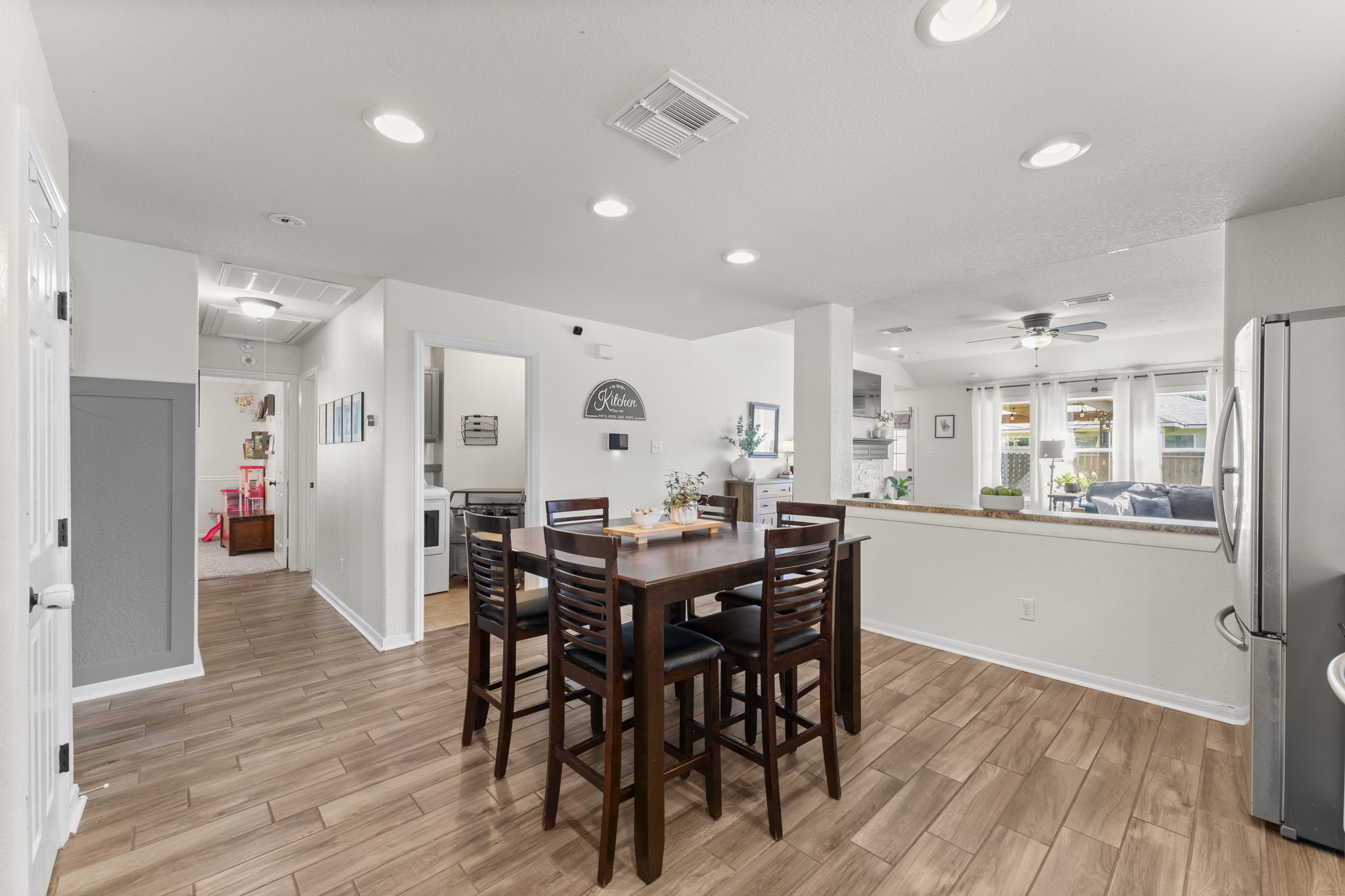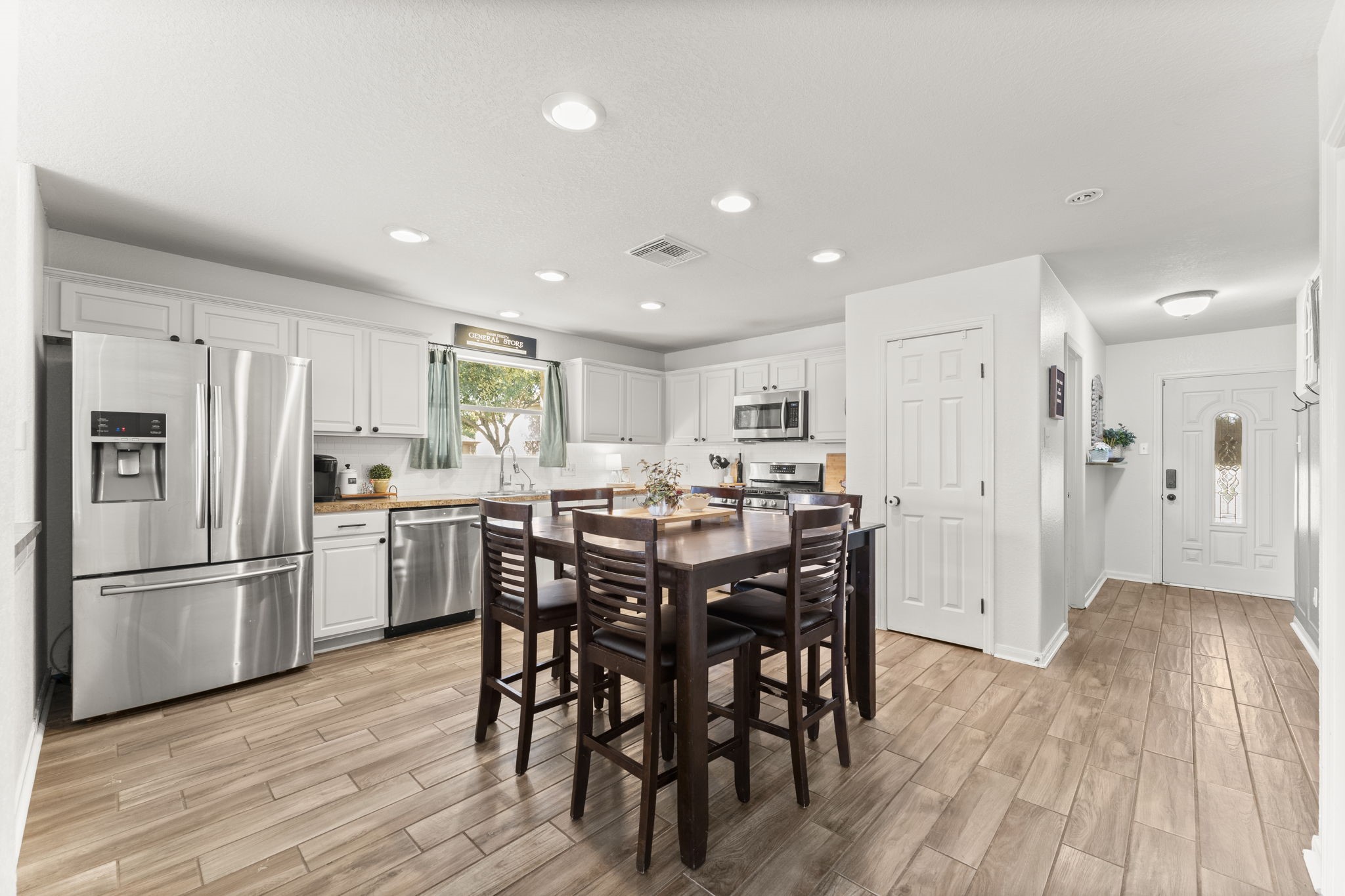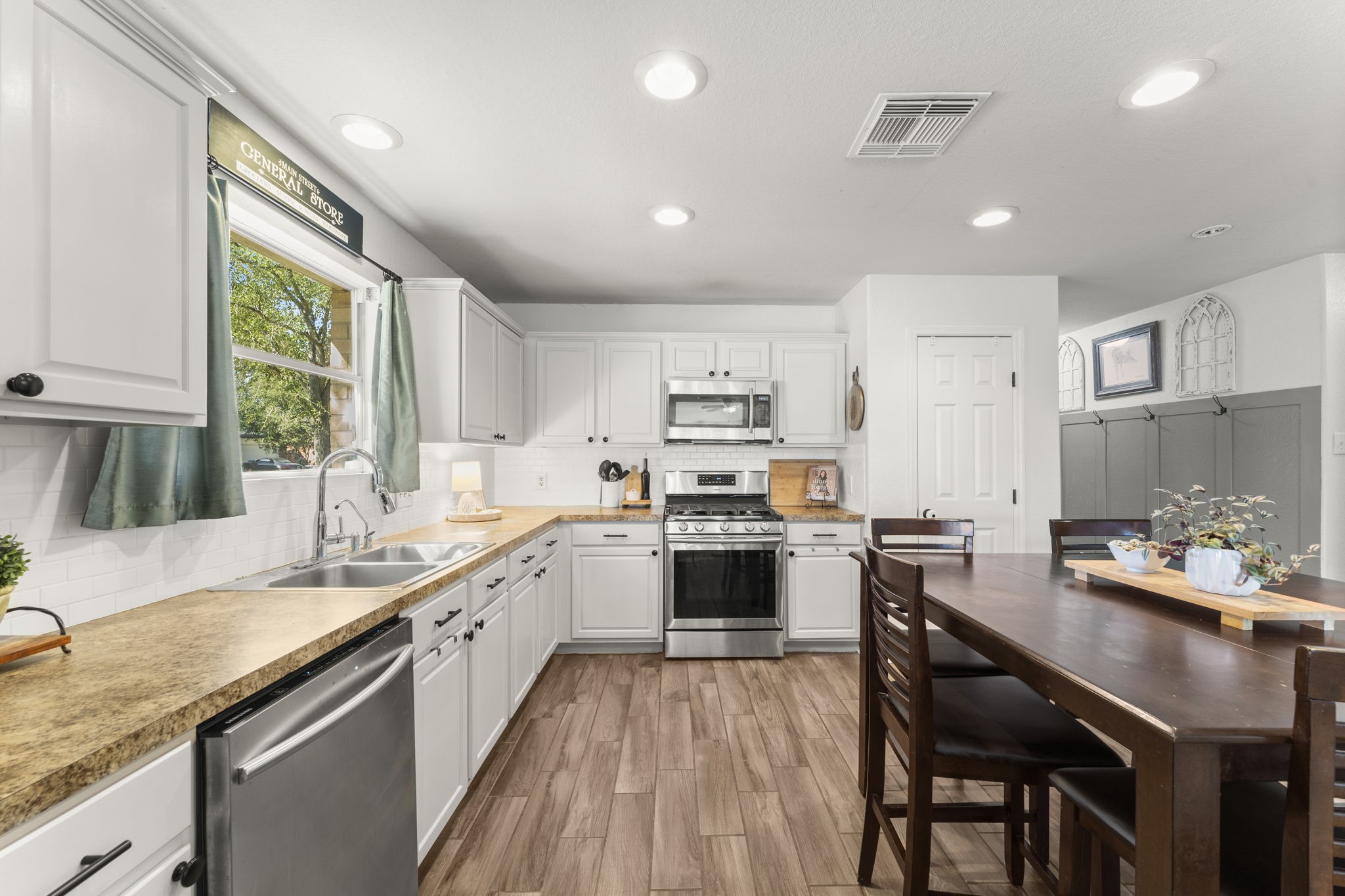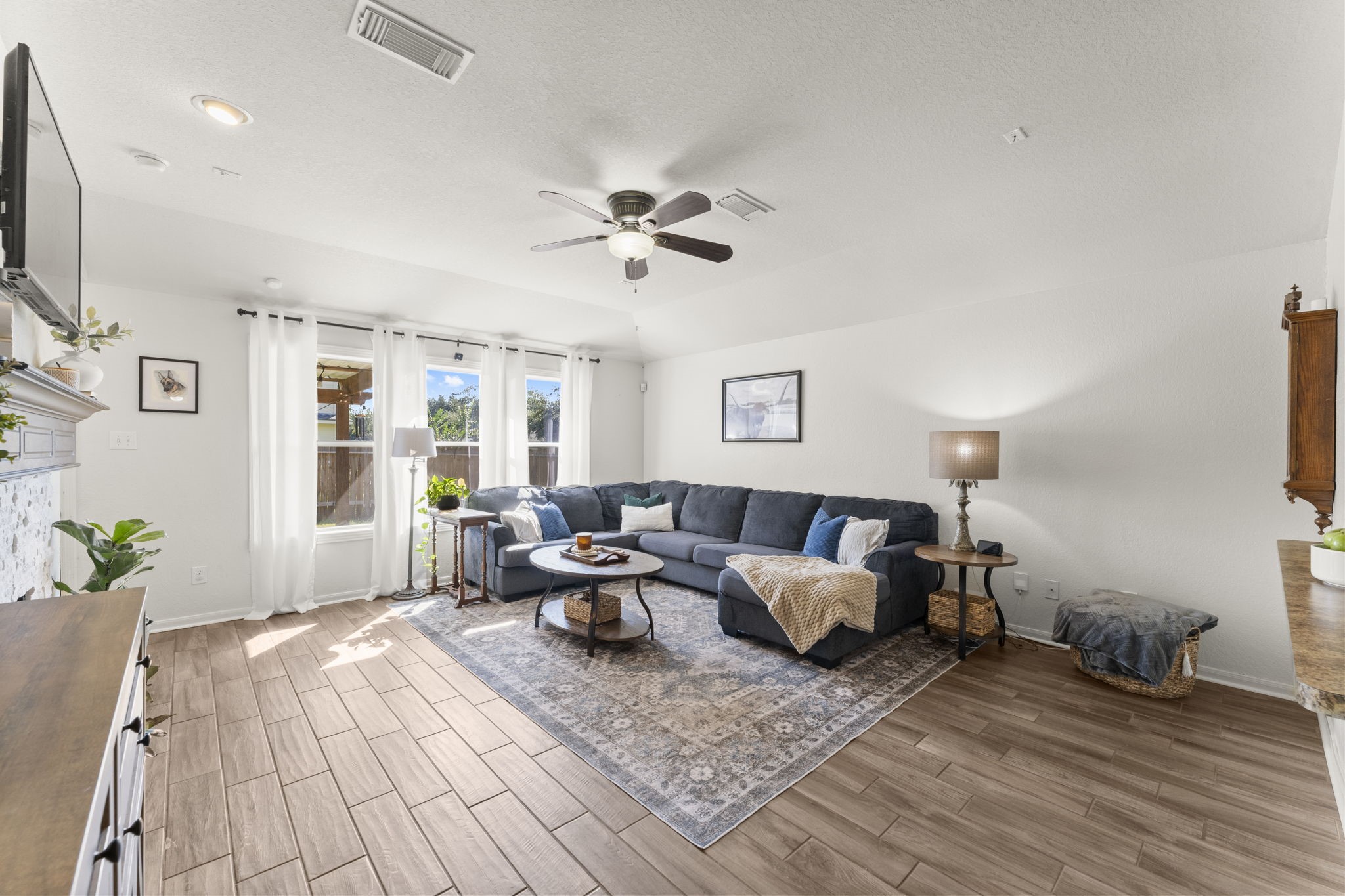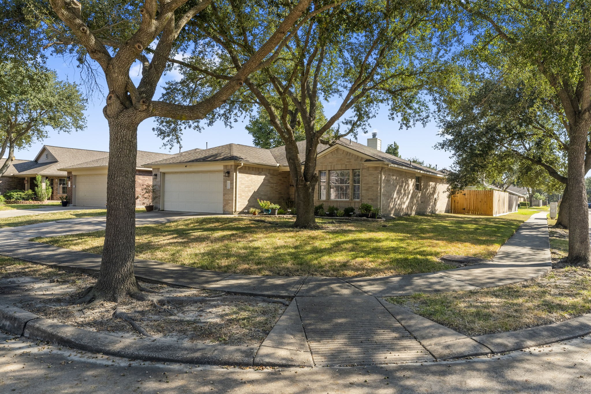 Lovely 4-bedroom 2-bath home located on a corner lot on a cul-de-sac street. This charming home boasts a split bedroom floor plan. As you enter, you'll be welcomed by wainscoting details in the entryway, complete with hooks for backpacks or purses. The large kitchen, featuring ample counter space, opens to the family room, which includes an updated gas log fireplace. The living areas, kitchen, & entryway are all finished with wood-like tile. The primary suite is spacious and includes a fantastic updated primary bath with quartz countertops, dual sinks, & a large double shower. The secondary bedrooms are also generously sized with good closet space. The backyard is ideal for entertaining, offering a covered patio and a new fence installed in 2024. The home is conveniently located close to shopping and dining. Zoned to Cy-Fair schools.