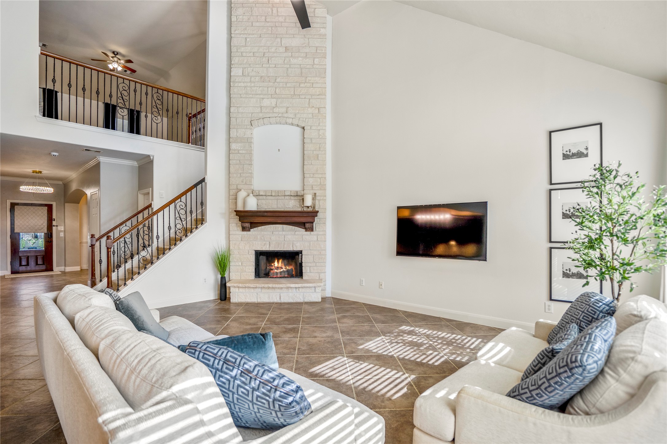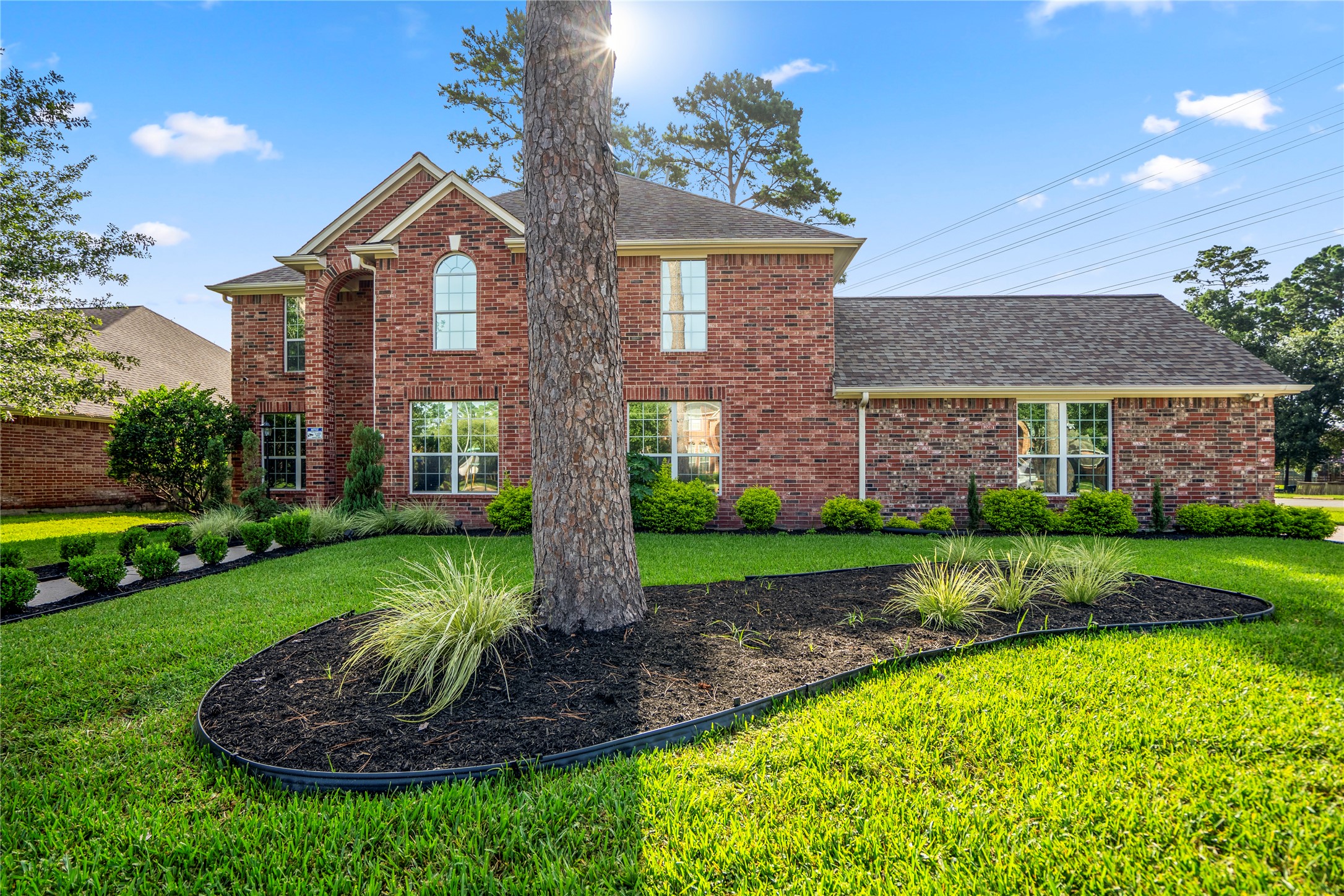 Charming & fully renovated home in the highly sought-after Lakewood Grove community in Tomball. This beautifully updated brick home offers fresh paint, new light fixtures, updated kitchen cabinets, & a luxurious primary bath with quartz countertops, new vanity, mood lighting, & a large spa-style shower. Soaring ceilings & tons of natural light create an inviting feel. Downstairs features a dedicated study, formal dining, while upstairs includes a spacious game room & media room wired for a projector. The secondary bath has a new vanity, & smart toilets are installed throughout. Additional highlights: whole-home generator, water filteration system, brand-new microwave, & a premium lot with no side neighbors. Garage is fully insulated with AC, epoxy floors, & a split garage door—perfect as a workshop, hangout space, or park up to 4 cars. Zoned to Tomball ISD with easy access to Hwy 249. Enjoy community amenities like a pool, clubhouse, parks, tennis courts, trails, & events.