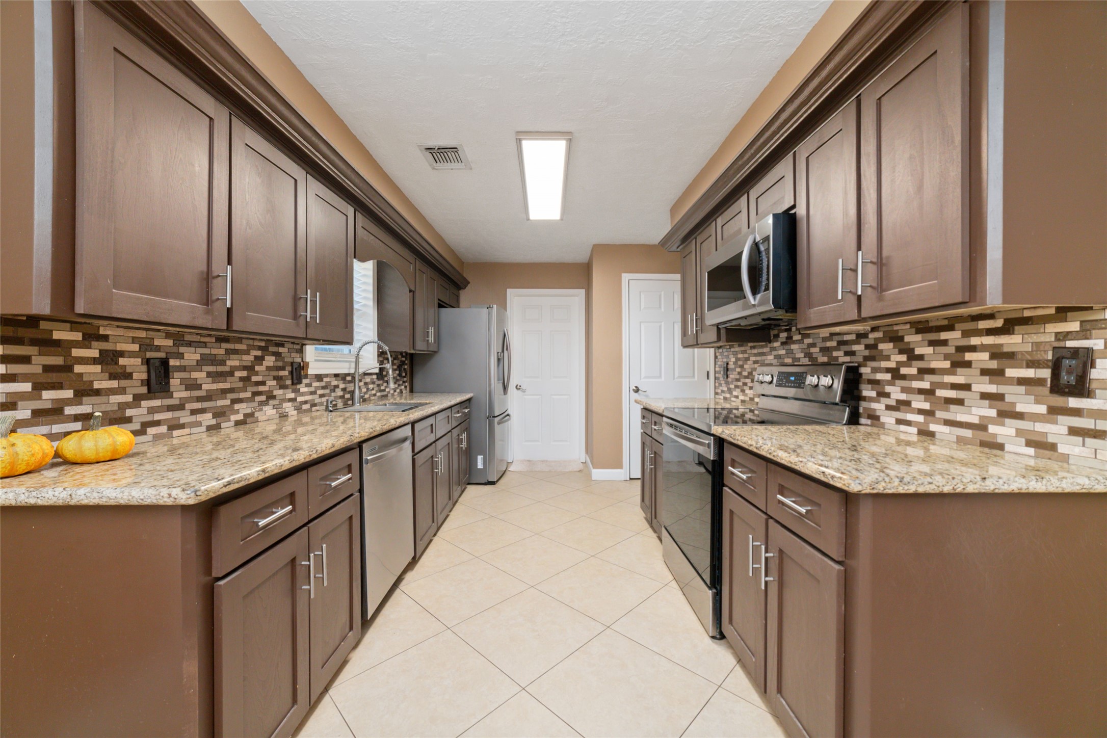 ** NEVER FLOODED** Welcome to this charming, one-story home, nestled in the heart of Bear Creek. Updated for comfort and style, this home features beautiful all-tile and luxury vinyl flooring throughout—no carpet anywhere! The kitchen boasts elegant granite countertops paired with painted cabinets, offering both function and cosmetic appeal. A scenic atrium fills the interior with natural light, creating a peaceful indoor-outdoor oasis, bringing nature home! Unwind by the cozy fireplace in the spacious living area with soaring vaulted ceilings, perfect for relaxing. Step outside to find a large covered back porch, ready for entertaining and enjoying the fresh air. Major items have been updated from roof, HVAC, siding, and even windows. Be ready for anything in your new home, from hosting guests to enjoying quiet evenings at home; this property has everything you need to live comfortably. Don't forget the pools and tennis courts, ready for your enjoyment! Come and make it yours today!