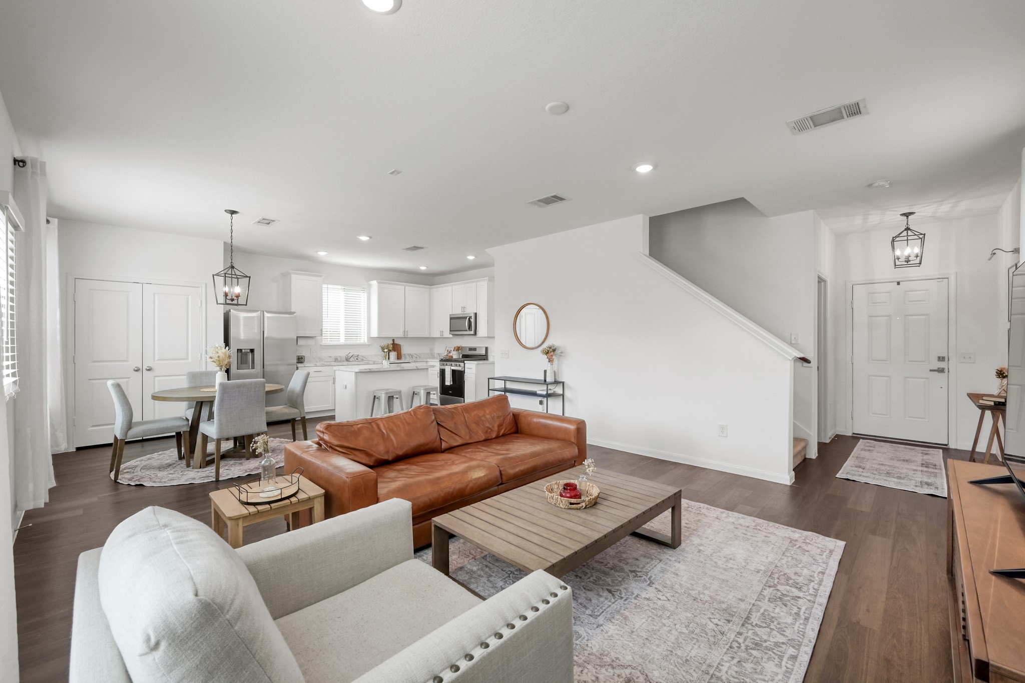 Make your holidays extra special with a new home! Priced to SELL quickly! Step into refined living at 16415 BIG HICKORY DRIVE, an impeccably maintained, nearly new home that blends modern elegance with thoughtful design. WASHER & DRYER are now INCLUDED! Built less than 3 years ago, this stunning residence offers all the benefits of new construction without the wait! Pristine finishes, upgraded features, and a move-in ready presentation that feels straight out of a designer showcase. This home has over $1000 in Smart-home UPGRADES that can be conveniently controlled from Apps: Rachio Smart Sprinklers, Ring Security, and MyQ Garage Door! This designer kitchen is a showstopper with sleek white cabinetry, beautiful countertops, stainless steel appliances, and a convenient island perfect for entertaining. The primary suite is a modern private retreat with a board & batten accent wall. Upgraded lighting throughout! Outdoor living is just as impressive with a HUGE manicured backyard!