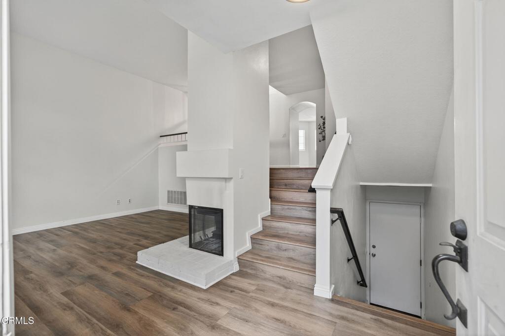Welcome to this multi-level townhome in a prime Ventura location! This 2-bedroom, 2.5-bath home offers 1,463 SqFt of versatile living space and great community amenities.The living room features high ceilings, a cozy fireplace, and access to a private enclosed front porch. Just above, the dining area can also be used as an office or family room, with a convenient half bath for guests. The spacious kitchen includes an island, generous counter and cabinet space, and an open area ideal for a breakfast nook, coffee bar, or lounge space.Upstairs, both bedrooms offer high ceilings, ample closet space, and their own en-suite bathrooms filled with natural light. Additional highlights include a 2-car garage with direct access, HOA-completed roof and exterior painting, and community amenities including pool, spa, tennis courts, plus water included in dues.See this fantastic Ventura home today!