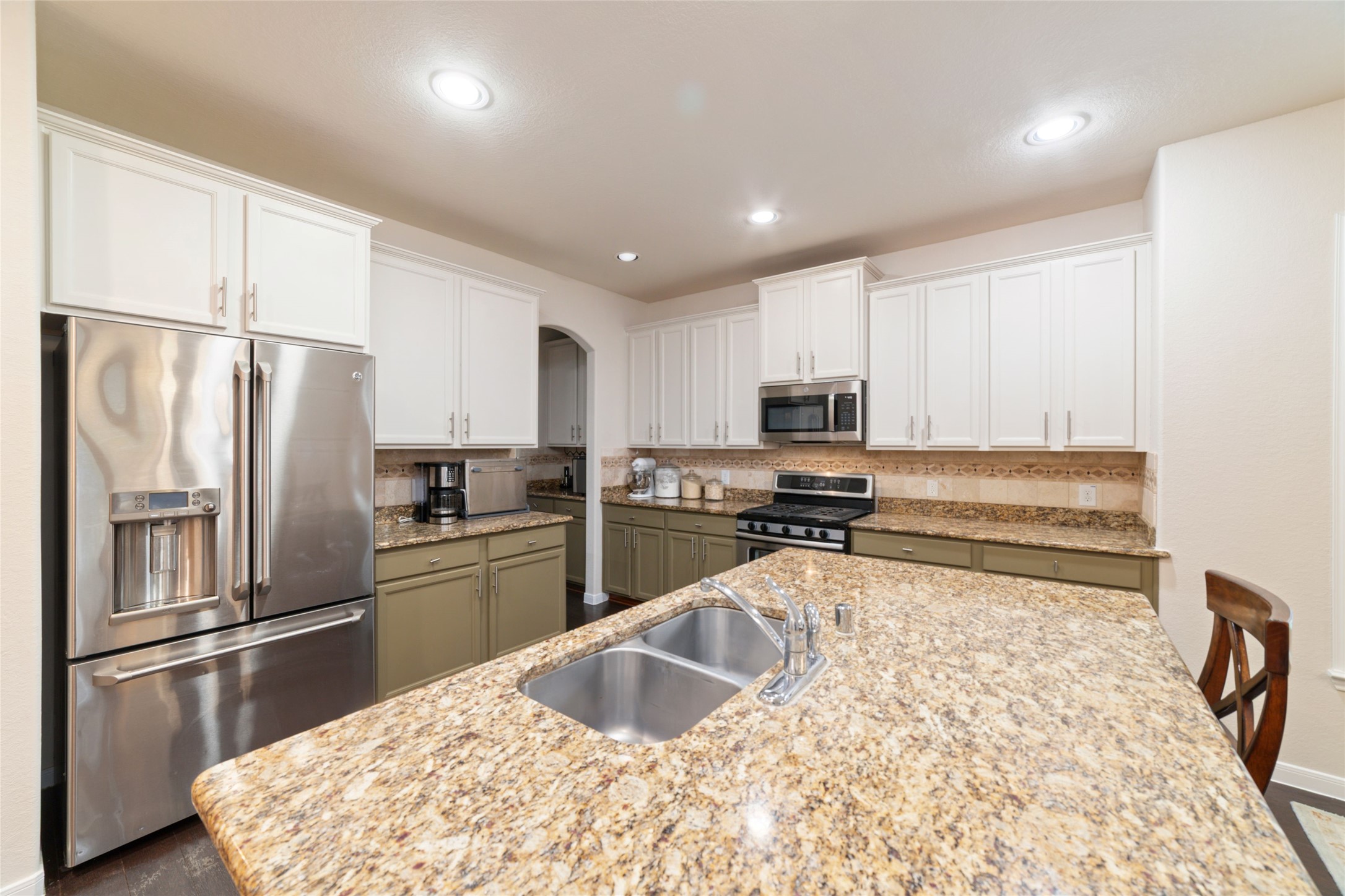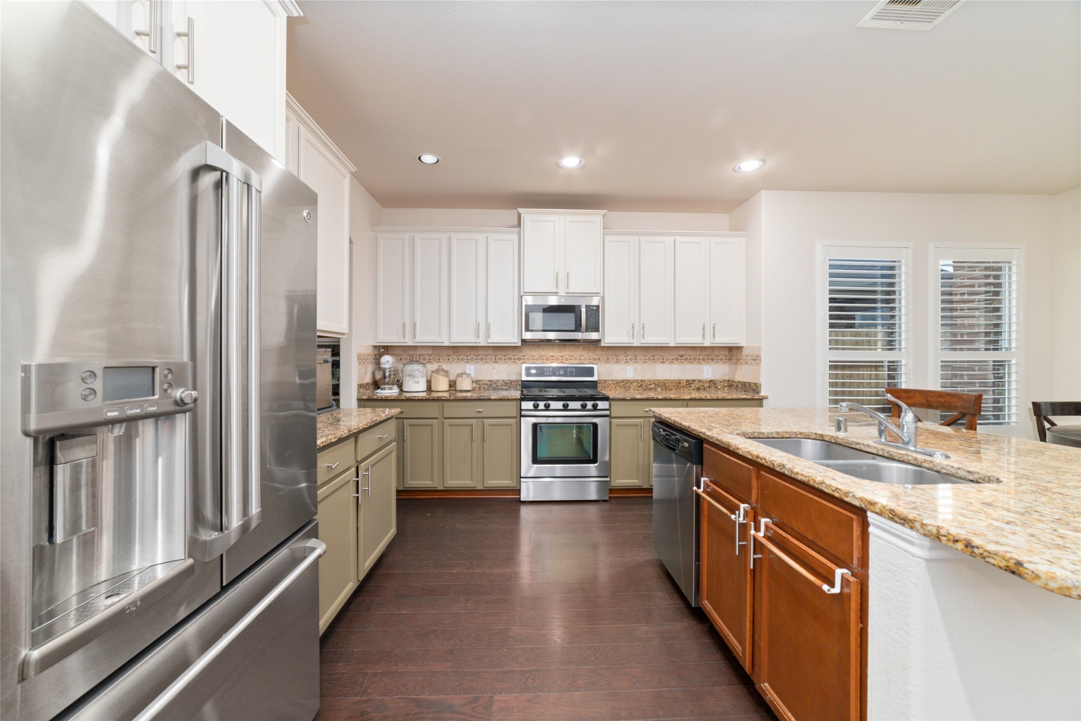 Gorgeous home located in the fabulous King Lakes community! Amazing brick & stone elevation! Entering this home you're greeted w rich wood look flooring, double glass french doors leading to your private office, elegant formal dining area perfect for entertaining your friends & family, coffee bar heading into your kitchen from your formal dining room, nice open concept w your kitchen looking out to your breakfast & living room area, tray ceilings in the living room w beautiful molding, gas log fireplace so cozy for those chilly evenings, huge covered patio area perfect for family cookouts, huge primary bedroom w bay window for extra space, primary bathroom w two separate vanities & 2 walk in closets, second bathroom w double sink vanity, huge game room upstairs that could also be a 4th bedroom, shutters on most window for that wow factor, new carpet just installed before listing. Zoned to highly rated Katy ISD schools. This won't last long!