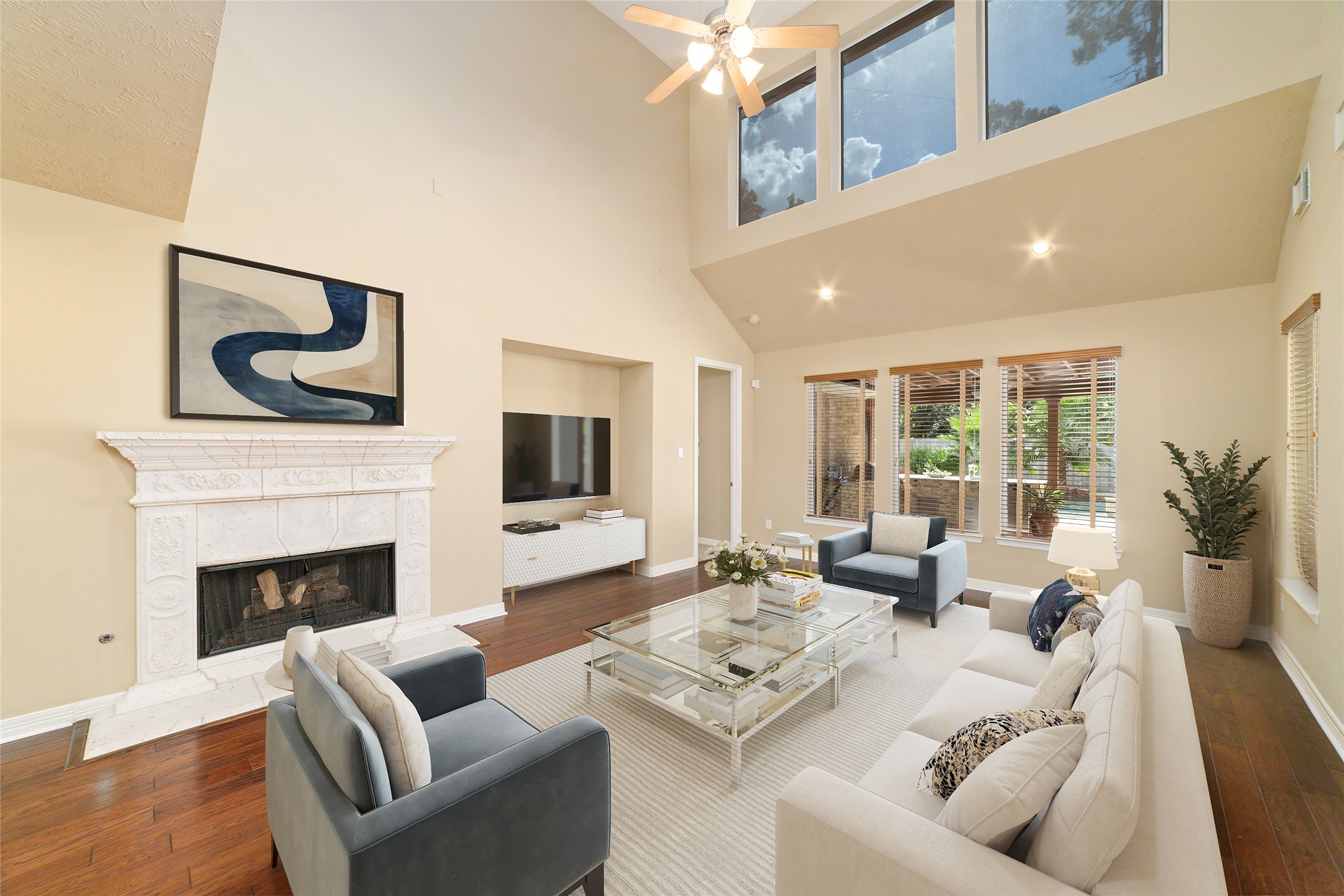 Welcome home to this gorgeous 4 bedroom/3.5 bathroom w/ a beautiful backyard oasis! Situated on a 1/2 ac lot, you enter thru a gated driveway & you'll enjoy the true 3 car garage. The first floor offers a home office, dining room and the heart of the home is the large living room which boasts a stately stone fireplace. The gourmet kitchen features SS appliances, granite countertops, abundant storage/workspace & a huge pantry. The kitchen has exterior access to the porte cochere. The owner's retreat features a cozy sitting area w/ 2nd gas FP & views of the backyard oasis. The dreamy & spacious primary bathroom offers a separate glass shower, soaking tub, dual sinks & a large walk-in closets w/ org. systems. Upstairs you'll find a large gameroom and/or media rm, a dual study/desk area, along with 3 spacious bedrooms & 2 bathrooms. The backyard is an entertainer's dream - sparkling pool w/ waterfall features, bubblers, a large covered patio and a fantastic outdoor kitchen! 2 yr old roof.