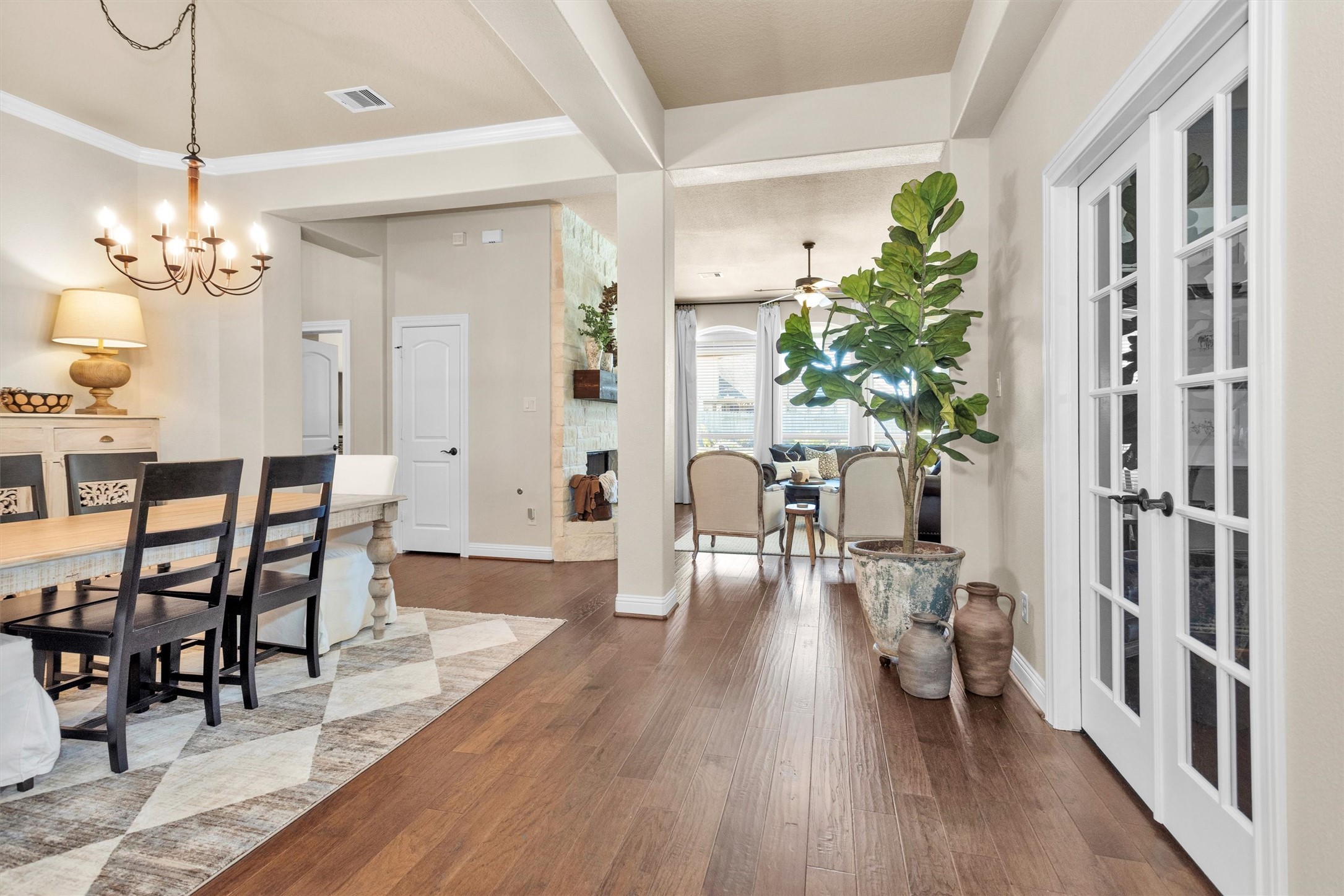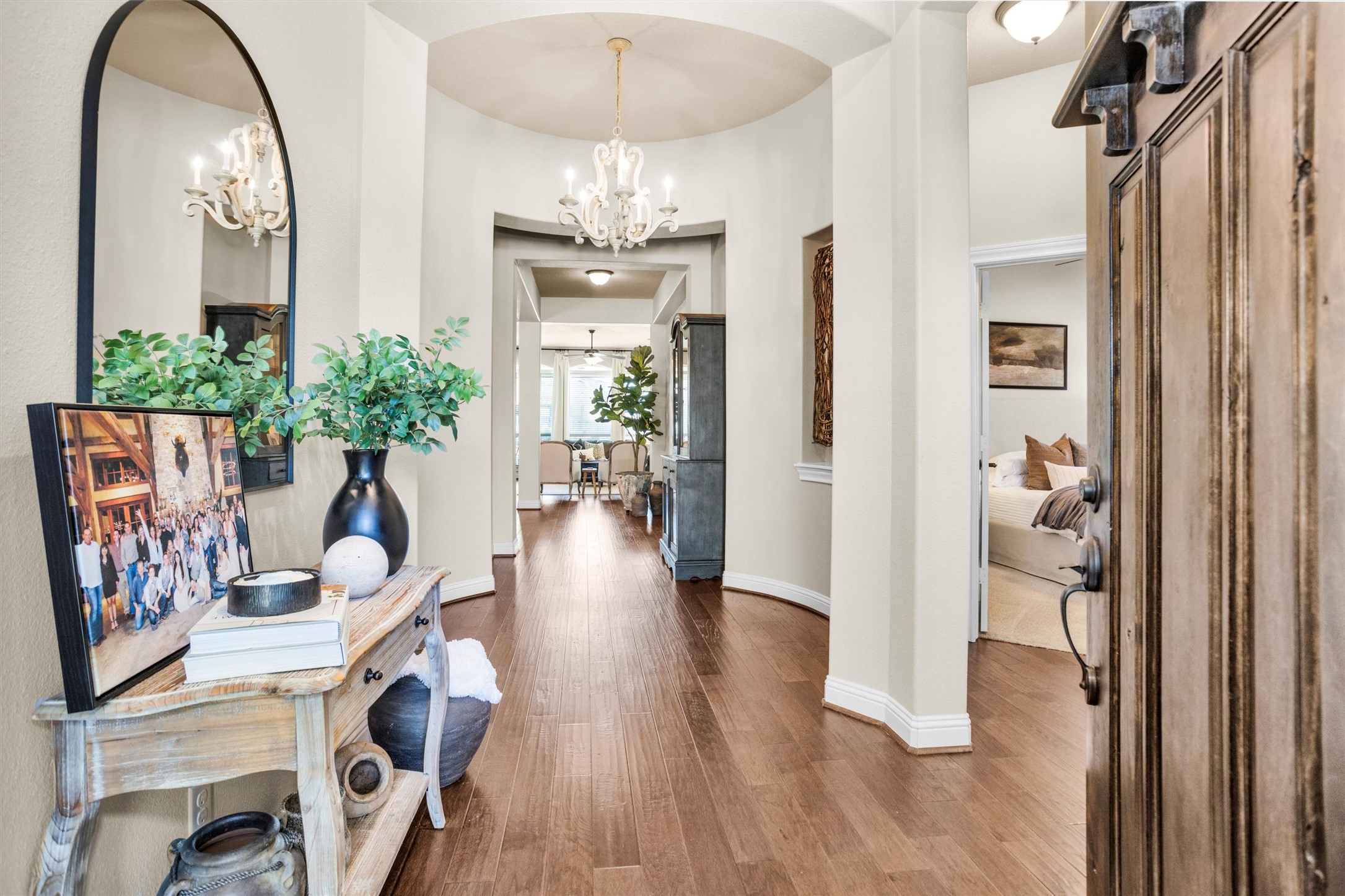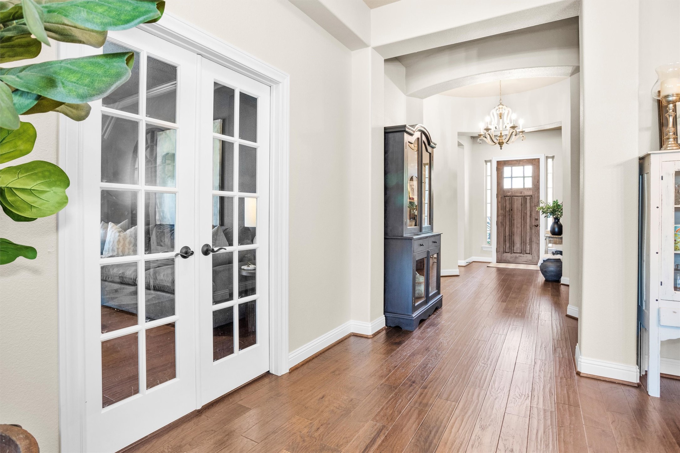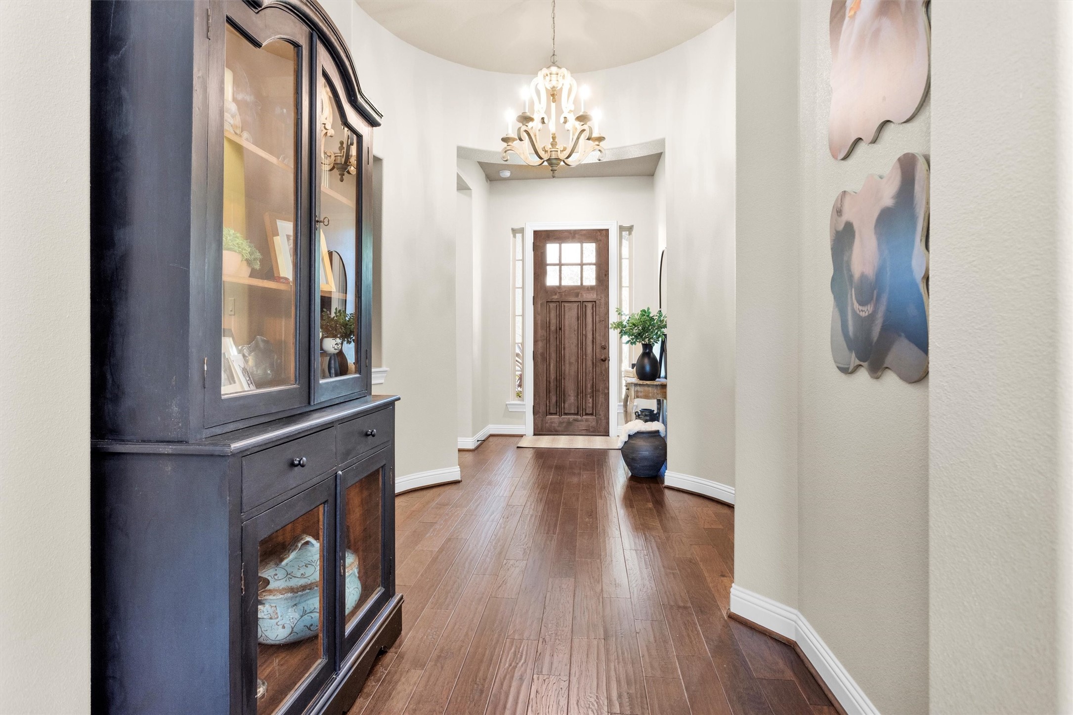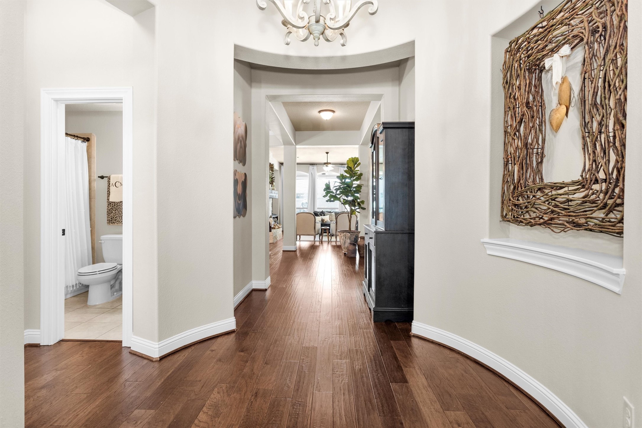 Welcome to this beautifully appointed, one-of-a-kind 1 story home in the highly sought-after Laurel Park community. With impeccable design, this Hill Country inspired home perfectly balances comfort, style & modern functionality. Light-filled, open-concept layout boasts high ceilings, custom finishes with warm hardwood floors throughout. The gourmet kitchen features granite countertops, travertine backsplash, a large island & ample storage. The primary suite offers an extended bay window & a luxurious ensuite features dual vanities, a soaking tub, vanity & a huge walk-in shower! Includes a flexspace that can be used as private study or TV/gameroom. 3 additional bedrooms provides plenty of space for family & guests. The real showstopper is the beautiful backyard featuring lush landscape, sparkling pool, covered patio & separate sitting area with fireplace-ideal for relaxing or entertaining during those warm Texas days & chilly nights. Near shops, restaurants & zoned to KleinISD!
