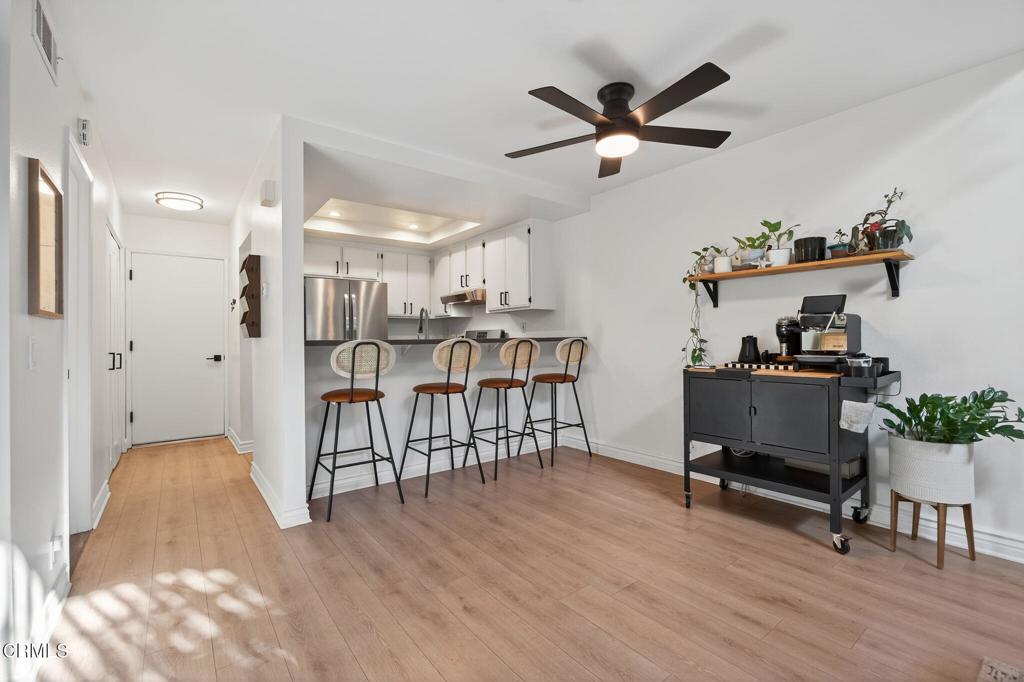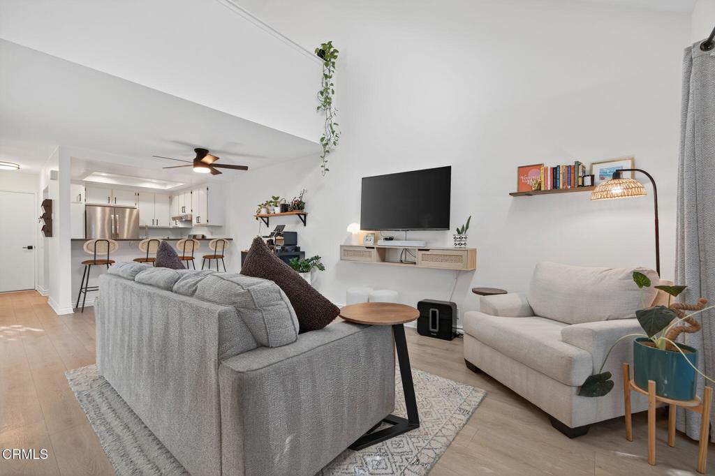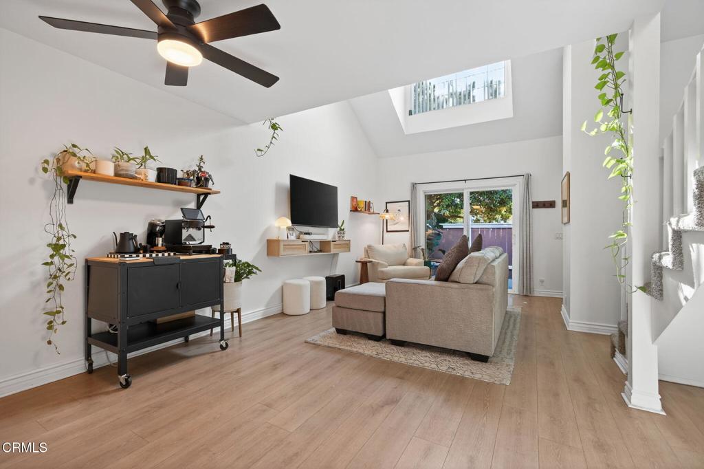 Welcome to this charming and move-in-ready townhome located in the desirable Nantucket Village community; a small, well-maintained complex that's FHA and VA approved. Perfect for a first-time buyer, single professional, or young couple starting their journey, this inviting unit offers a smart layout, modern upgrades, and a convenient location close to everything Ventura has to offer. Step inside to find a bright and open first floor featuring a spacious family room and dining area with vaulted ceilings, creating an airy sense of space. The updated kitchen boasts recessed lighting, painted cabinetry with modern hardware, and stainless steel appliances. A remodeled half bath and laundry closet add functionality and style, while the private patio off the living area is ideal for relaxing or entertaining. Upstairs, you'll find a generously sized bedroom with a walk-in closet and a beautifully remodeled bathroom showcasing custom tile work, a white shaker vanity with soft-close door and drawers, and a sleek quartz countertop. Additional highlights include vinyl plank flooring on the main level, carpet upstairs, a dual-pane sliding door, brand-new water heater, and a private two-car garage. The HOA covers water, trash, sewer, insurance, exterior maintenance, and landscaping, and provides access to the community pool and spa. Perfectly situated within walking distance to shopping, parks, and schools, and only minutes from Ventura's beaches, marinas, and historic downtown, this home also provides easy access to the 126, 101, and 118 freeways; a commuter's dream.