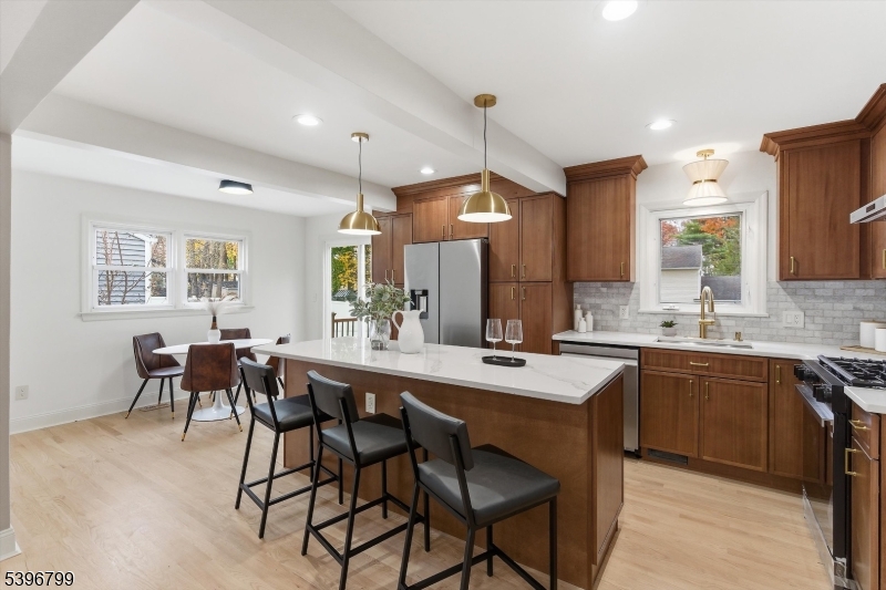 Completely reimagined from top to bottom, this oversized Cape offers a blend of modern design & architectural balance. Step into the slate-tile foyer, where your eye is immediately drawn straight through the home to the sliding glass doors just beyond the kitchen. The main living area feels open and airy while keeping each rooms sense of purpose and natural flow. At the heart of the home sits a chef's kitchen that combines style and function with top-tier appliances, wine fridge, built-in microwave, & breakfast nook overlooking the Trex deck & fenced backyard. Two bedrooms with custom closets, a full bath, & a convenient laundry room complete the main level. The partially finished walk-out basement expands the living space even further, featuring a full bath & direct outdoor access. Upstairs, the primary suite is a showpiece in itself, offering 4 closets, with a custom closet/walk-in dressing area, a spa-inspired en suite with a soaking tub & stall shower. Every major component has been renewed, giving you assurance of a full renovation paired with the warmth & charm of a timeless home. Down the street from Liberty Middle & just 1 mile from Crestmont Country Club, offering a highly desirable setting. NJ Transit Bus #71 to NYC is right at the corner, walking distance to Mt. Pleasant Elem. & local houses of worship. 30-minute drive to NYC, or take the West Orange jitney located just 1 mile away, which connects to the train and gets you into Manhattan in under an hour.
