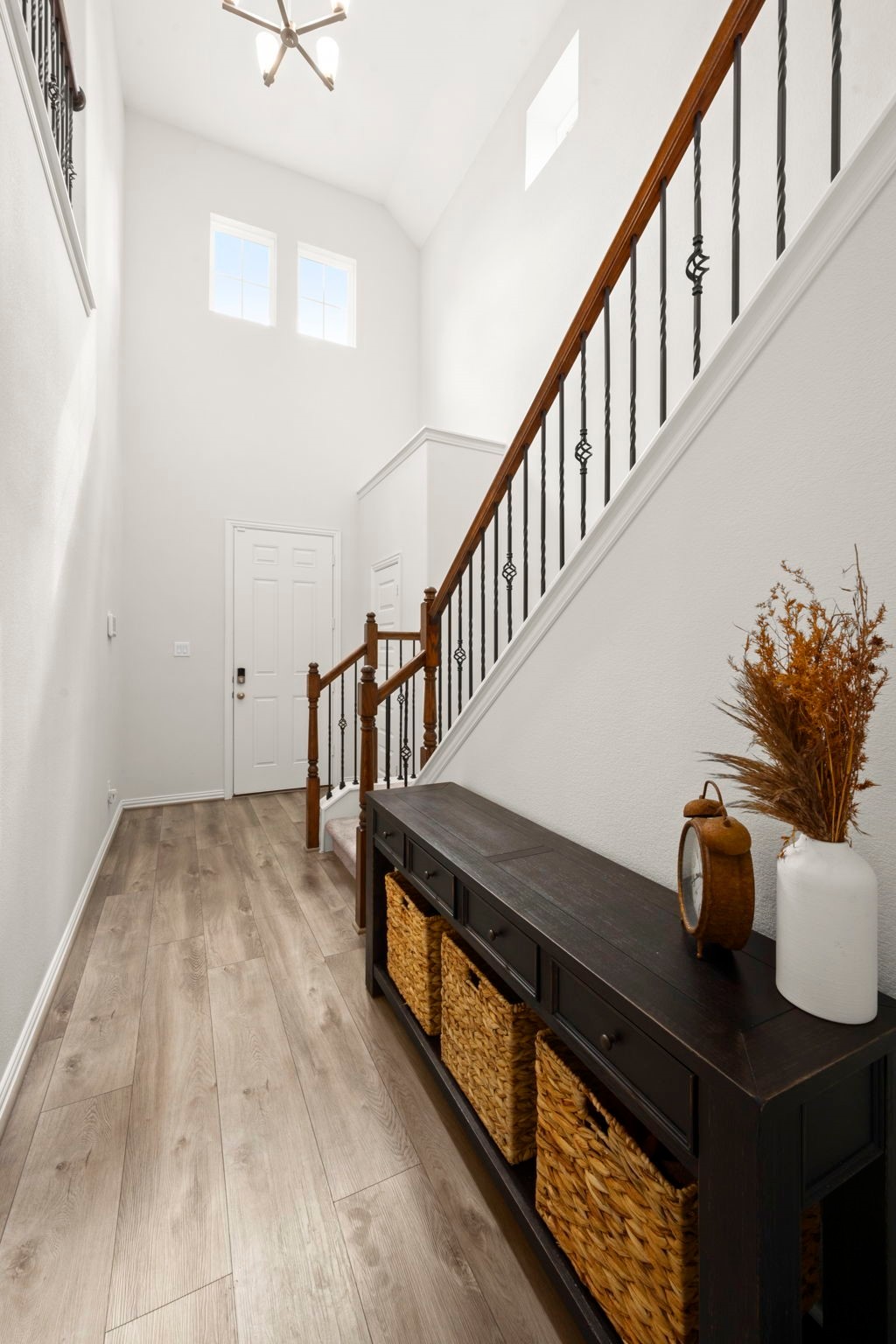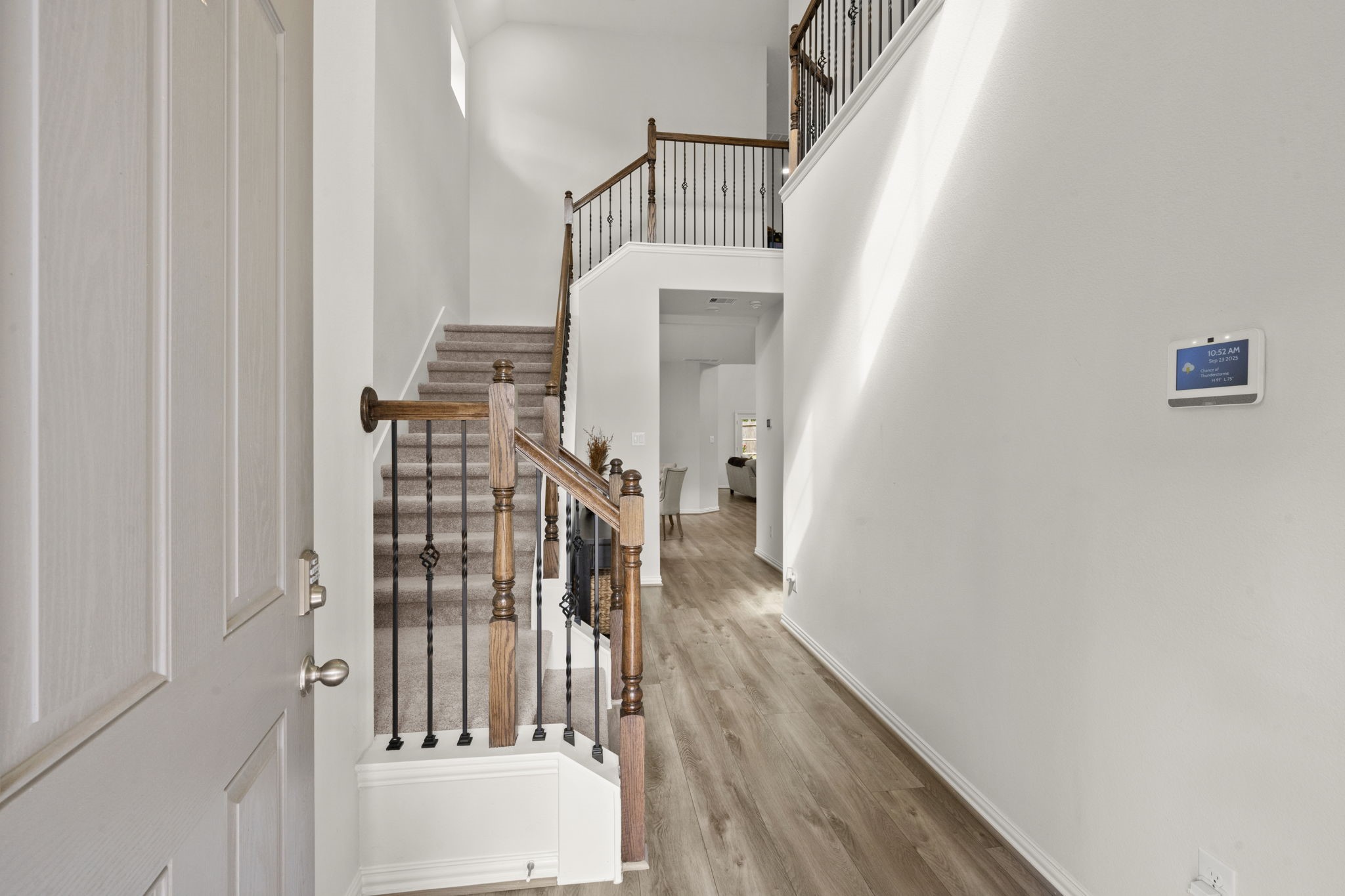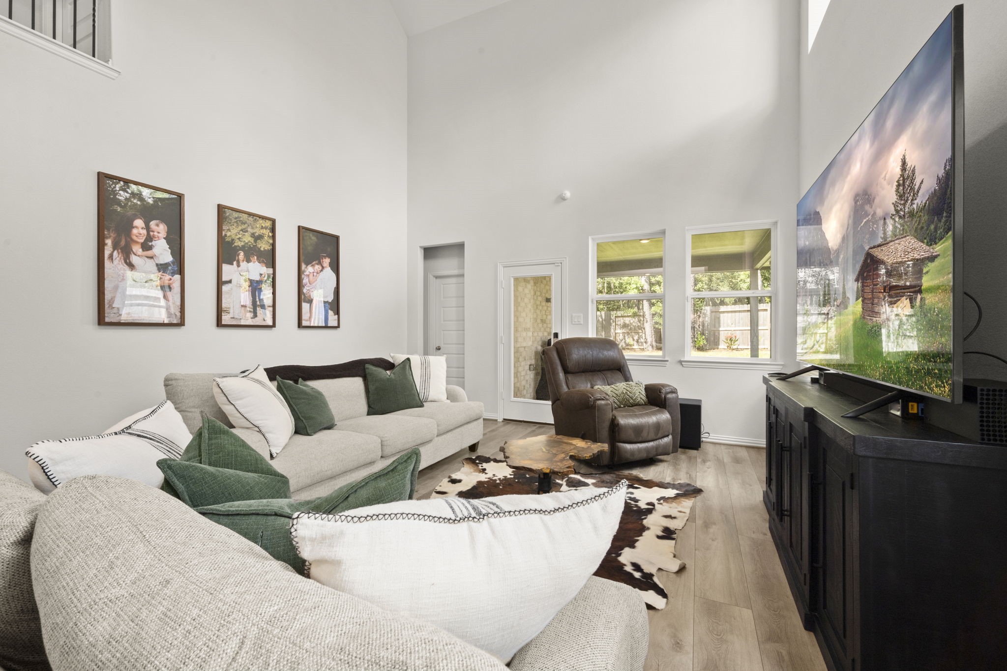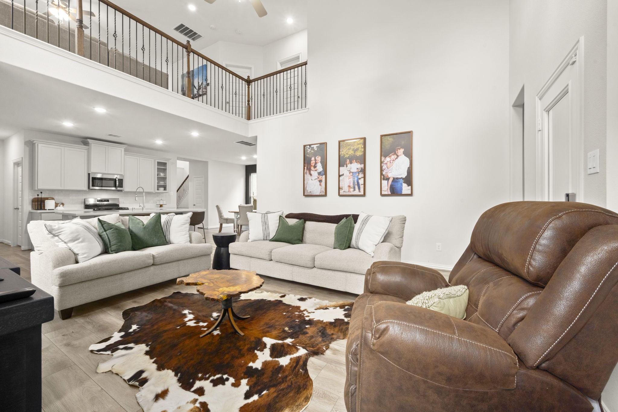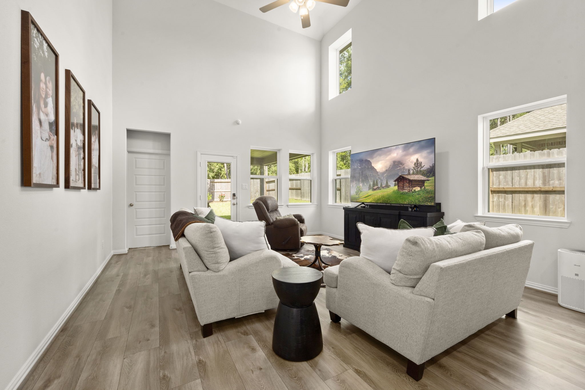 Welcome to this stunning 4 bed 3 bath Brightland home nestled in a quiet cul de sac within The Woodland Hills community. This Wayfinder plan has 4 bedrooms, a HUGE game room, and 3.5 bathrooms, plus TALL ceilings in the formal entry and living room. The large kitchen is big and bright with Quartz countertops, beautiful cabinets, and designer features. The Owners bath offers a large walk-in shower with ceramic tile flooring, double vanities and a customized walk-in closet for all of your fashion needs. Flooring throughout the common areas is wide plank vinyl flooring with tile in the bathrooms.. You will love The Woodland Hills resort community with activities for everyone. Enjoy the three pools, tennis courts, 6 parks, walking and hiking trails and so much more!