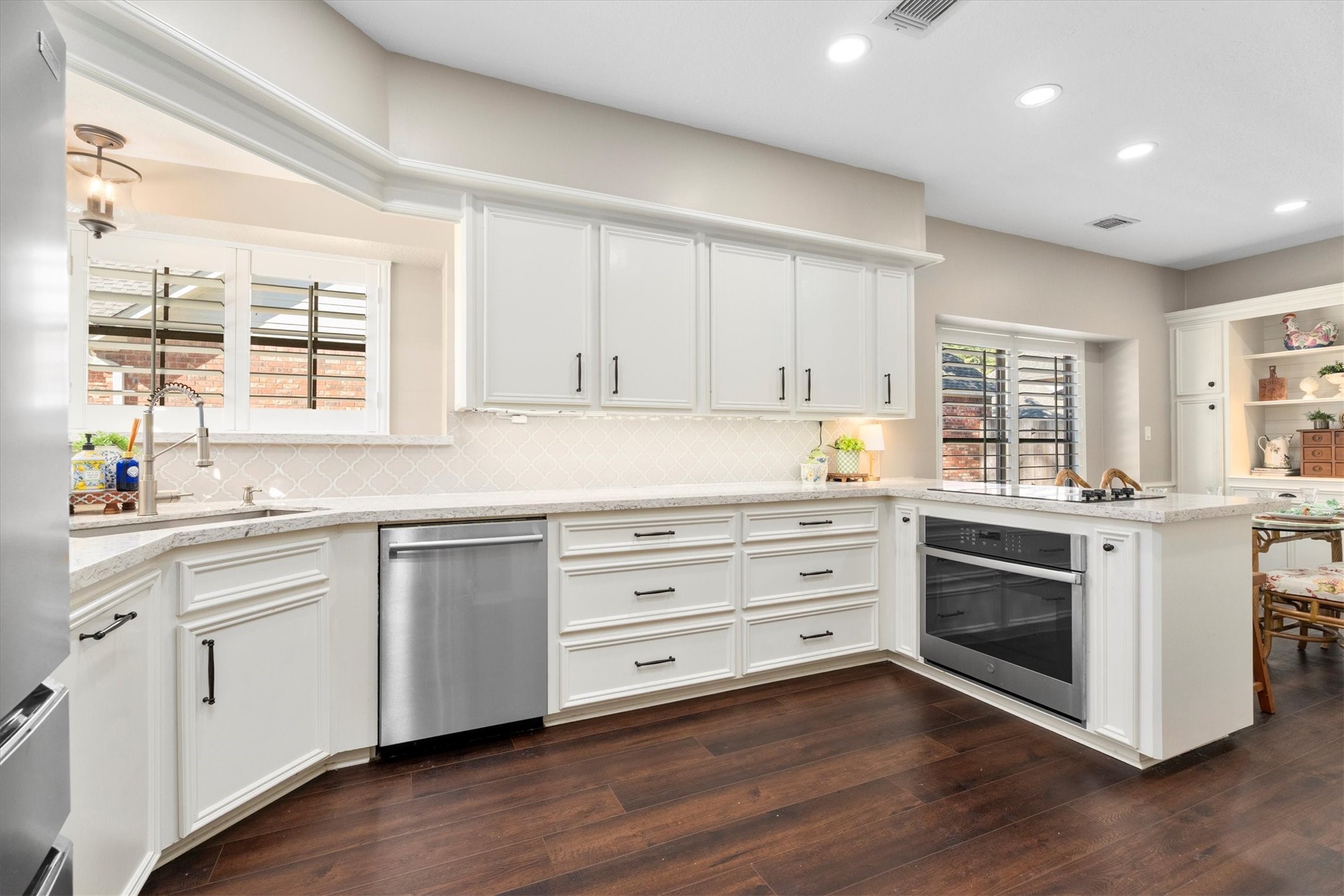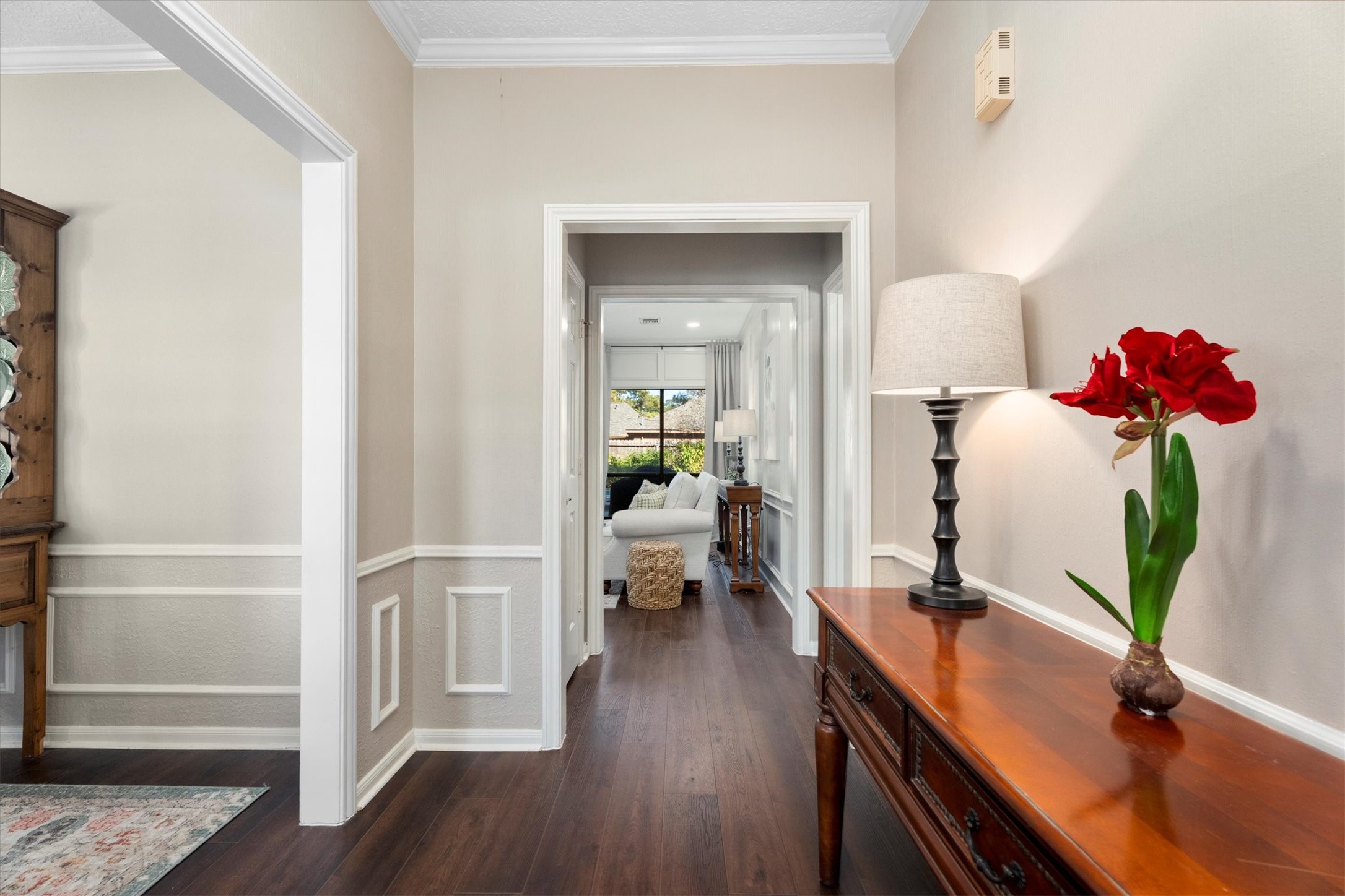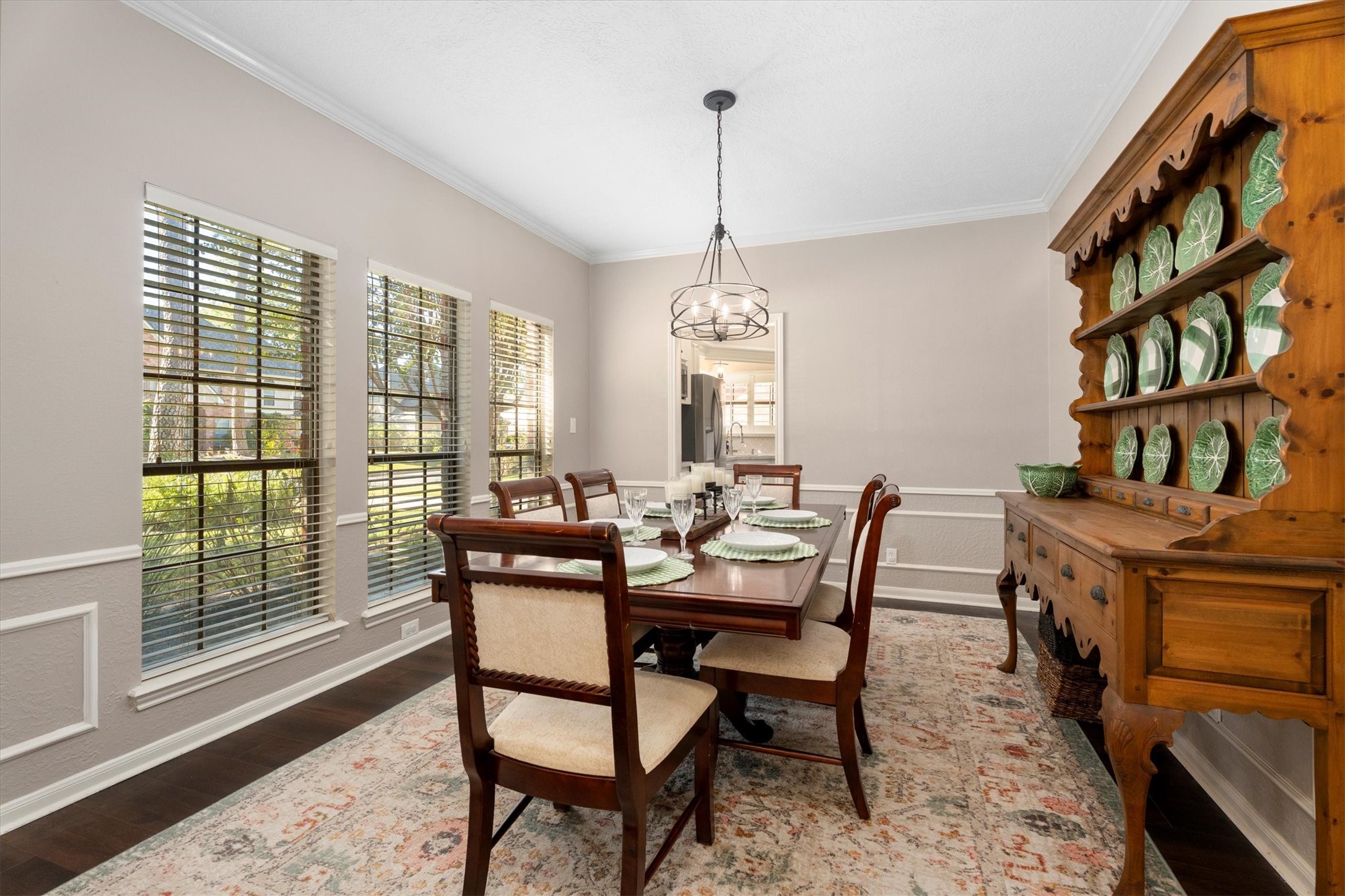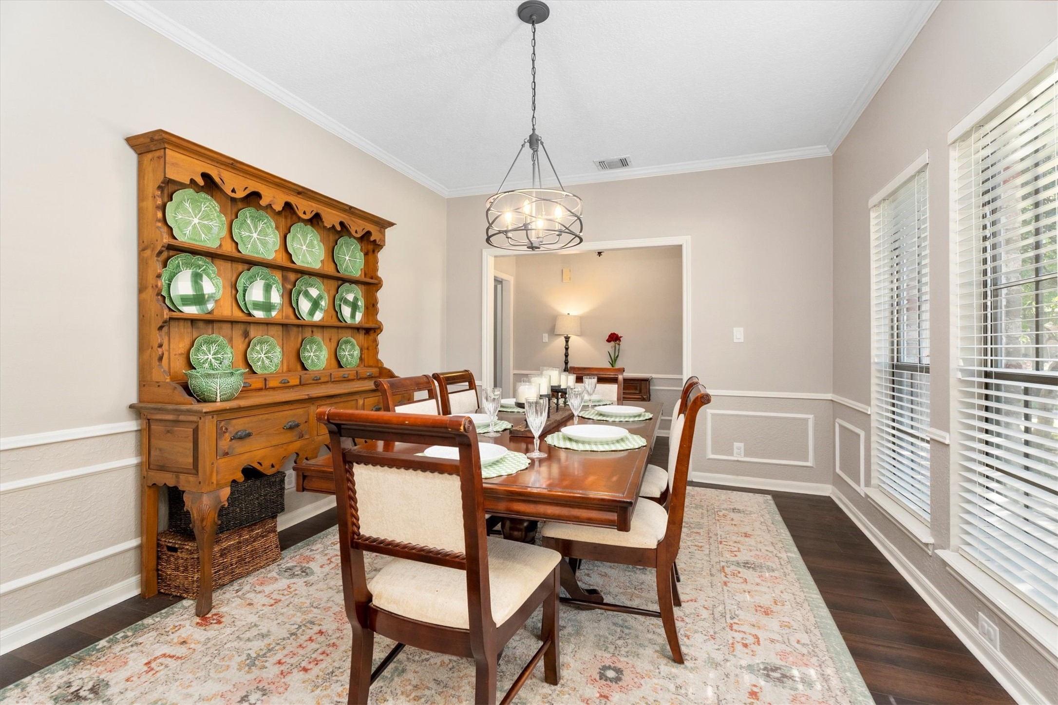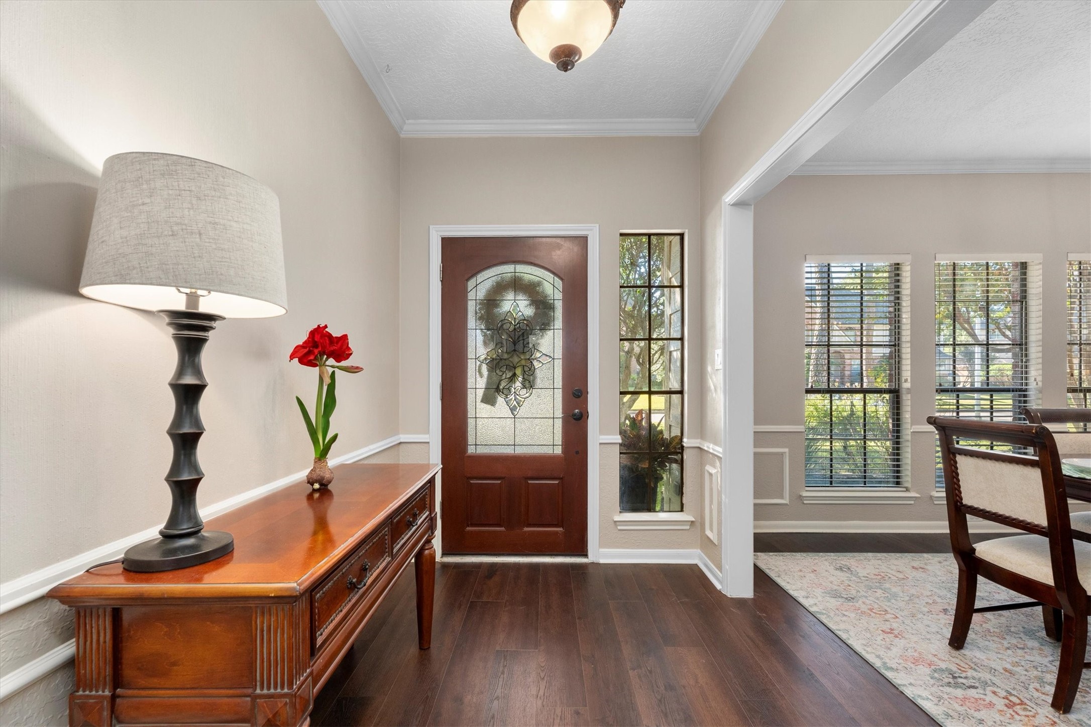 Stunning brick home featuring 4 beds/2.5 baths situated on a large lot with an inground pool and many upgrades. Beautiful new flooring installed in 2021 along with high ceilings and elegant crown molding. Left of the entryway is a formal dining room. Kitchen, completely remodeled in 2021, offers stainless steel appliances, abundant storage, generous counter space, a breakfast bar, and a bright breakfast area adjacent to the kitchen. Living area features a brick gas fireplace with large windows on each side that fill the space with natural light. The spacious primary suite includes an ensuite bath with double sinks, a soaking tub, a glass-enclosed shower, and a walk-in closet. Upstairs you will find a large game room, 3 additional beds, and a full bath. Step outside to backyard designed for fun and relaxation, featuring a sparkling pool and hot tub that were resurfaced in 2022. Neighborhood offers wonderful amenities including a community pool, playground, and tennis courts.