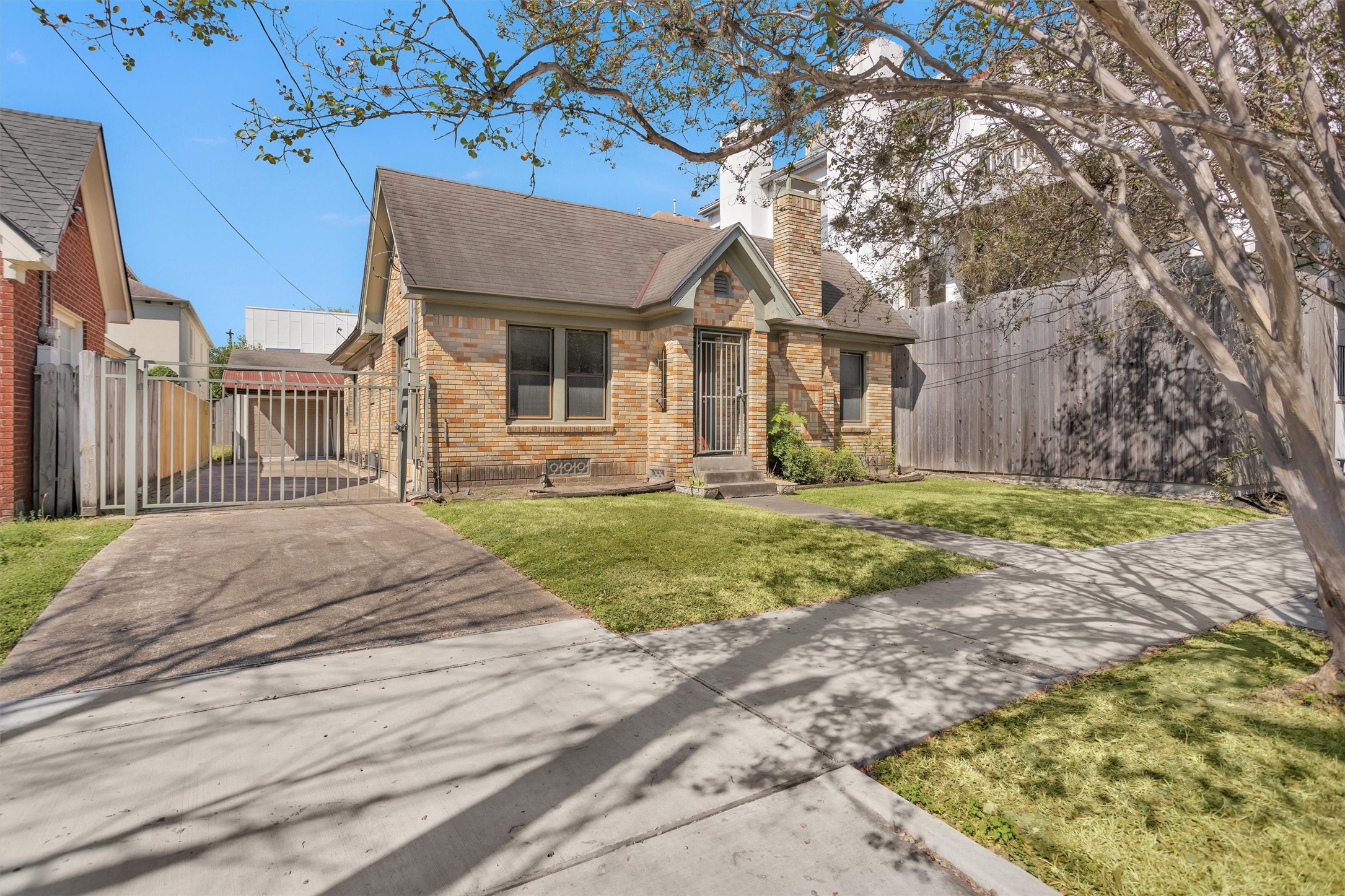 Location, Location, Location! Calling all investors and builders — incredible opportunity to remodel, expand, or construct a custom home or duplex from the ground up in one of Houston’s most desirable neighborhoods. 1937 Hyde Park bungalow near the River Oaks Shopping Area—just minutes to Downtown Houston, Allen Parkway, and Montrose. Natural hardwood floors anchor bright living and dining spaces with two bedrooms and one bath. The kitchen offers classic cabinetry, solid-surface counters, and full-size appliances; the bath includes plentiful storage and a walk-in shower. Private driveway with gate, two-car garage with workshop, and a paved backyard patio for outdoor dining.Celebrated for its period character, efficient layout, and unbeatable location near local cafés, parks, and everyday essentials. A versatile opportunity: enjoy as-is, update to taste, expand, or build new in an area with active construction, strong resale values, and endless potential. Being sold AS-IS.