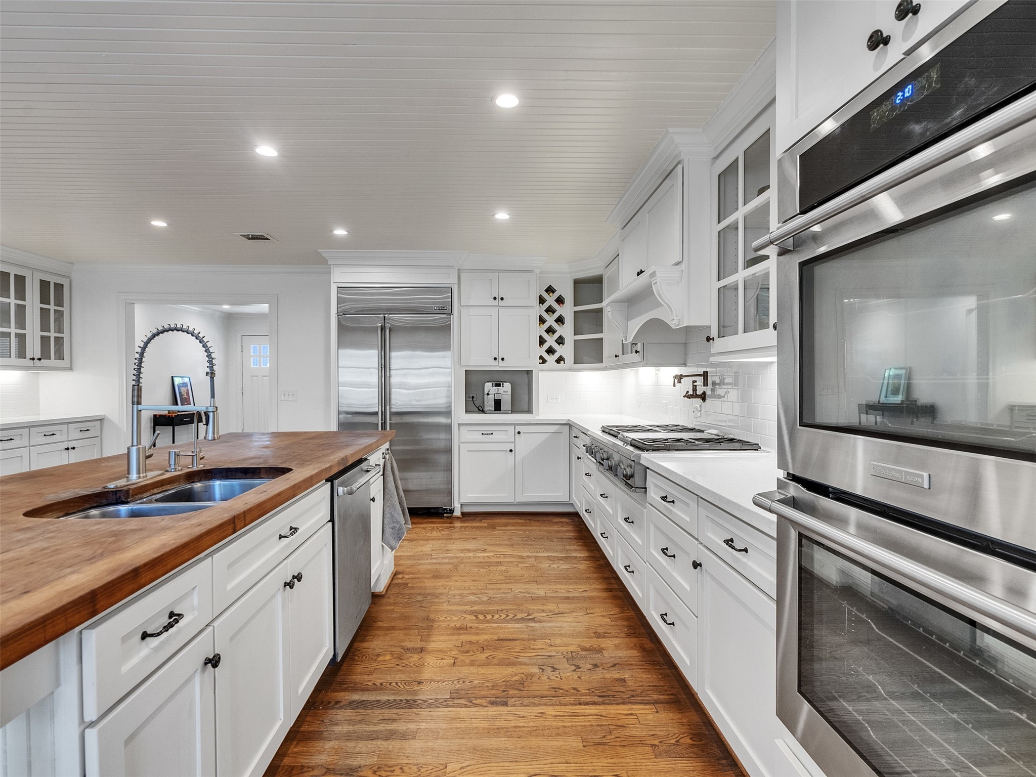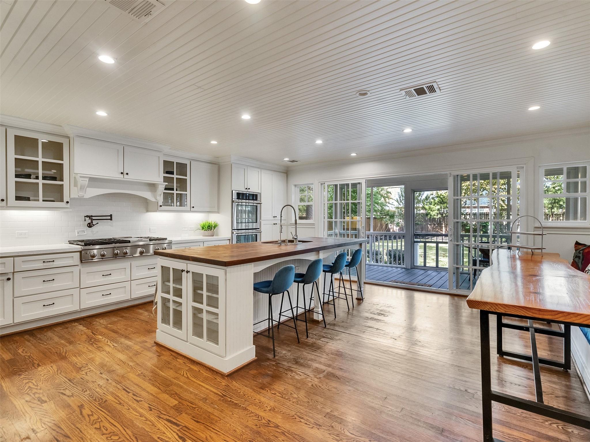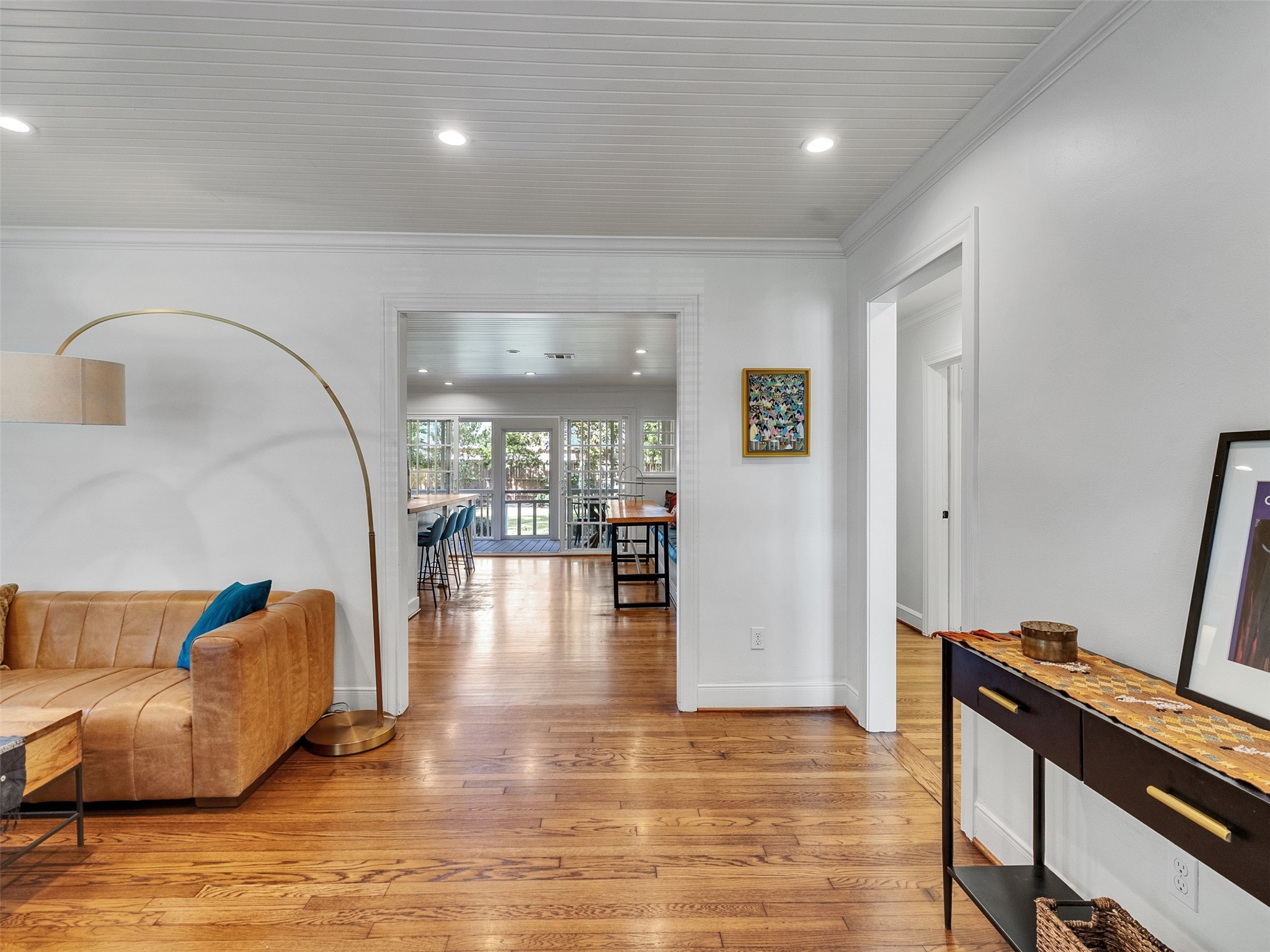Charming Garden Oaks cottage on an oversized lot with huge yard perfect for indoor-outdoor living, just 0.3 miles from Garden Oaks Montessori. Nestled in the heart of Garden Oaks - a serene, tree-lined neighborhood with top-rated schools and parks - this move-in-ready 3-bed, 2-bath home blends classic charm with modern updates. Hardwood throughout, beadboard ceilings, and custom millwork flow throughout. The front living room with fireplace opens to a gourmet kitchen featuring a butcher-block island, stainless appliances, and custom built in banquet. A screened porch and covered gazebo with grill area invite seamless entertaining overlooking the sprawling backyard. Two bedrooms and full bath on the 1st floor; upstairs primary suite with soaking tub, walk-in shower, and dual closets and gorgeous tile work. Tankless water heater. New roof 2021. Commuting convenience: minutes to 610 Loop, I-45, and Heights. Perfect blend of space, style, and location.