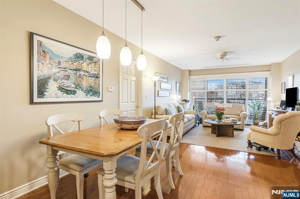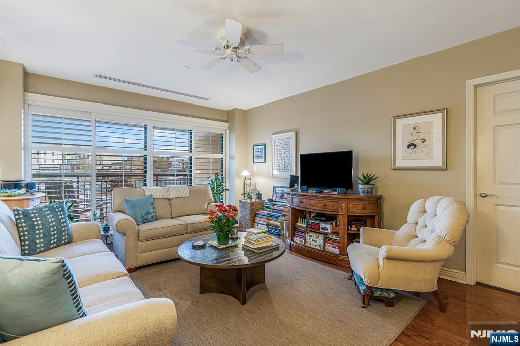 A commuter's dream to live at Station Square in downtown Rutherford. This corner light-filled 1320 sq. ft. unit features, two bedrooms and two full bathrooms. Spacious open living room/dining room with a private terrace. Large kitchen with lots of cabinets, S/S appliances and breakfast bar. Primary bedroom has a big walk-in closet, large bathroom w/ whirlpool tub, oversized shower and double sinks. The guest suite features a full bathroom with an additional walk-in closet + full size laundry. Both suites have large windows to enjoy lots of sunlight. Elevator building includes one assigned indoor parking space. This well-maintained elevator building offers a bike room with private storage units. The HOA includes water and a part-time super. And it is a fur baby friendly building. All NYC transportation is right there with trains/buses. Highways are both convenient and accessible. Rutherford dining scene is steps away!