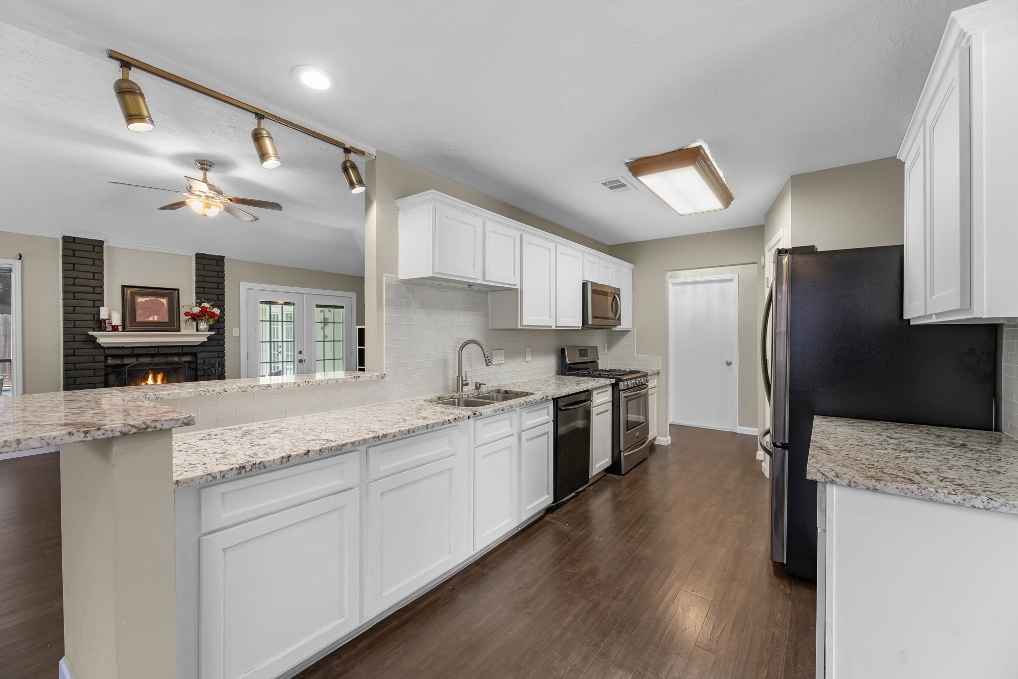 Your private retreat awaits at 2006 Musket Ridge Dr! Located in the desirable The Grove subdivision, this single-story, spacious 3 Bed, 2 bath ranch-style home offers an incredible backyard oasis complete with a private pool with spa, perfect for relaxation and outdoor gatherings. The fully fenced backyard provides ample space for play equipment or pets to roam. Inside, the expansive living room with high ceilings offers a stunning view of the pool, ideal for entertaining. The chef’s kitchen boasts granite countertops and a stylish subway tile backsplash. The spacious primary suite includes a sitting area, walk-in closet, and a spa-like en-suite bath. Enjoy the outdoors on the patio/deck, and utilize the storage shed in the yard. New A/C system! Kitchen remodeled in 2019, roof replaced in 2019. Walking distance to Belin Park! Convenient access to FM 359 and Hwy 90, plus nearby shopping and dining! Don’t miss out and schedule your tour today!