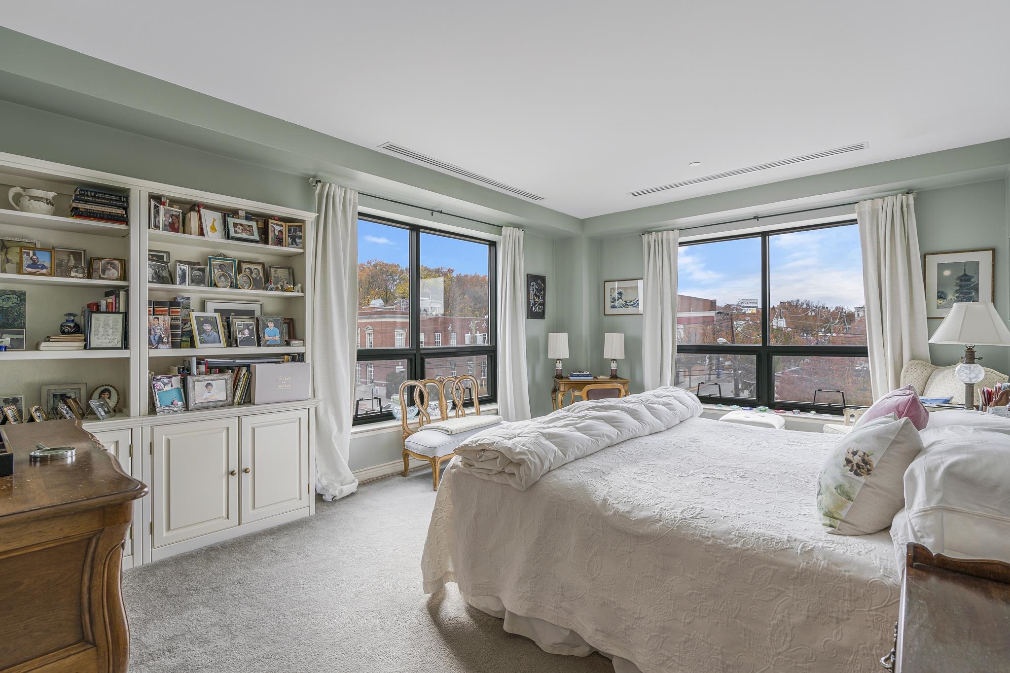 A commuter's dream to live at Station Square in downtown Rutherford. This corner light-filled 1320 sq. ft. unit features, two bedrooms and two full bathrooms. Spacious open living room/dining room with a private terrace. Large kitchen with lots of cabinets, S/S appliances and breakfast bar. Primary bedroom has a big walk-in closet, large bathroom w/ whirlpool tub, oversized shower and double sinks. The guest suite features a full bathroom with an additional walk-in closet + full size laundry. Both suites have large windows to enjoy lots of sunlight. Elevator building includes one assigned indoor parking space. This well-maintained elevator building offers a bike room with private storage units. The HOA includes water and a part-time super. And it is a fur baby friendly building. All NYC transportation is right there with trains/buses. Highways are both convenient and accessible. Rutherford dining scene is steps away!